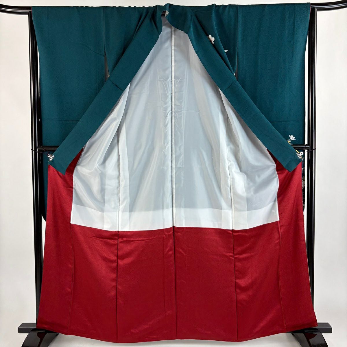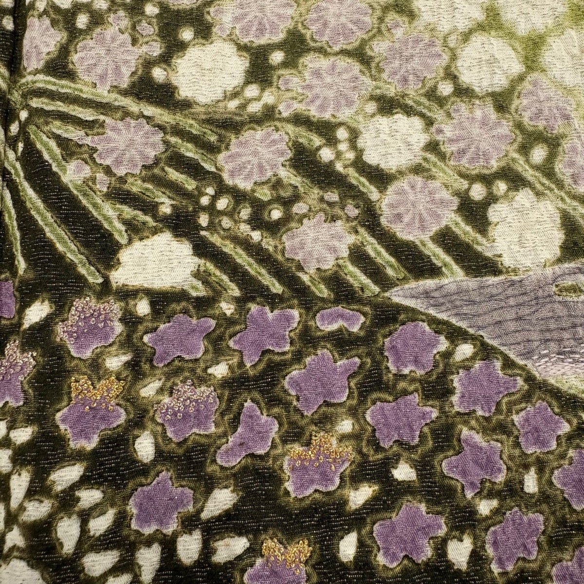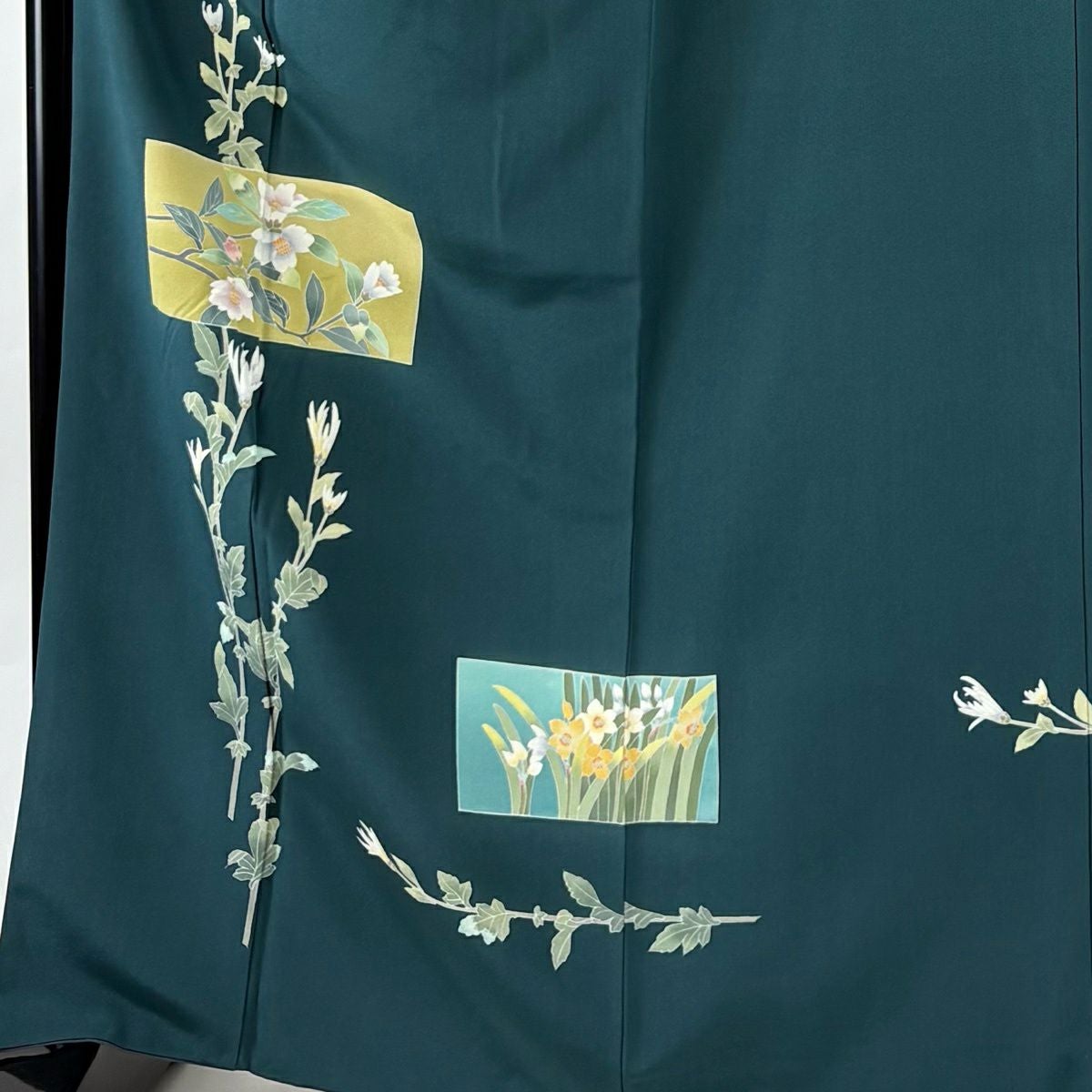 50%OFF 振袖 身丈158.5cm 裄丈63.5cm S 袷 桜 梅 刺繍 金糸 深緑 正絹 秀品 K50