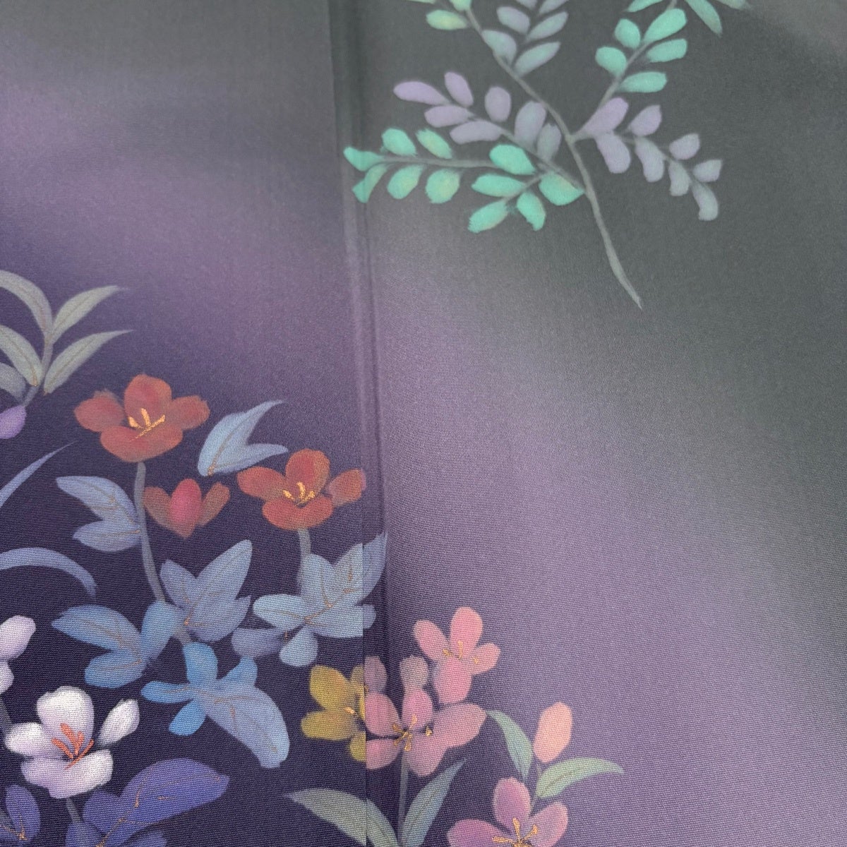 訪問着 身丈160.5cm 裄丈65.5cm M 袷 落款あり 萩 蔓帯 金彩 染め分け 深緑 正絹 秀品