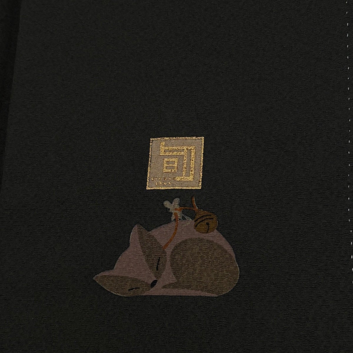 【最終価格】 70%OFF 【美品】 袋帯 名品 花うさぎ 草花 刺繍 箔 深緑 六通 正絹 K70