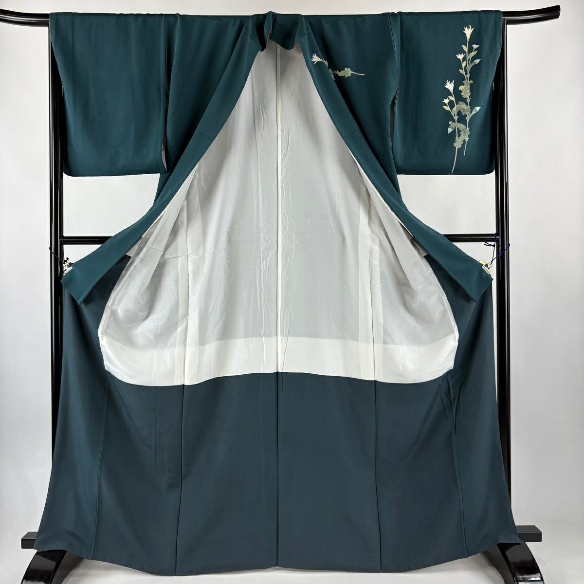 20%OFF 振袖 身丈161cm 裄丈67.5cm L 袷 草花 銀通し 金彩 深緑 正絹 逸品 K30
