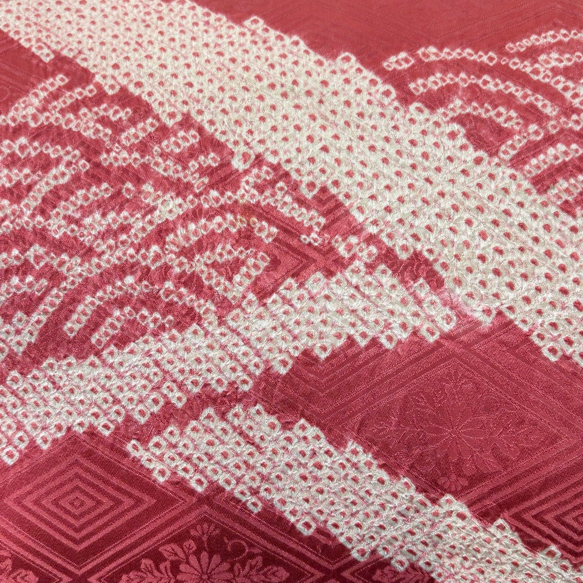 【美品】 色無地 身丈157cm 裄丈63.5cm S 袷 地紋 濃ピンク 正絹 優品
