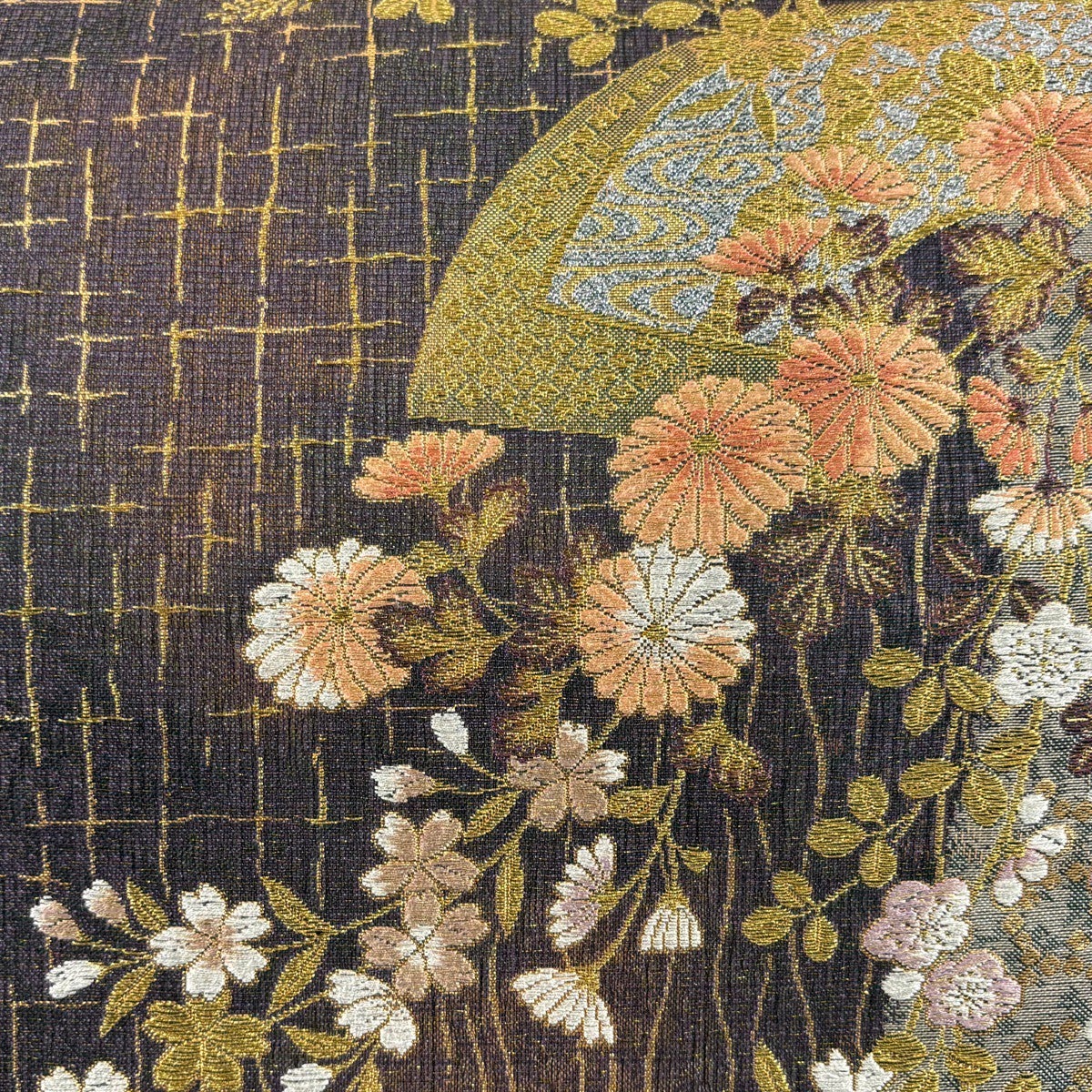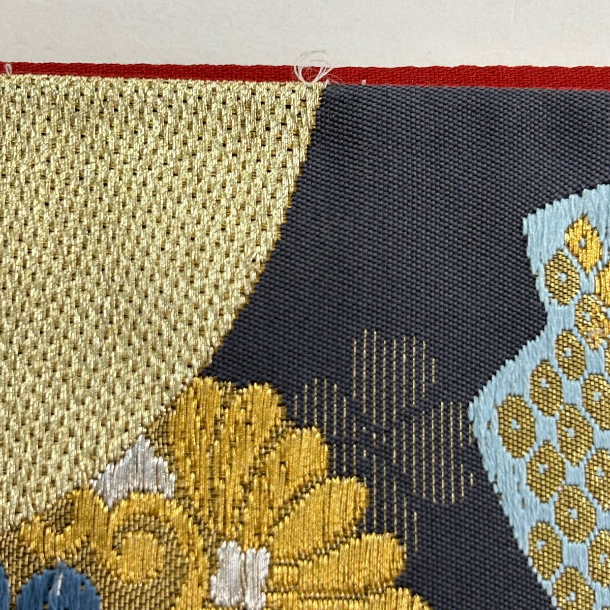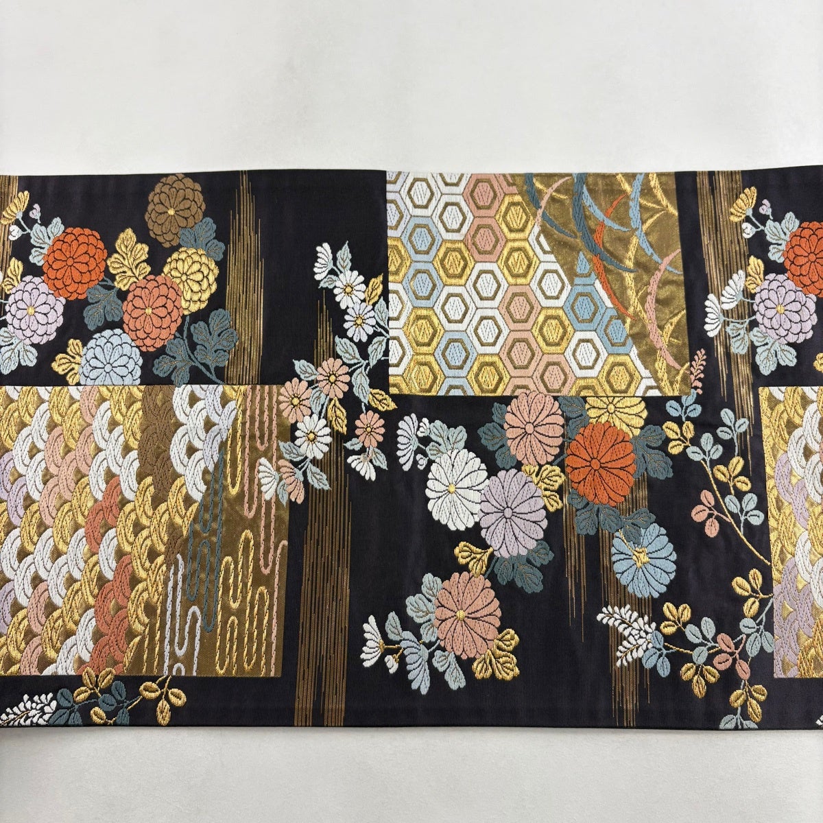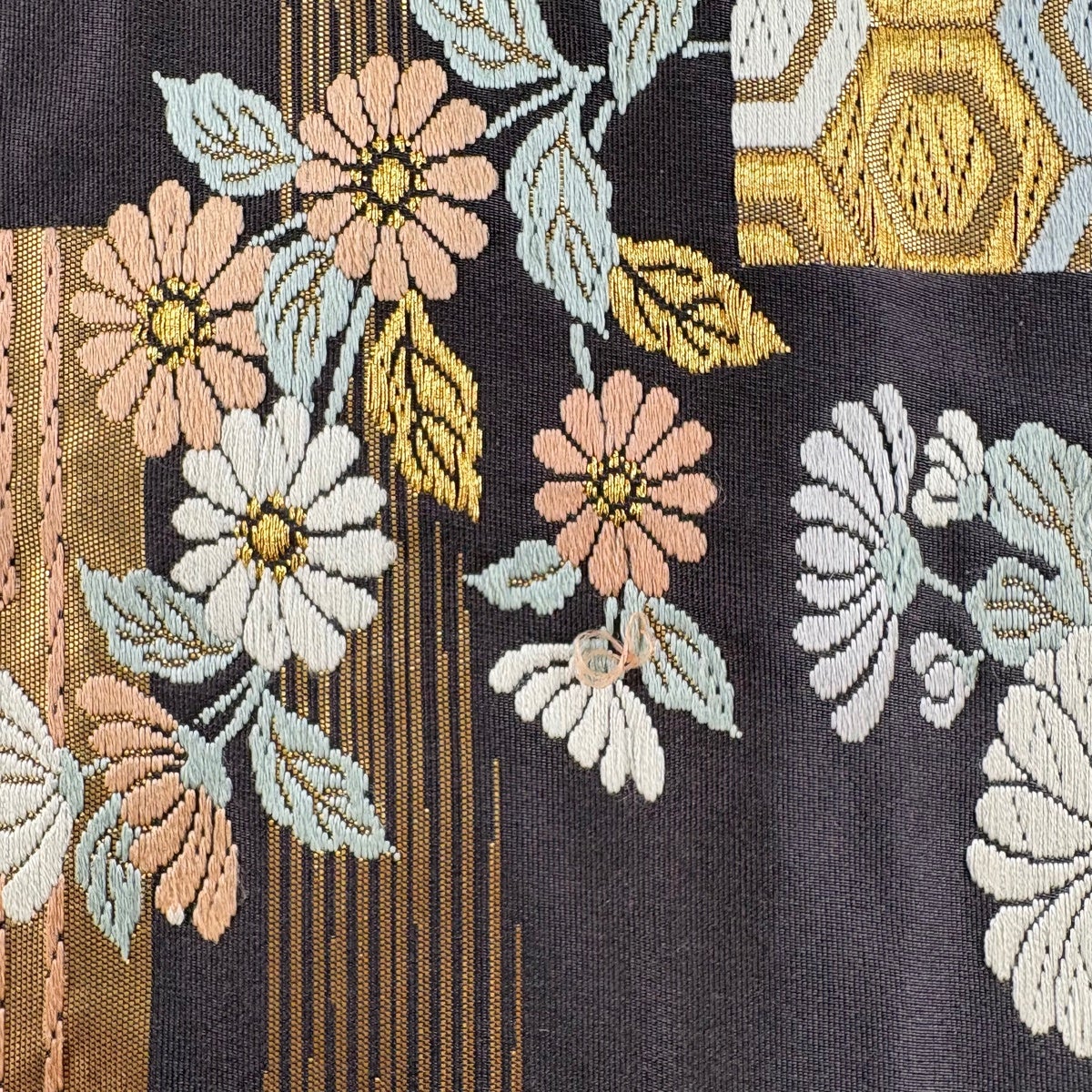 【美品】 袋帯 秀品 証紙あり 菊 七宝文 金糸 箔 濃紫 お太鼓柄 正絹