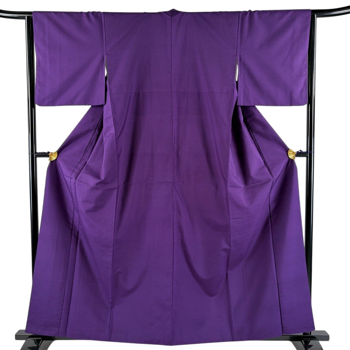 紬 身丈160cm 裄丈64.5cm M 袷 落款あり 濃紫 正絹 秀品