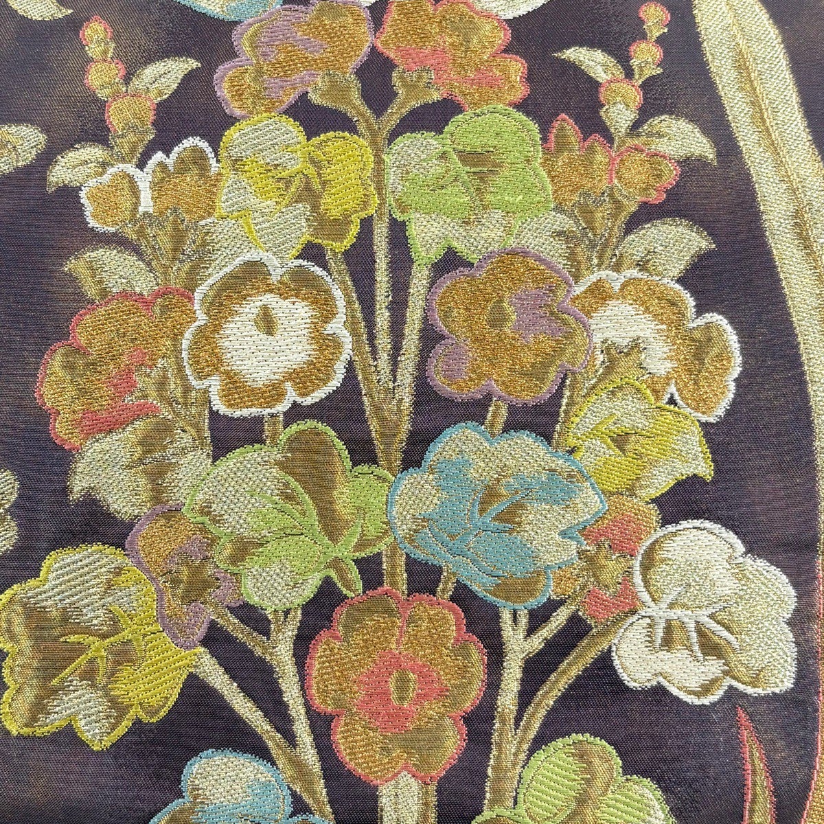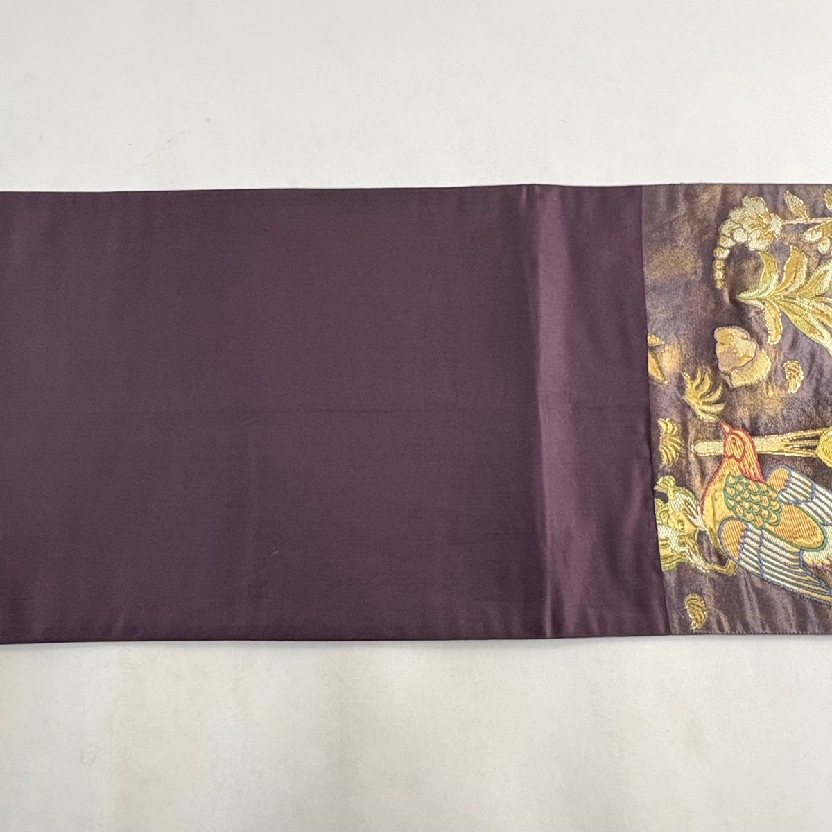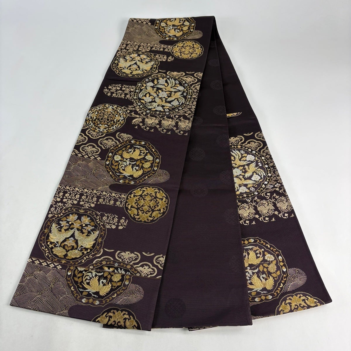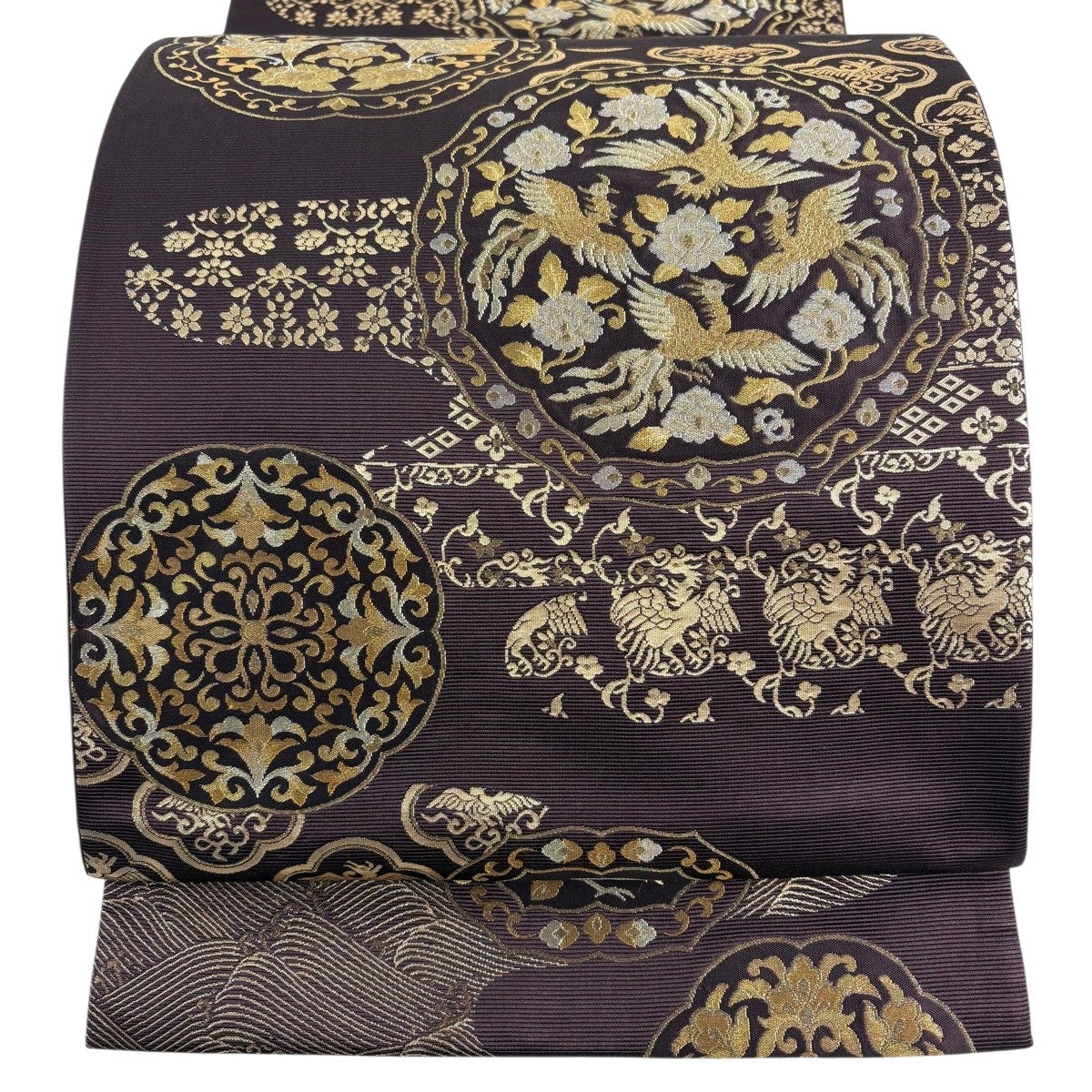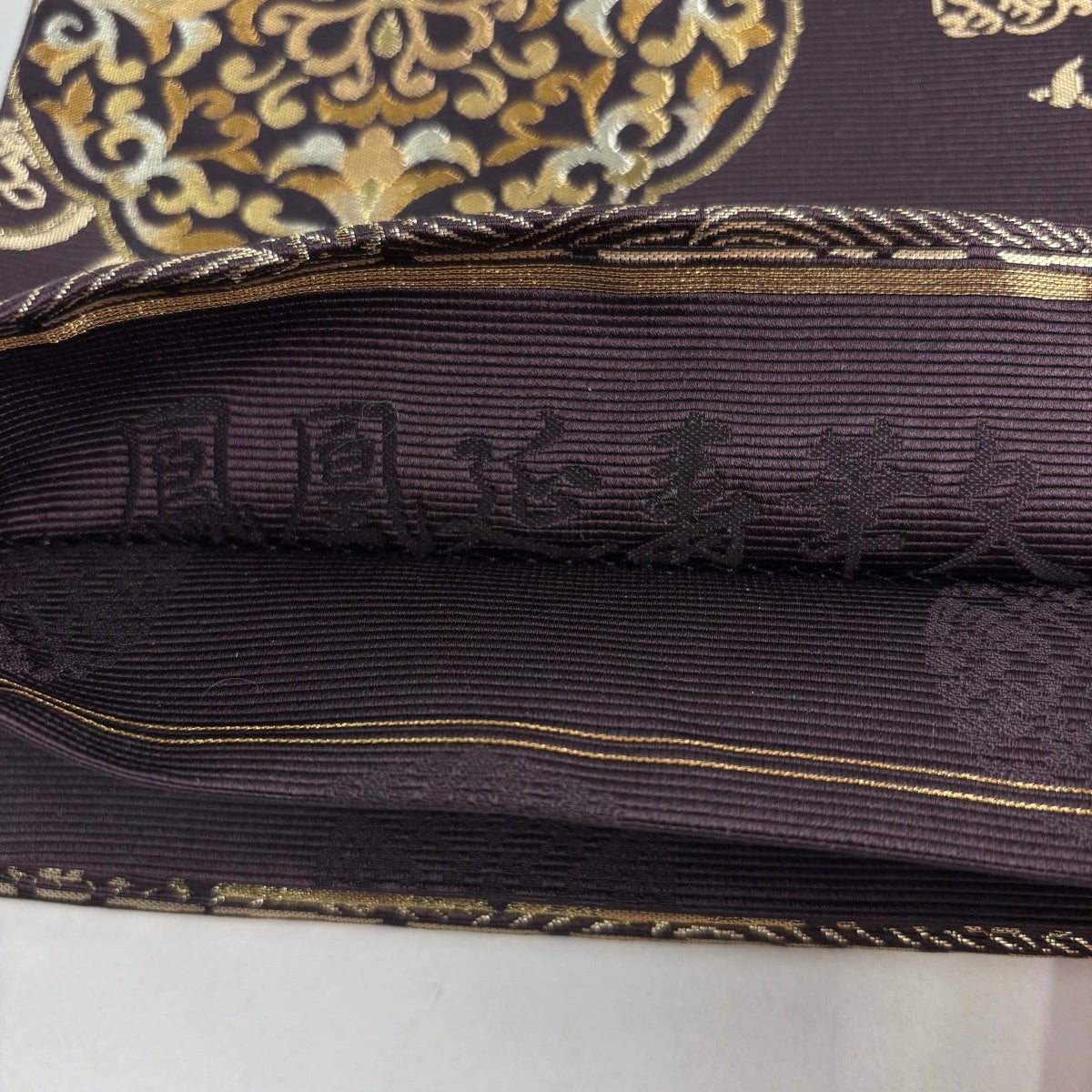 50%OFF 袋帯 秀品 浮線綾文 尾長鶏 箔 濃紫 六通 正絹 K50