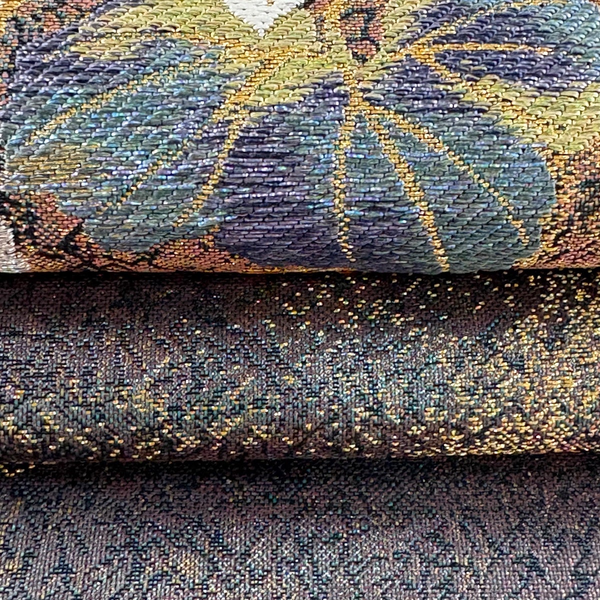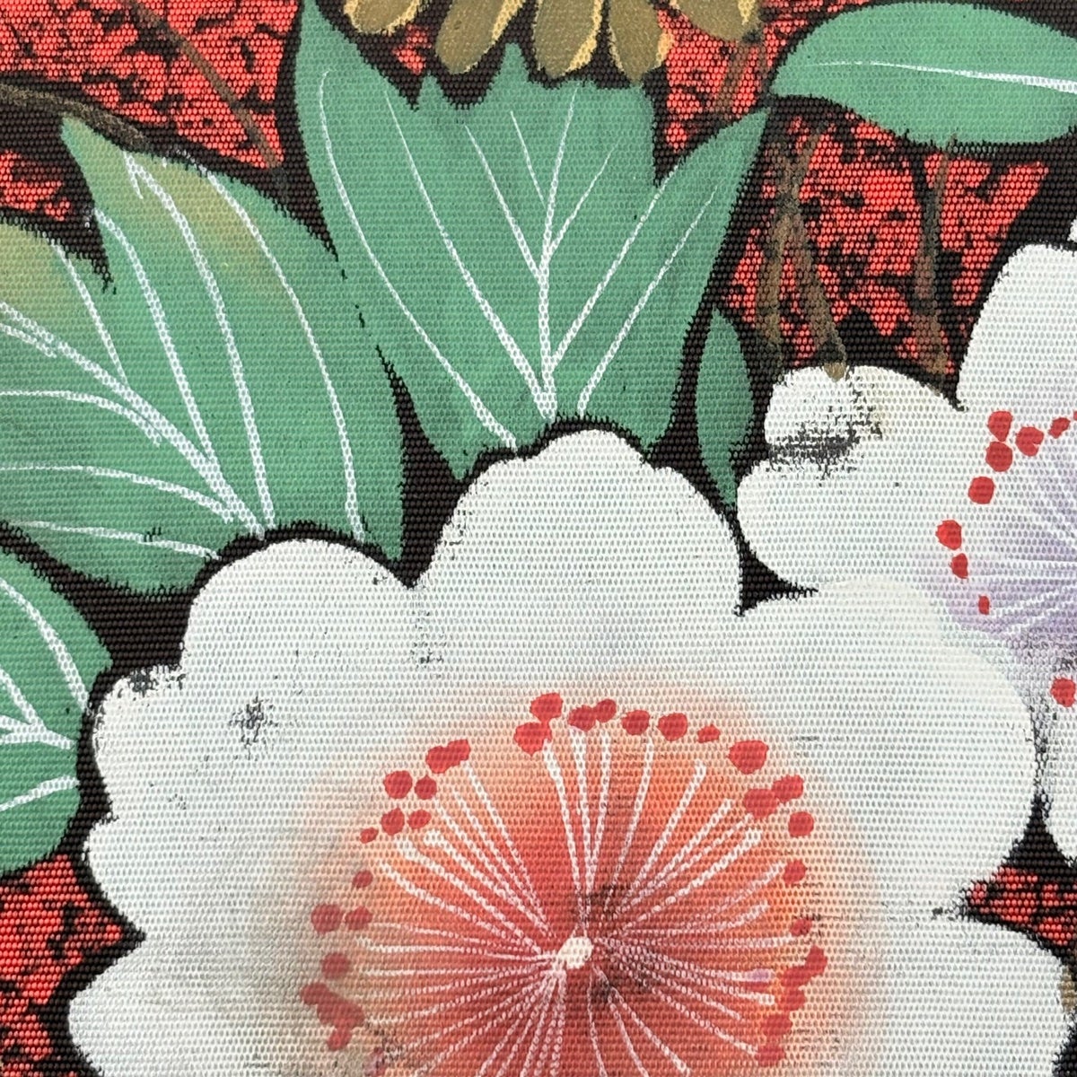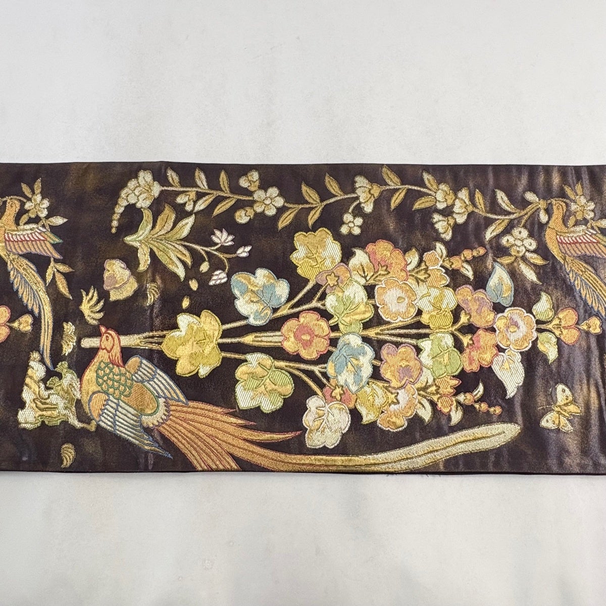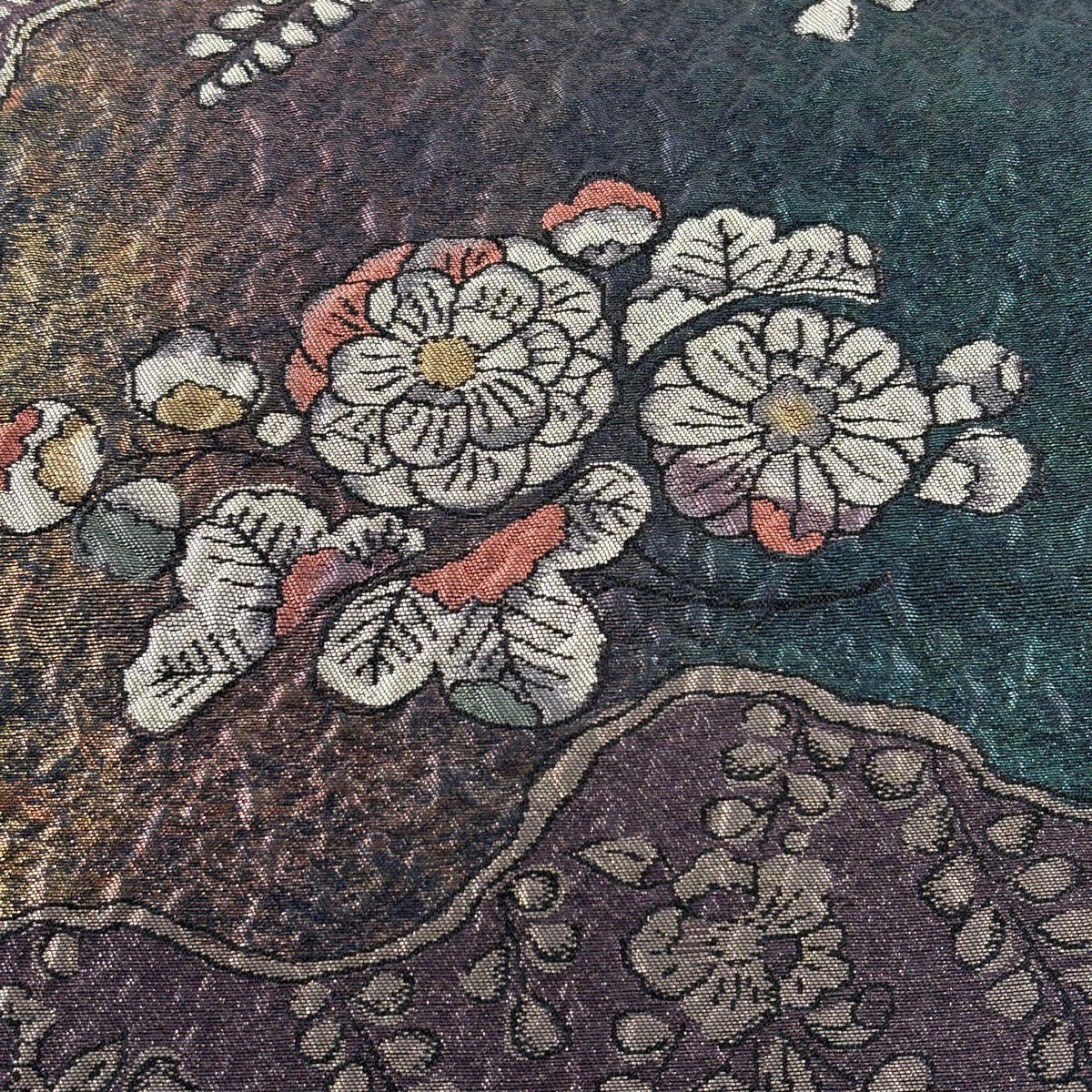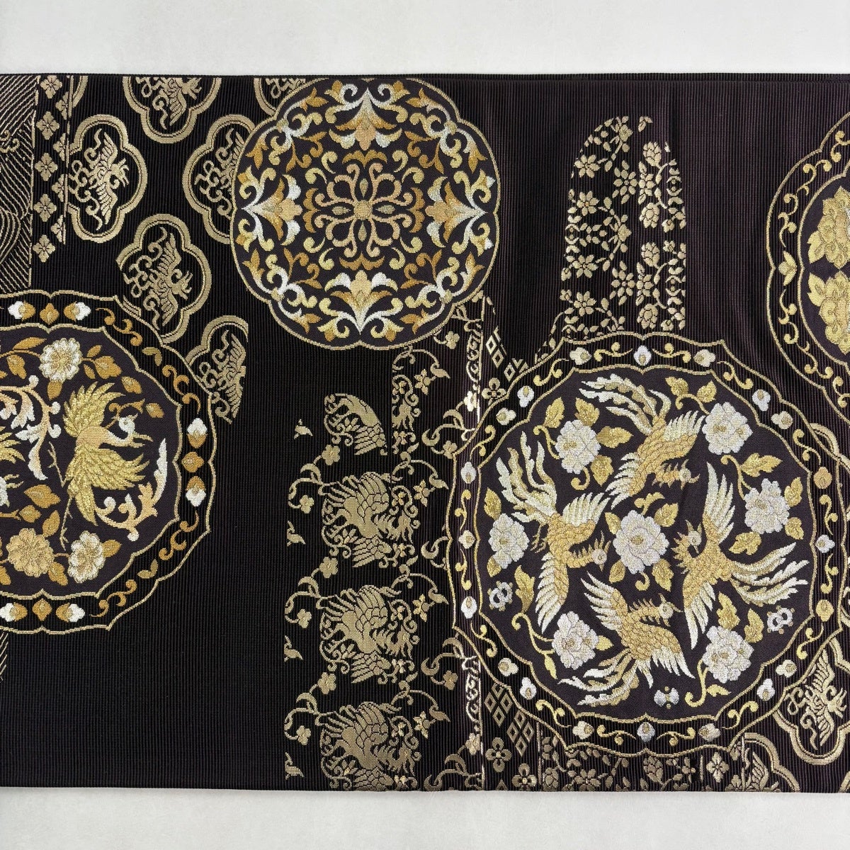 50%OFF 袋帯 秀品 浮線綾文 尾長鶏 箔 濃紫 六通 正絹 K50