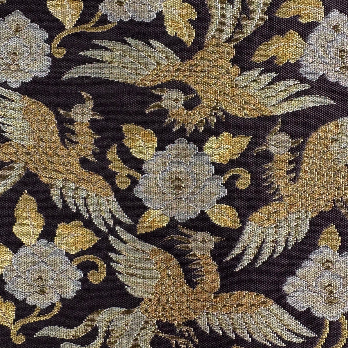 【美品】 袋帯 秀品 落款あり 鳳凰延寿華文 金銀糸 箔 濃紫 六通 正絹