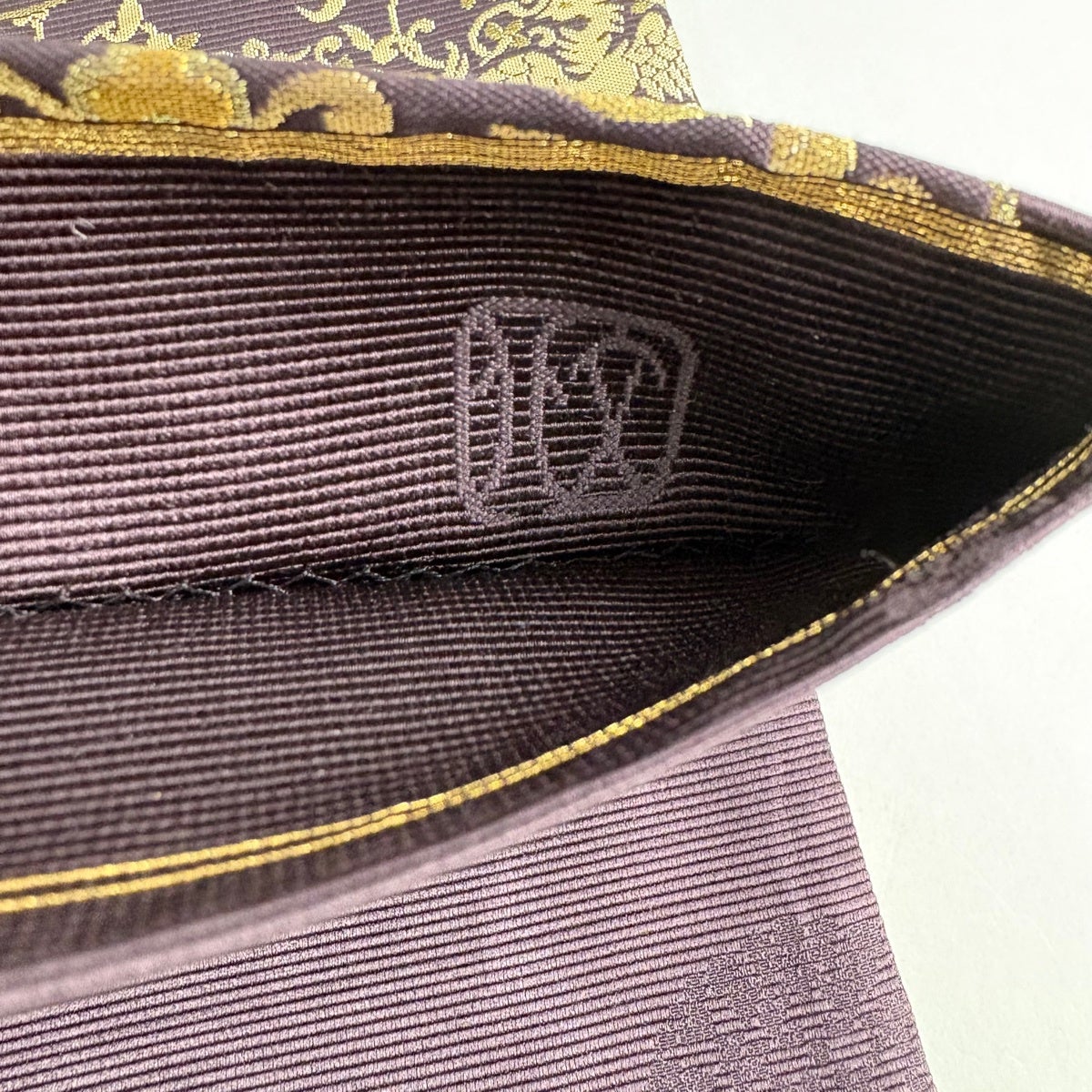 50%OFF 袋帯 秀品 鴛鴦観世水文 箔 唐織 濃紫 六通 正絹 K50