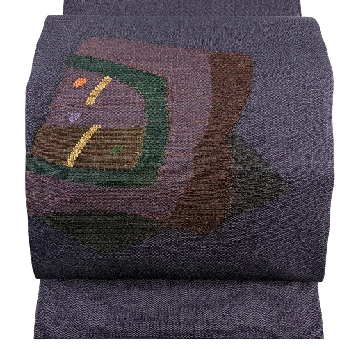 20%OFF 開き名古屋帯 逸品 フクロウ 猫 箔 濃紫 正絹 K30