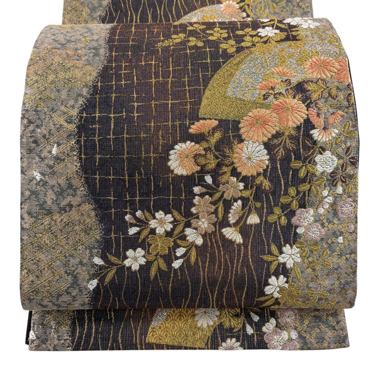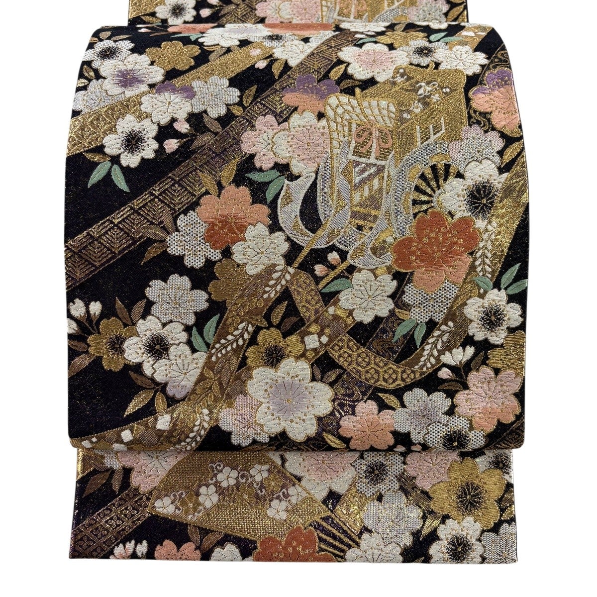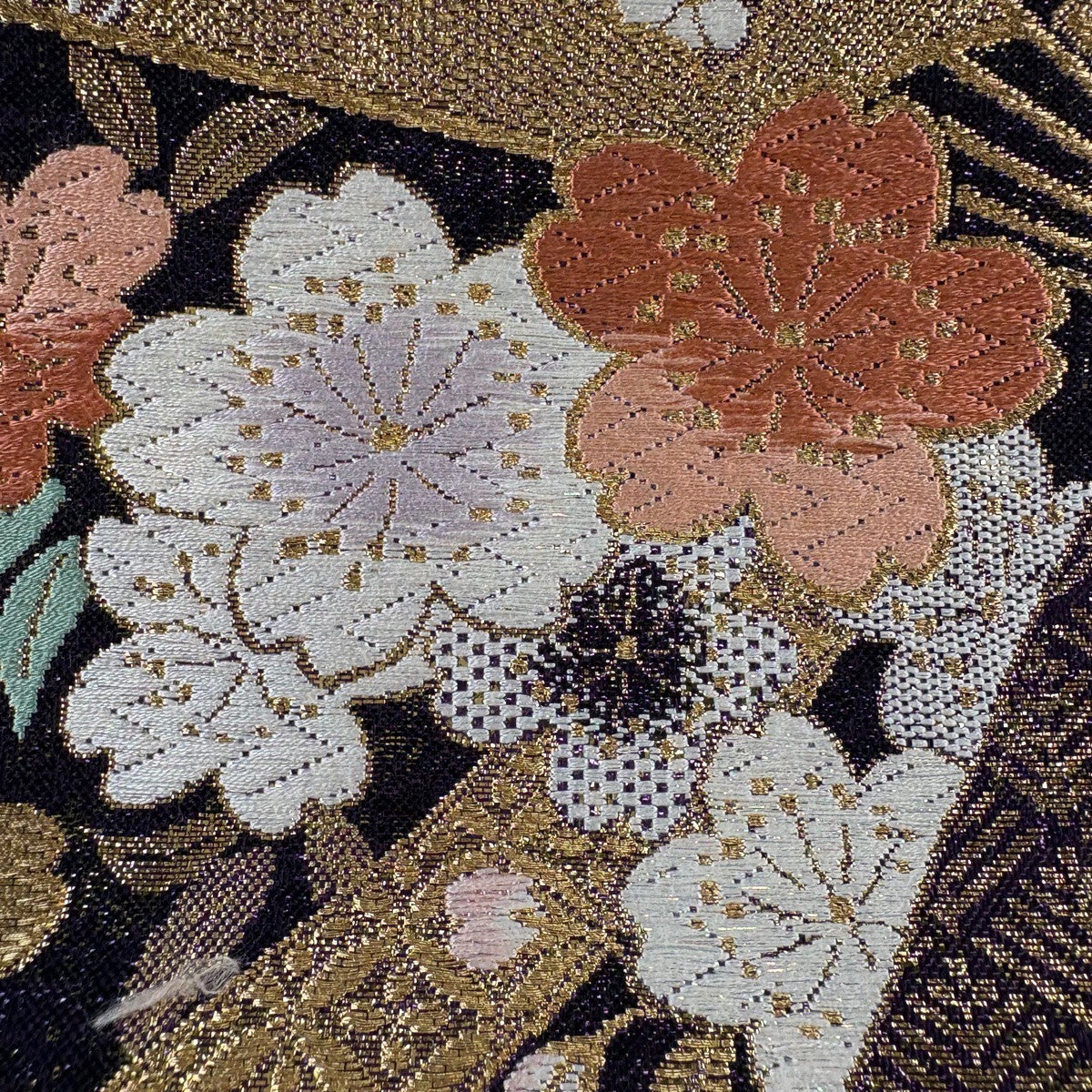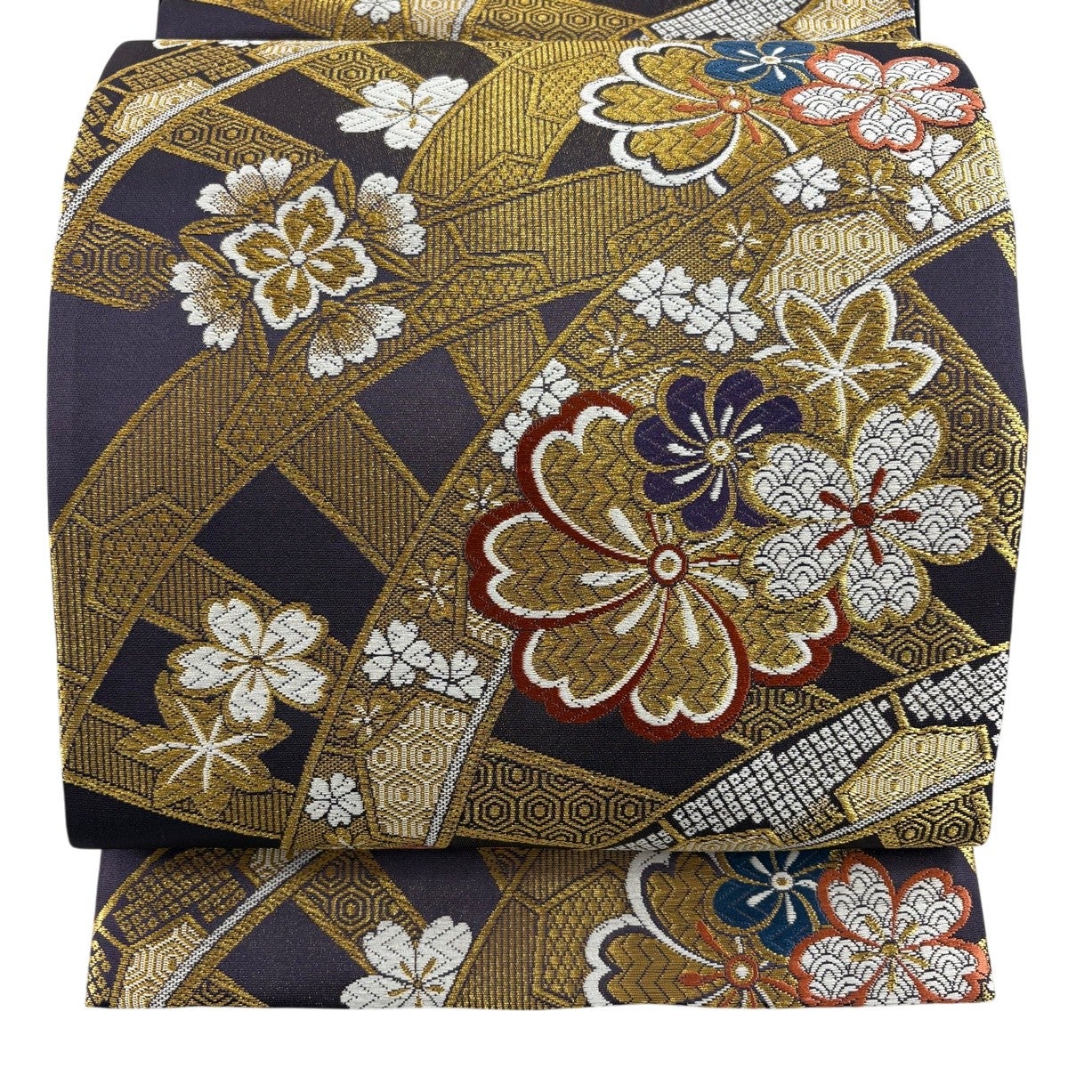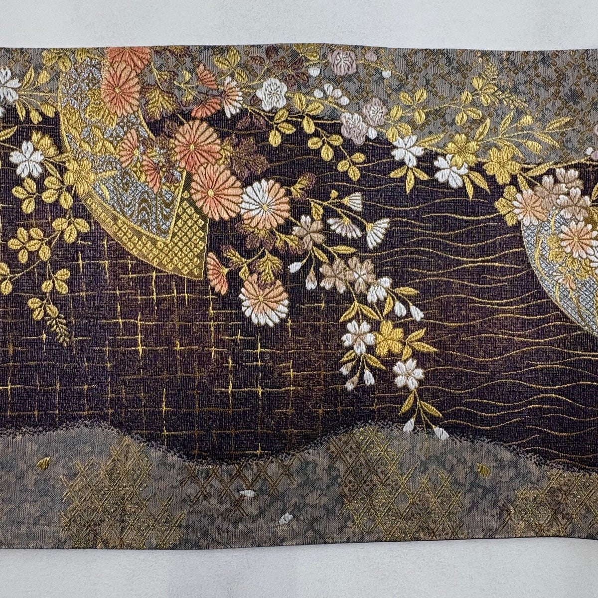50%OFF 袋帯 秀品 桜 流水 金銀糸 箔 濃紫 六通 正絹 K50