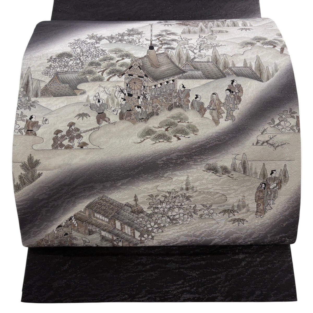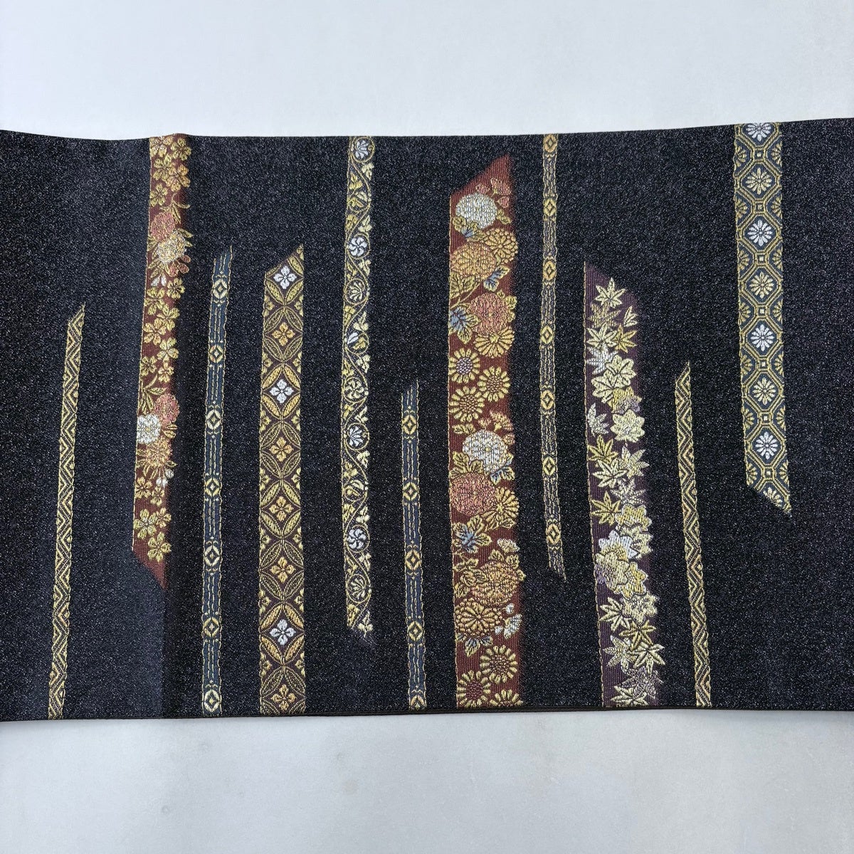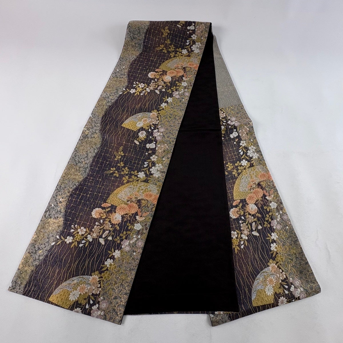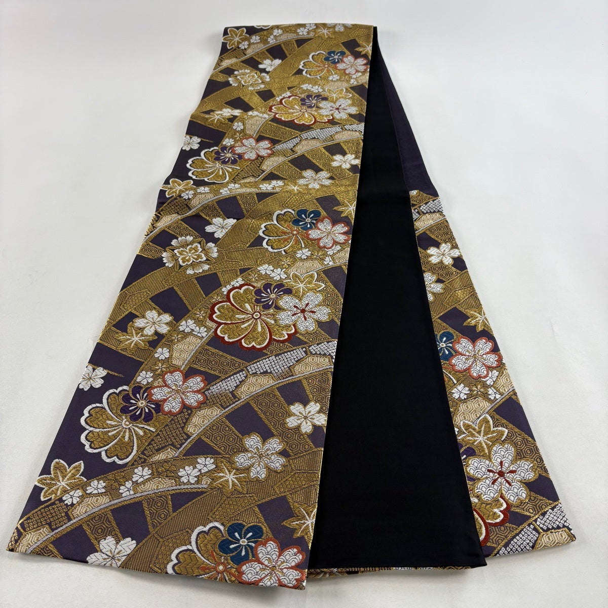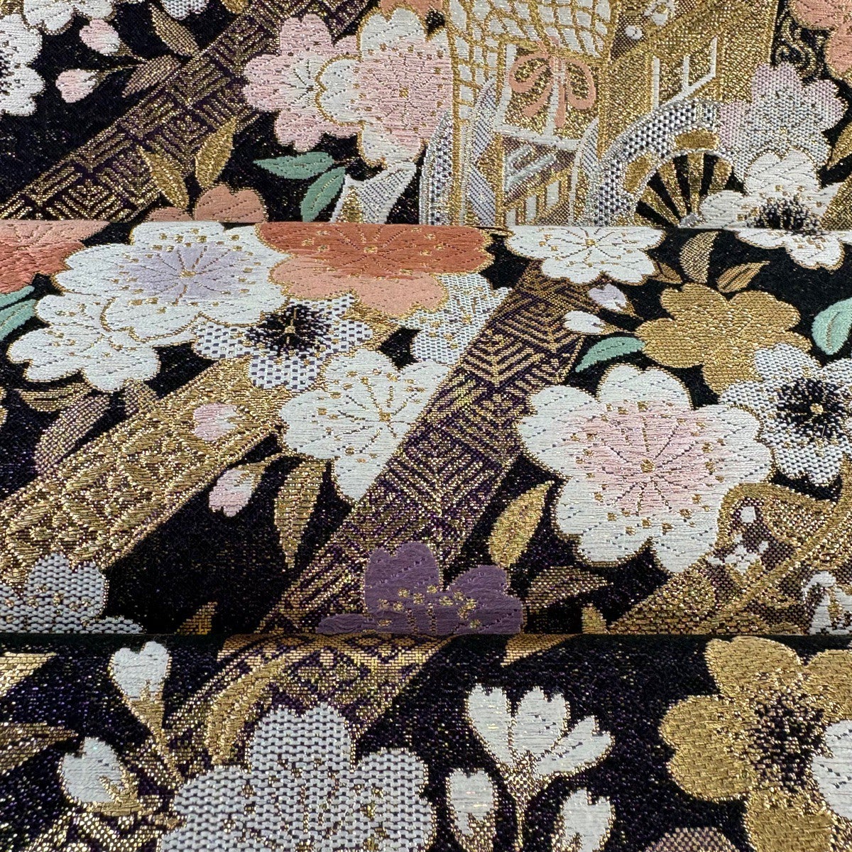 50%OFF 袋帯 秀品 桜 流水 金銀糸 箔 濃紫 六通 正絹 K50
