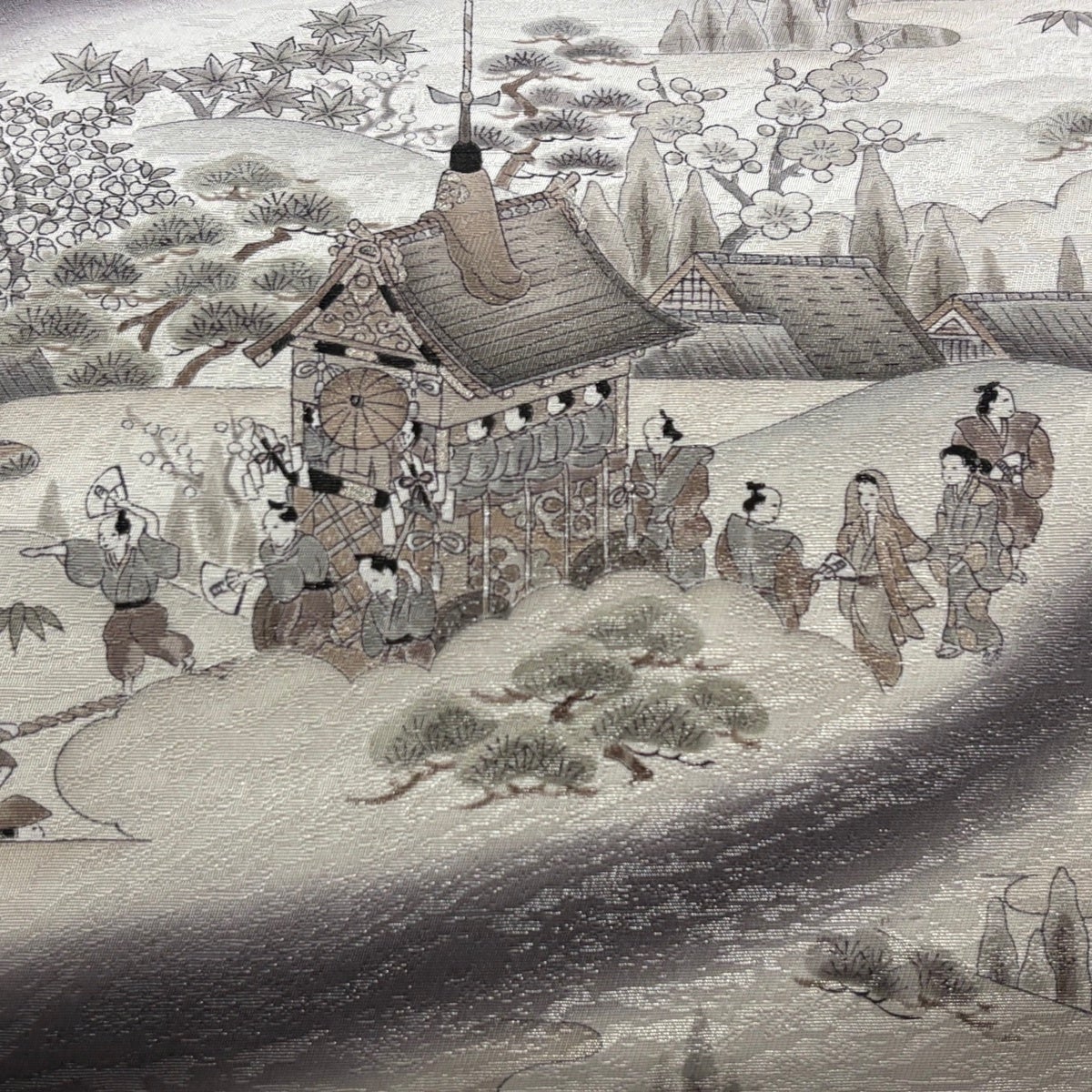 50%OFF 袋帯 秀品 桜 波 金銀糸 唐織 濃紫 六通 正絹 K50