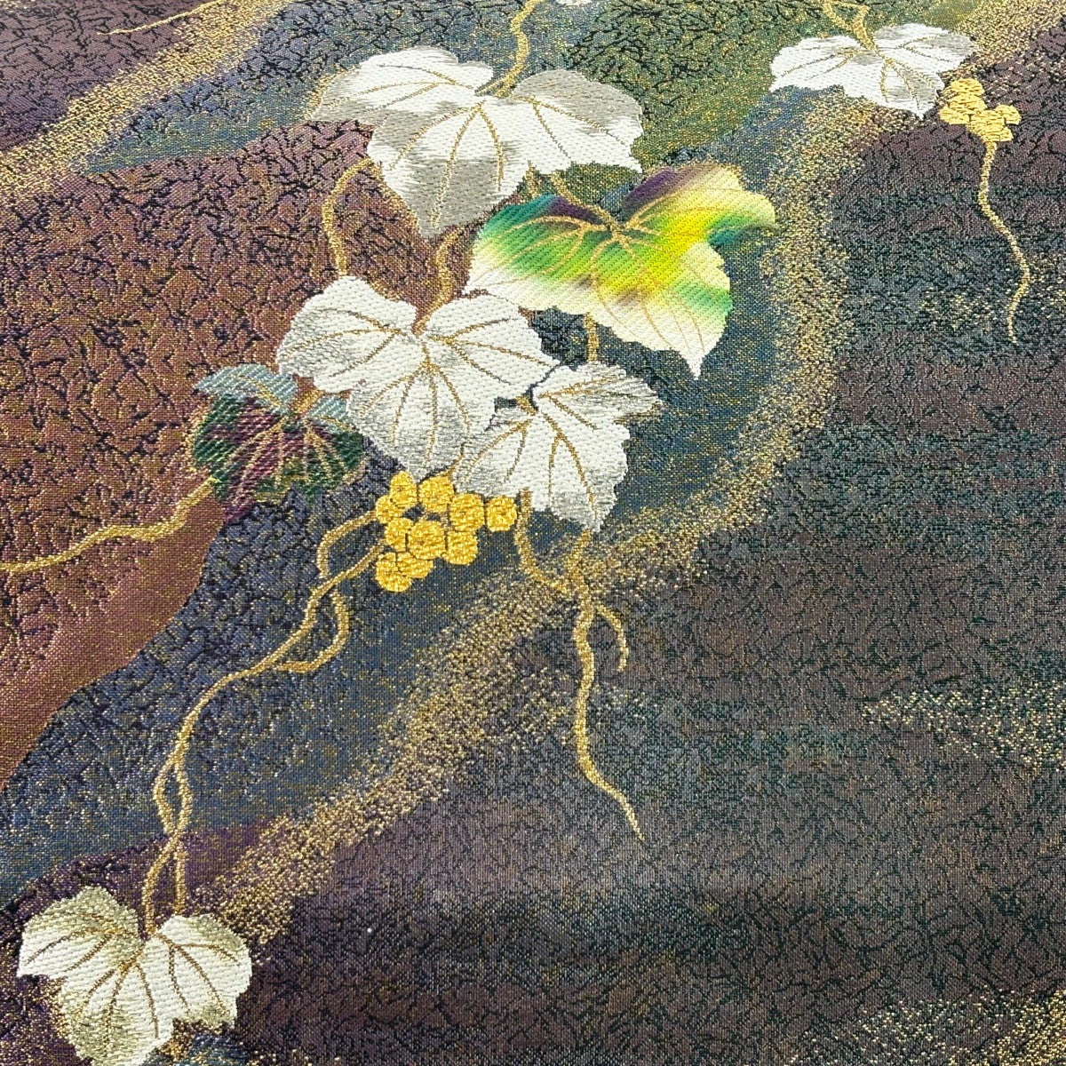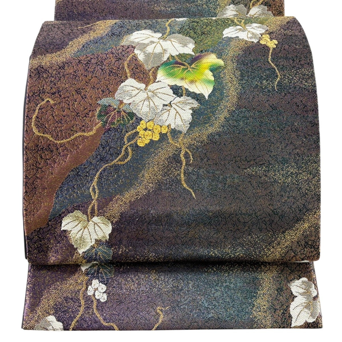 50%OFF 【美品】 袋帯 名品 葡萄 濃紫 お太鼓柄 正絹 K50