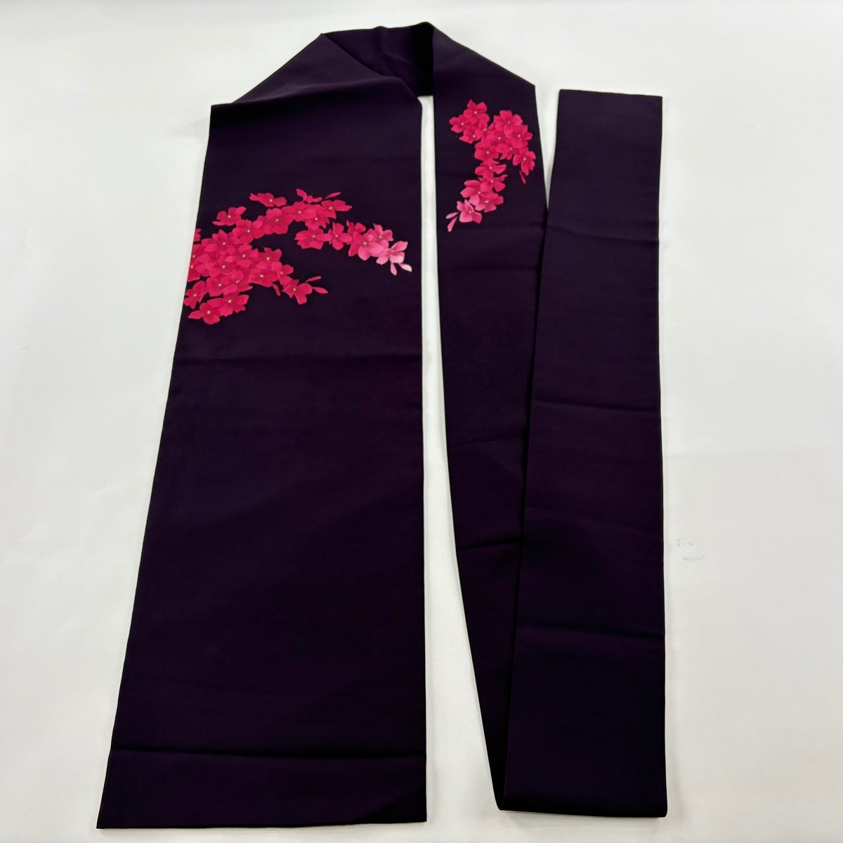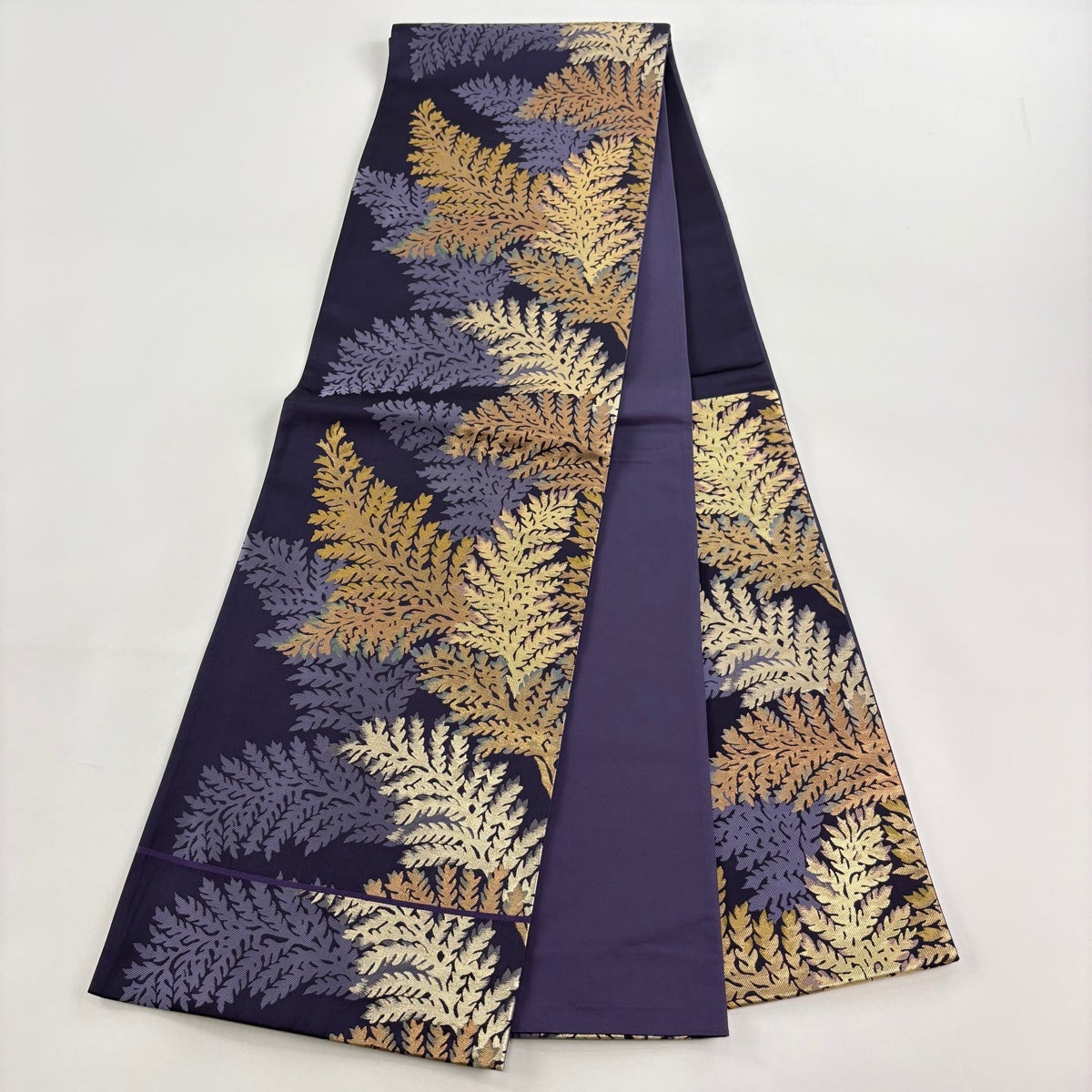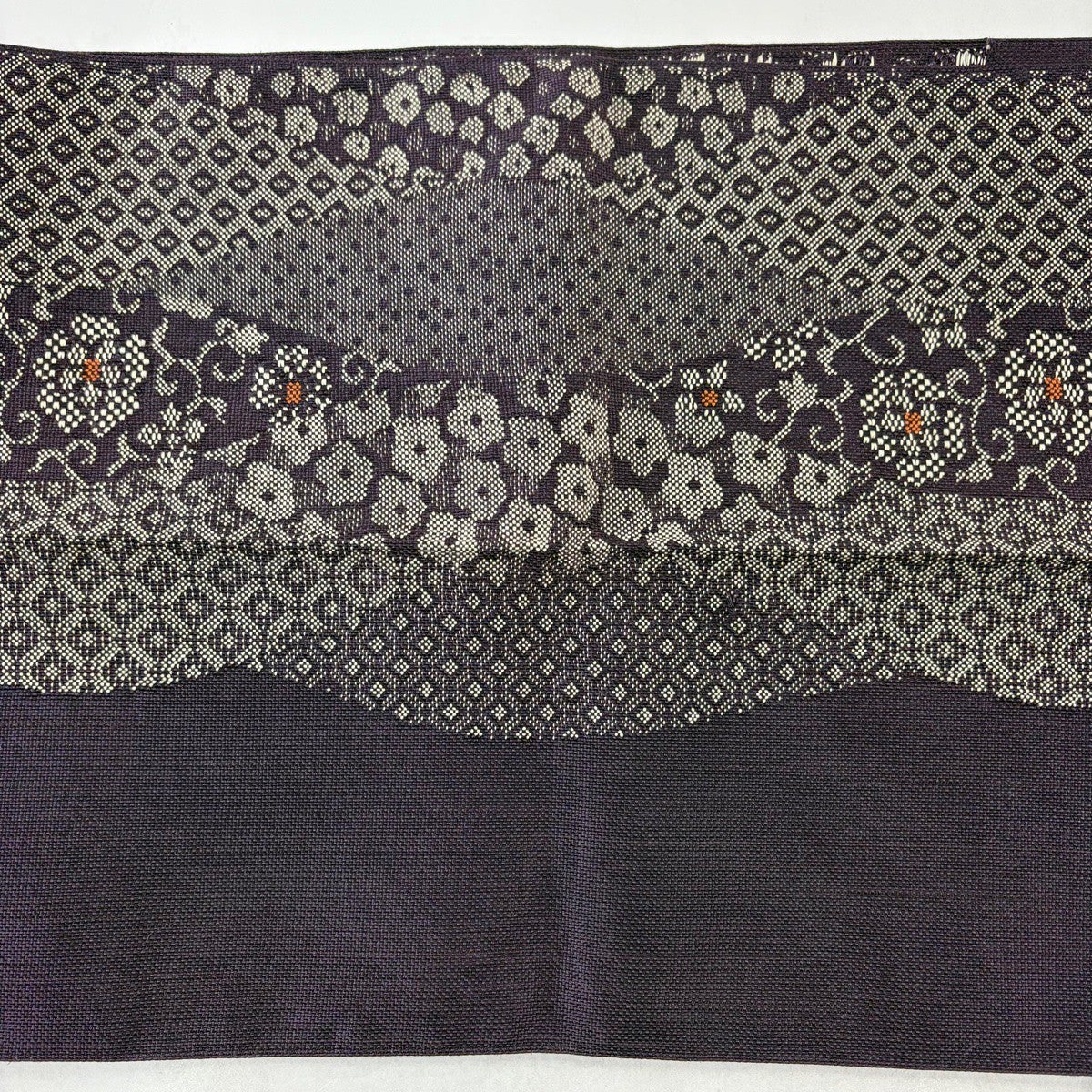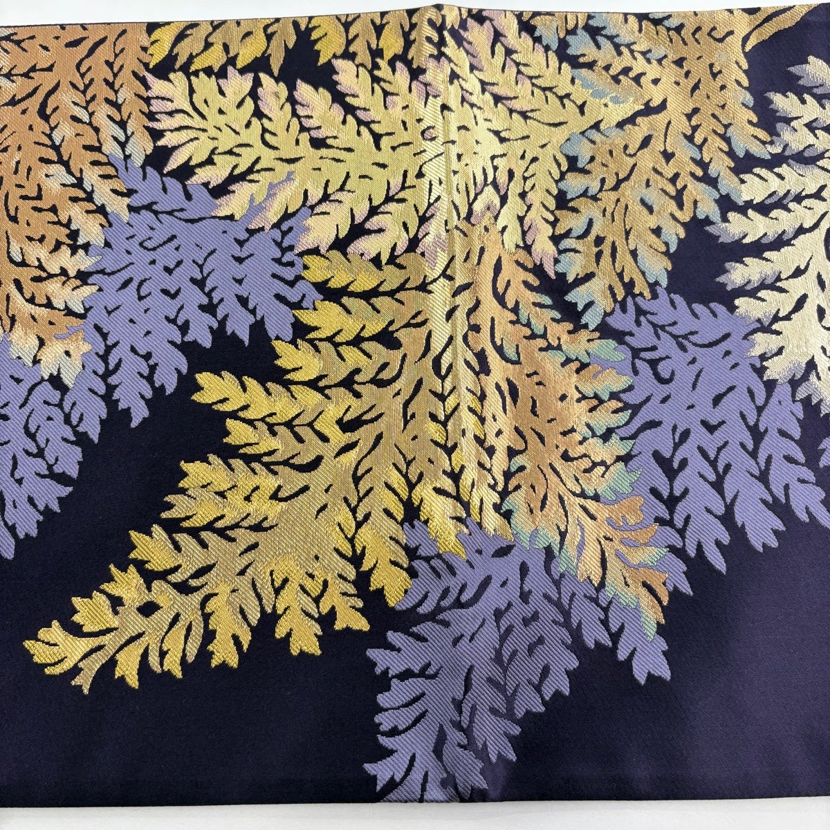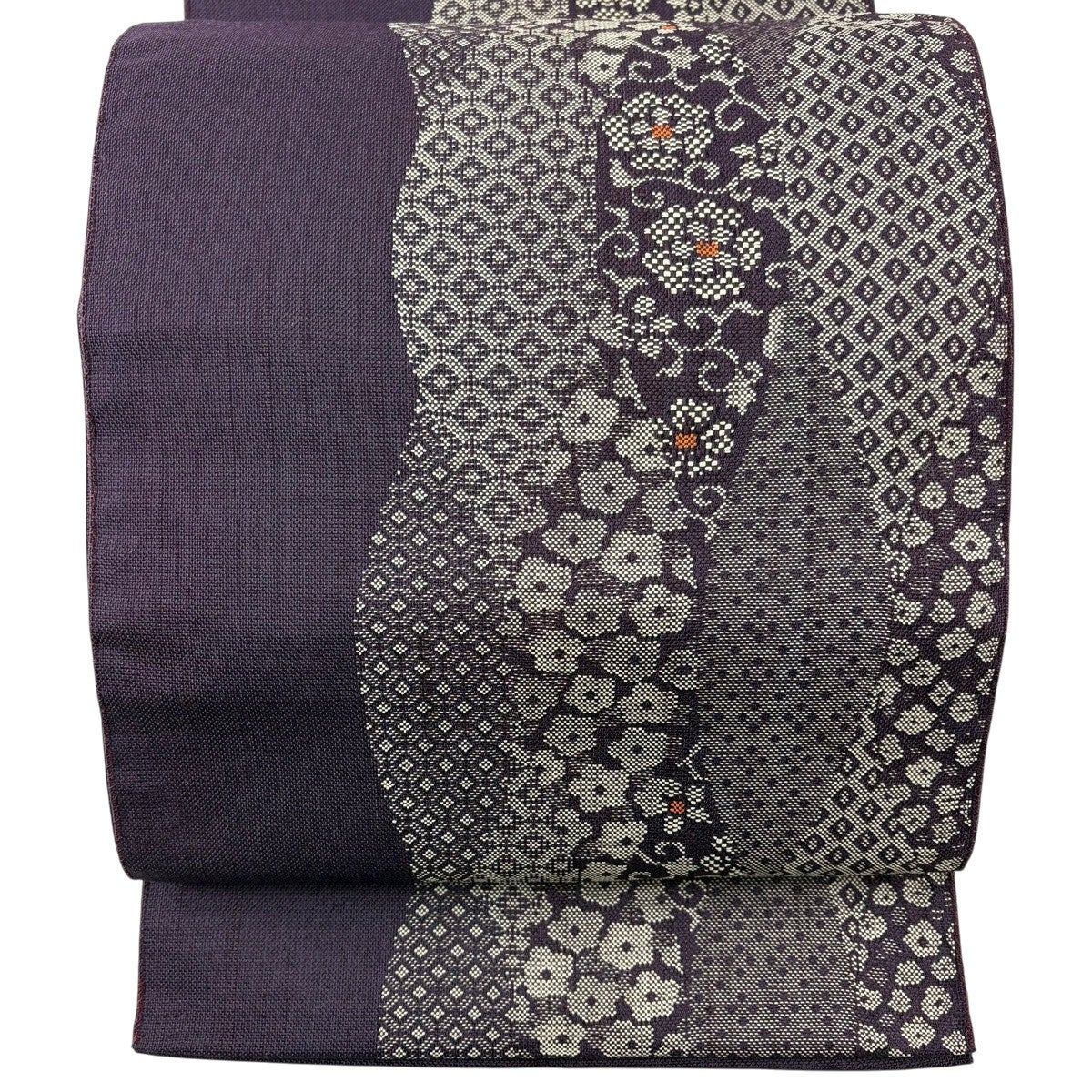 50%OFF 名古屋帯 逸品 鳥 枝 縮緬 ぼかし 濃紫 正絹 K50