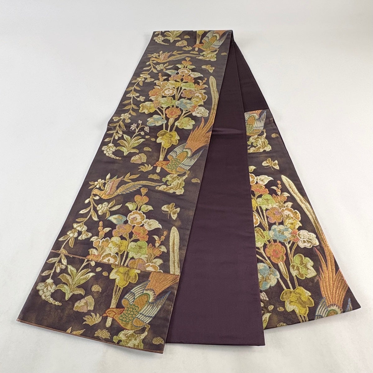 50%OFF 【美品】 袋帯 逸品 華文 鳥 濃紫 全通 正絹 K50