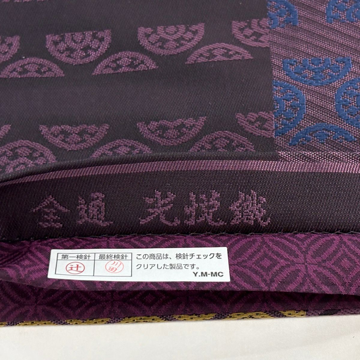 50%OFF 袋帯 秀品 雪輪 笹 唐織 金糸 濃紫 六通 正絹 K50