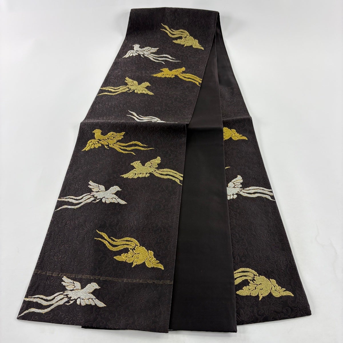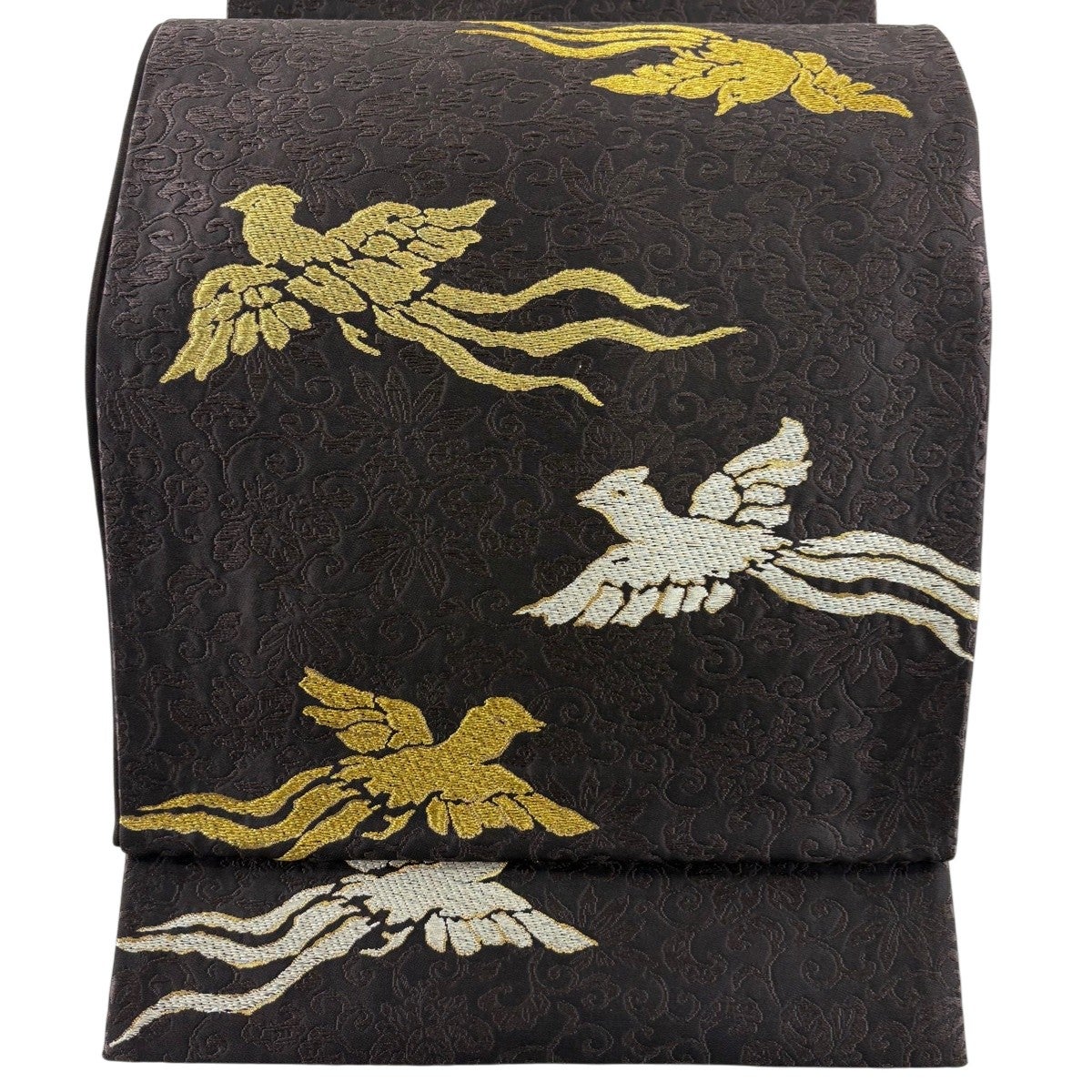 袋帯 名品 箔屋清兵衛 落款あり 関西仕立て 葡萄更紗文 箔 濃紫 全通 正絹