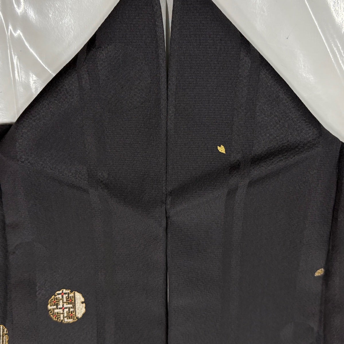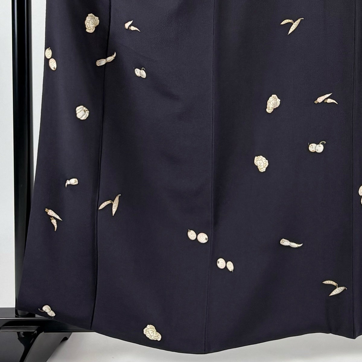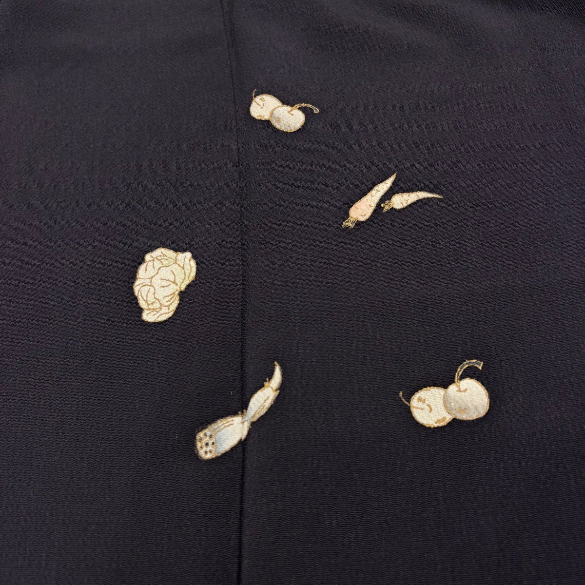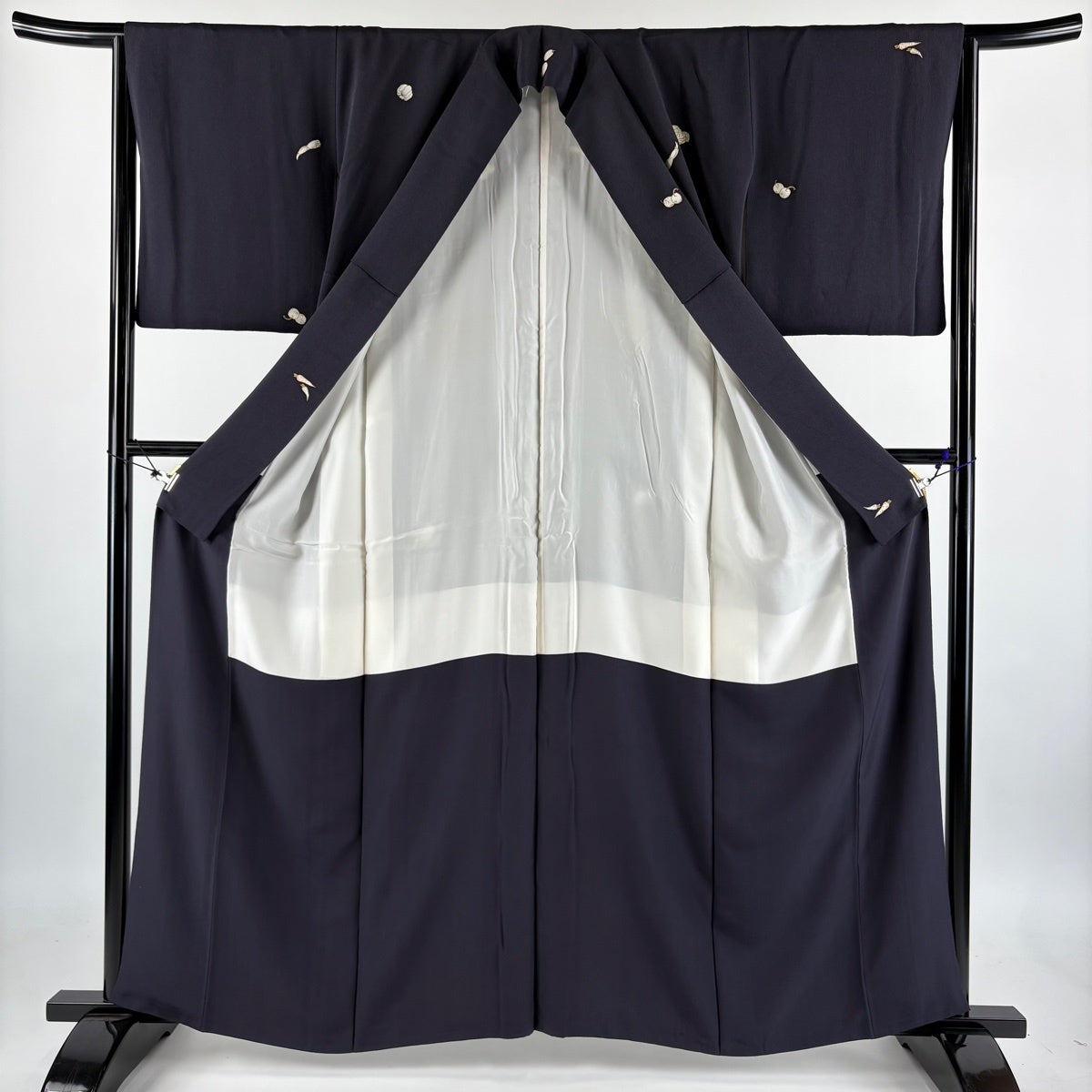 50%OFF 付下げ 身丈155cm 裄丈62cm S 袷 紬地 扇面 葉柄 金彩 濃紫 正絹 秀品 K50