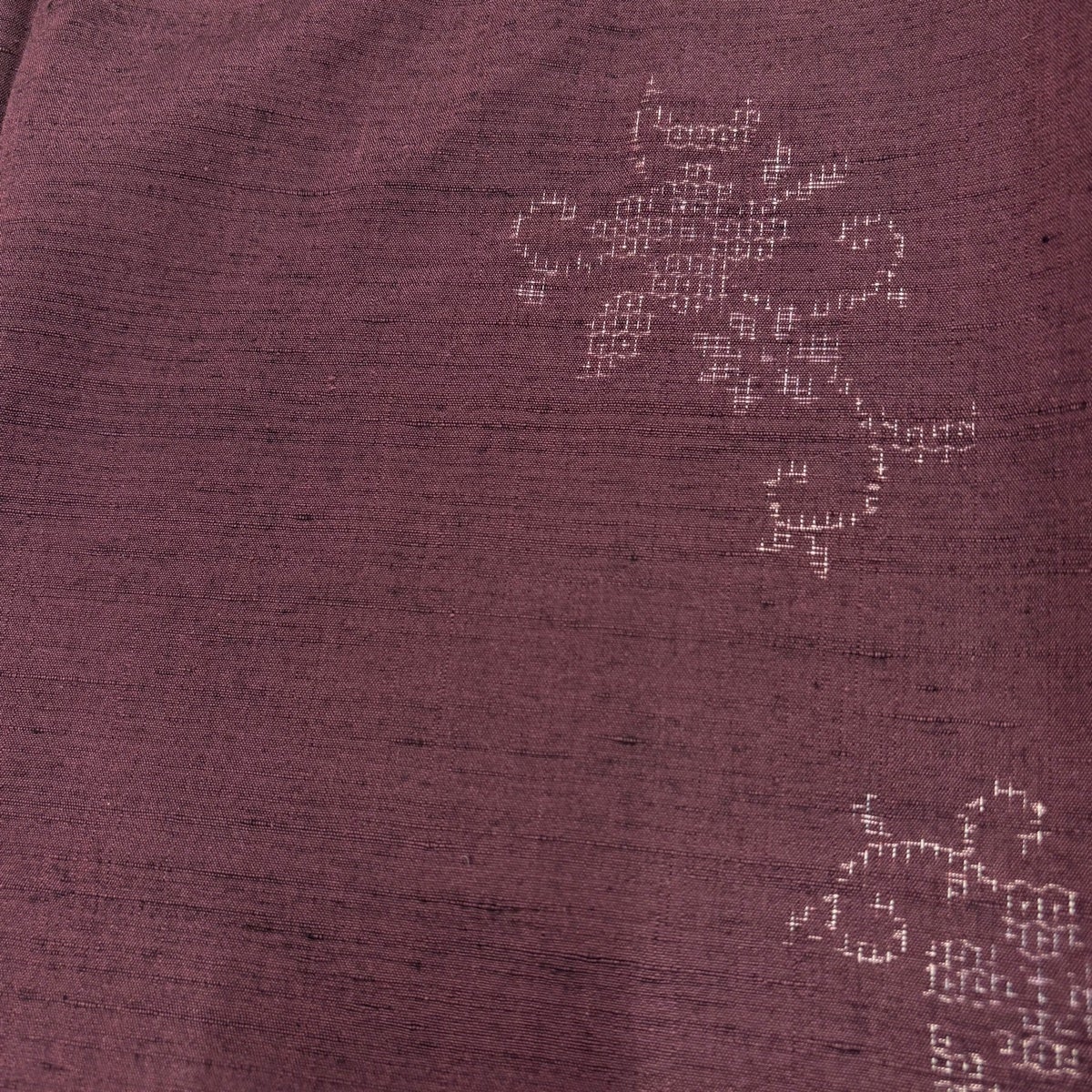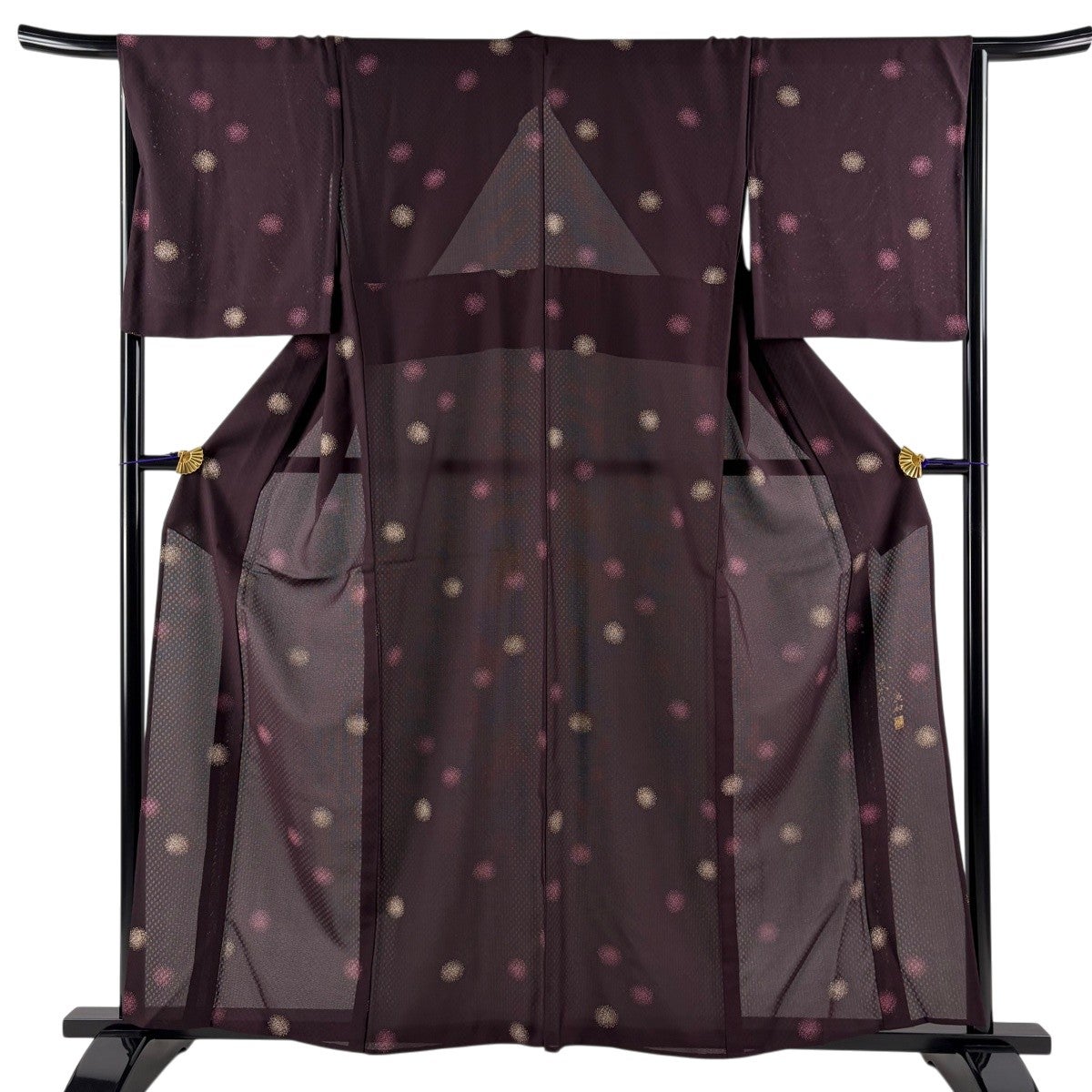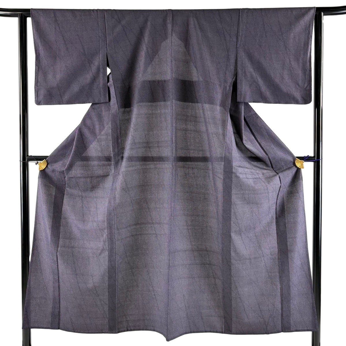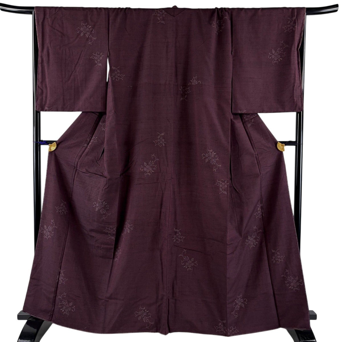 30%OFF 紬 身丈153.5cm 裄丈62.5cm S 薄物 夏紬 亀甲絣 幾何学 濃紫 正絹 秀品 K30