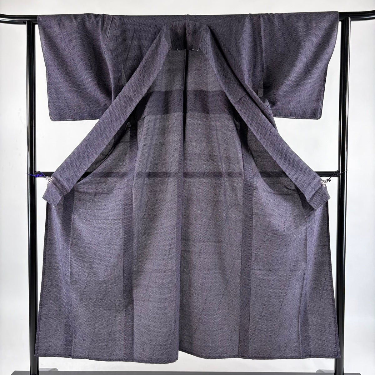 50%OFF 【美品】 紬 身丈159cm 裄丈61.5cm S 薄物 夏紬 縦縞 濃紫 正絹 秀品 K50