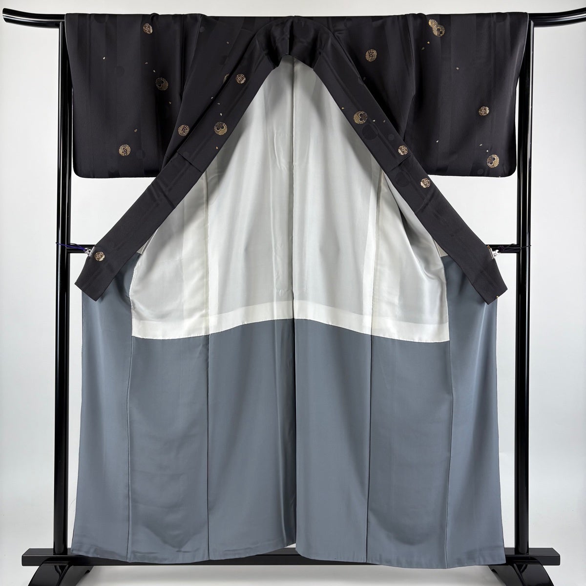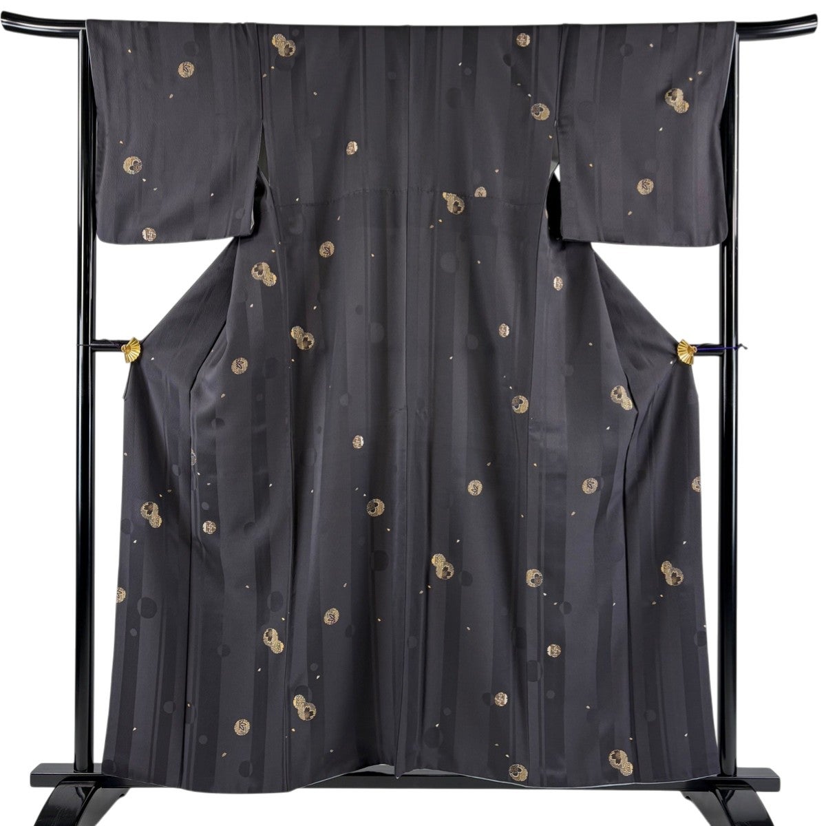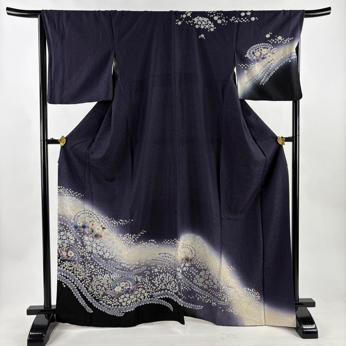 50%OFF 訪問着 身丈156cm 裄丈64cm M 袷 網干 波頭 金糸 金銀彩 濃紫 正絹 秀品 K50