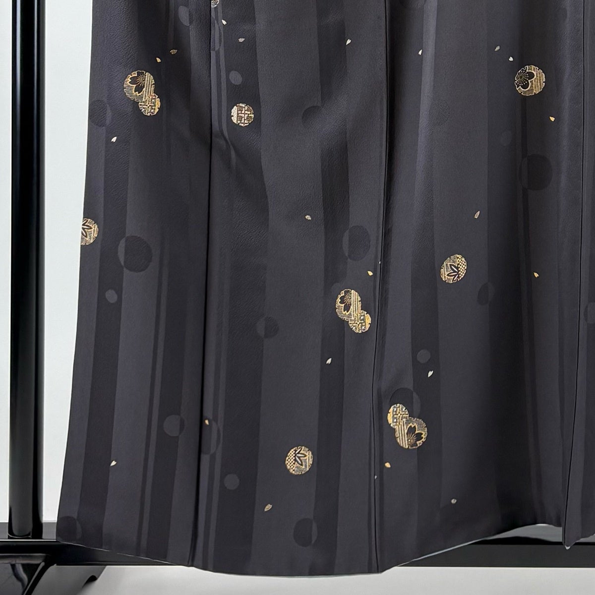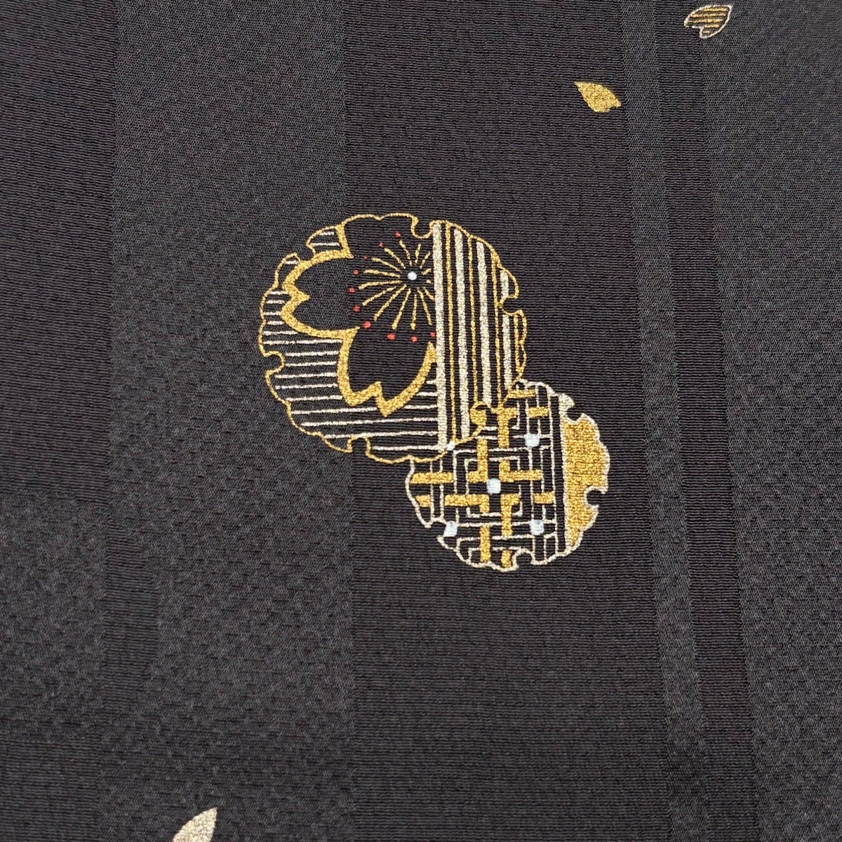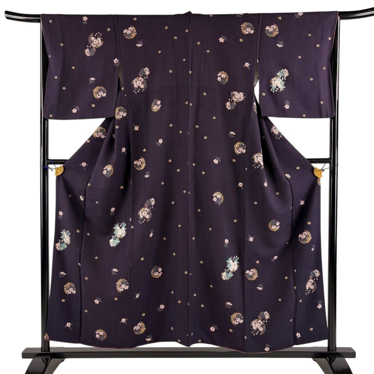 30%OFF 【美品】 小紋 身丈158cm 裄丈65cm M 袷 雪輪 桜 金彩 濃紫 正絹 秀品 K30