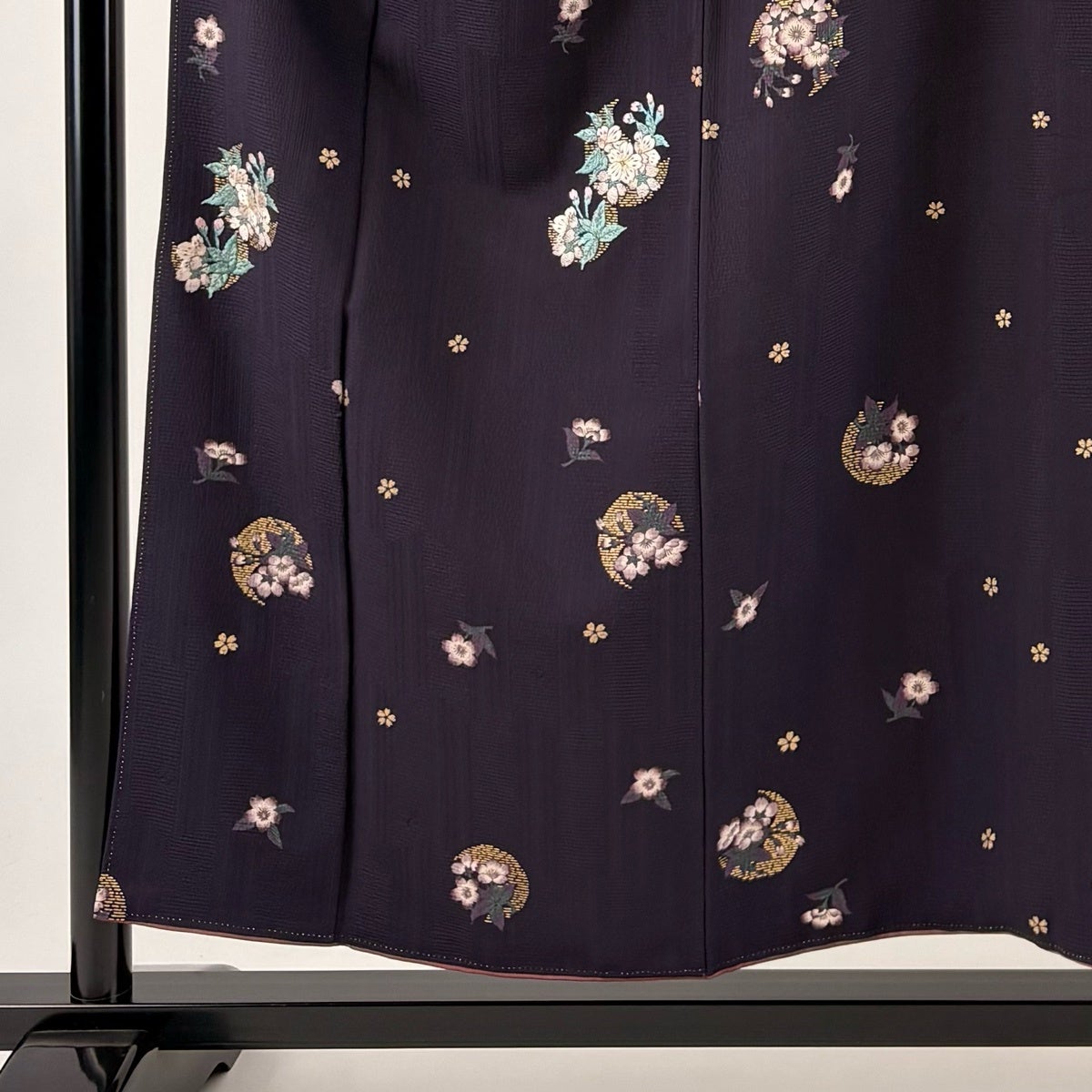 50%OFF 振袖 身丈169cm 裄丈67.5cm L 袷 薔薇 桜 刺繍 箔 濃紫 正絹 名品 K50