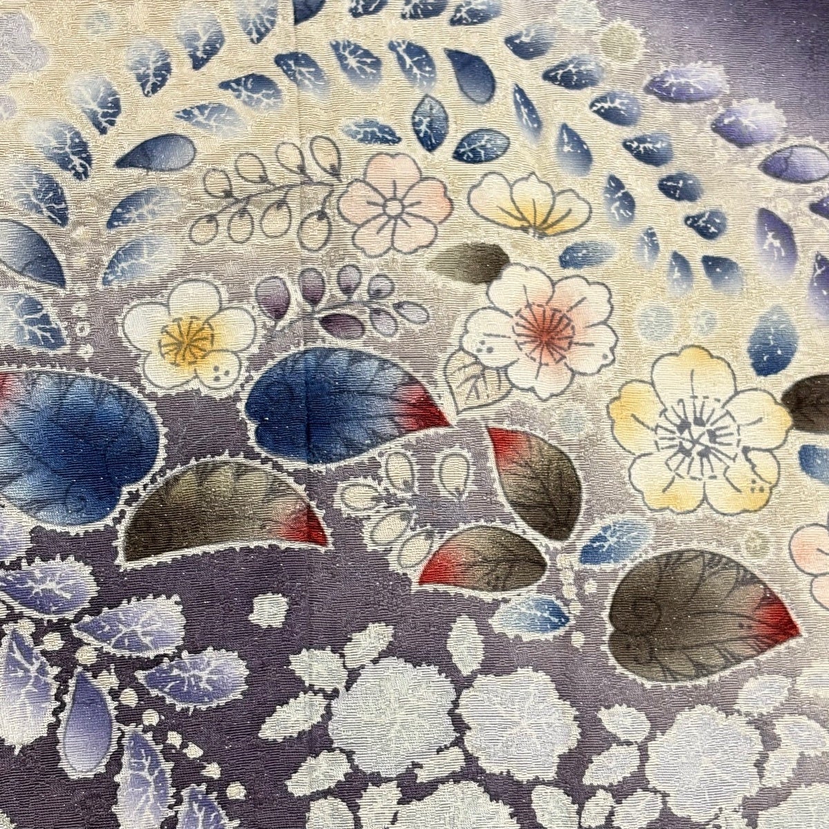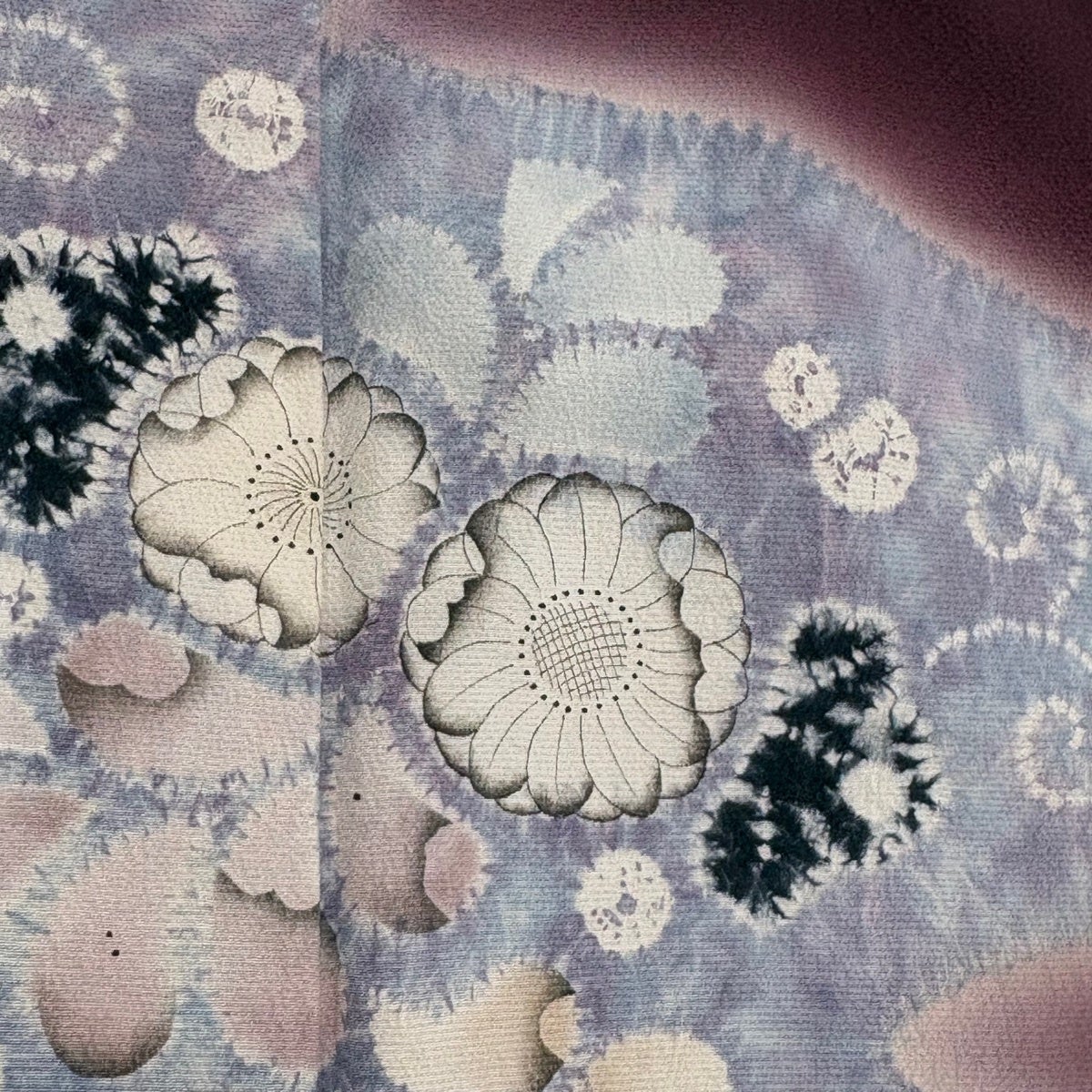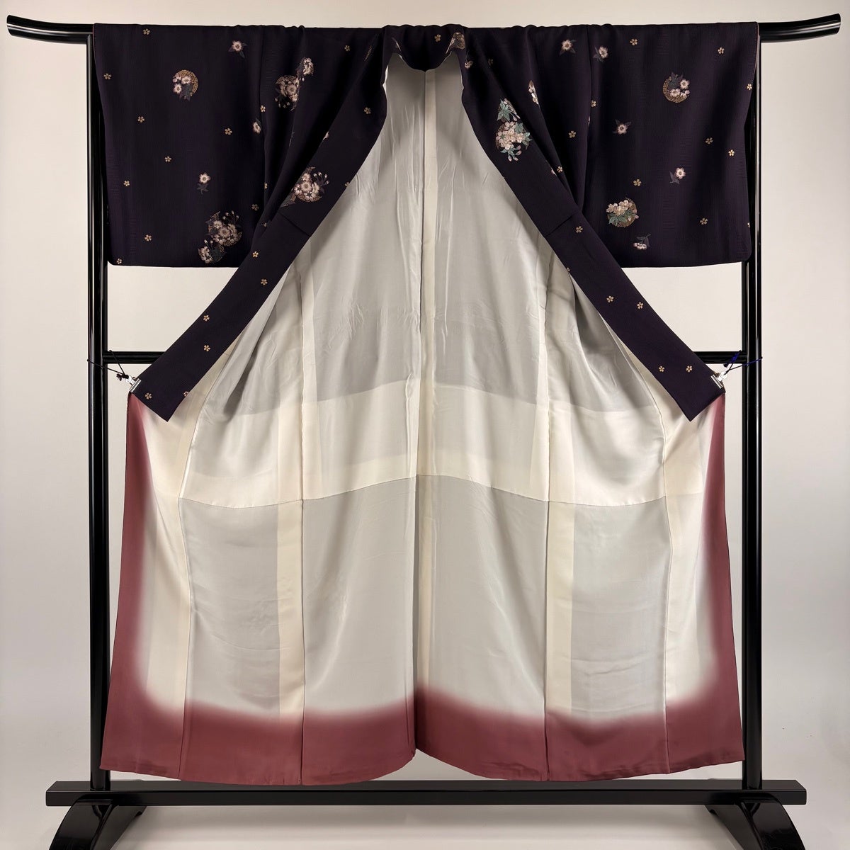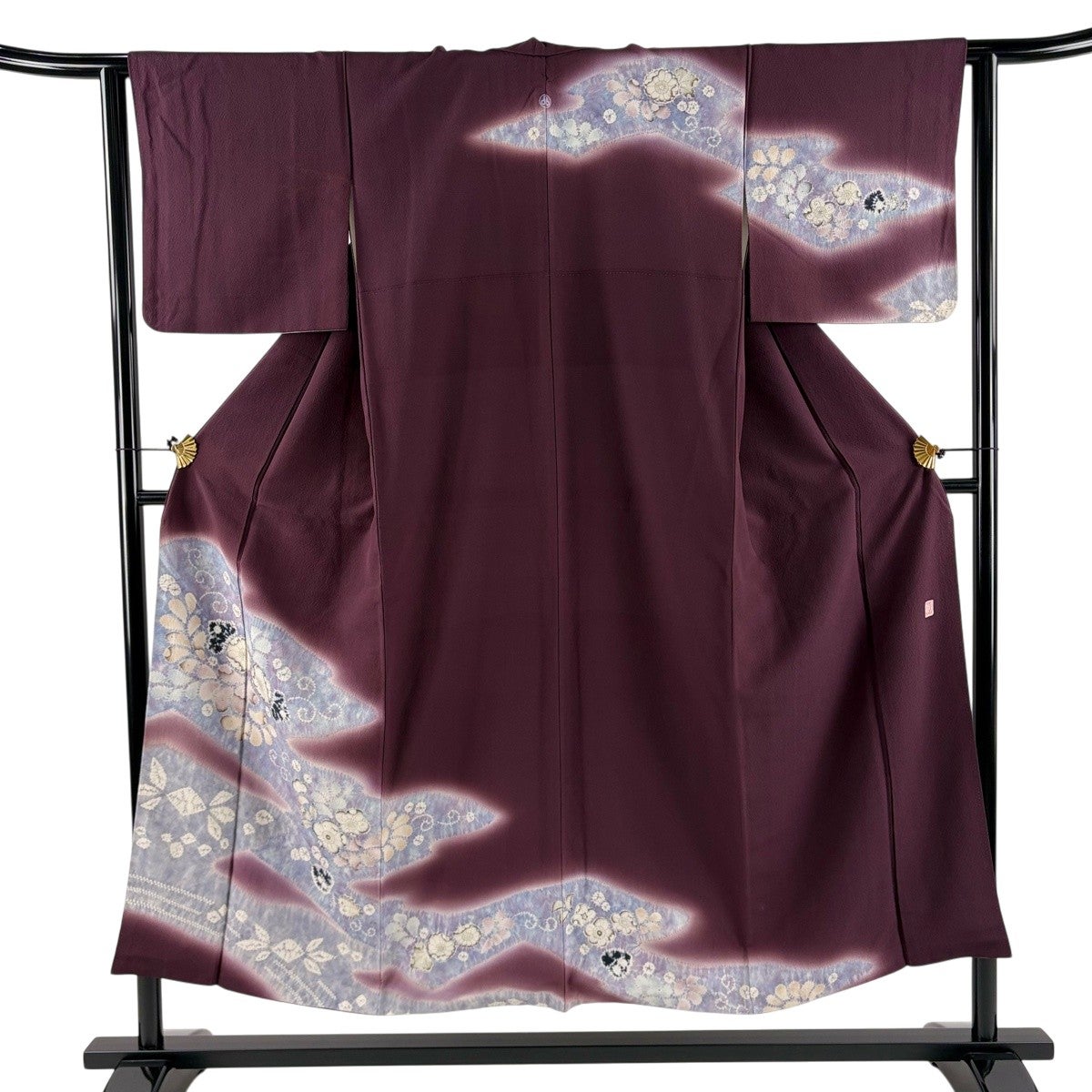 40%OFF 訪問着 身丈167cm 裄丈62cm S 袷 雪輪 花唐草 ぼかし 濃紫 正絹 逸品 K30