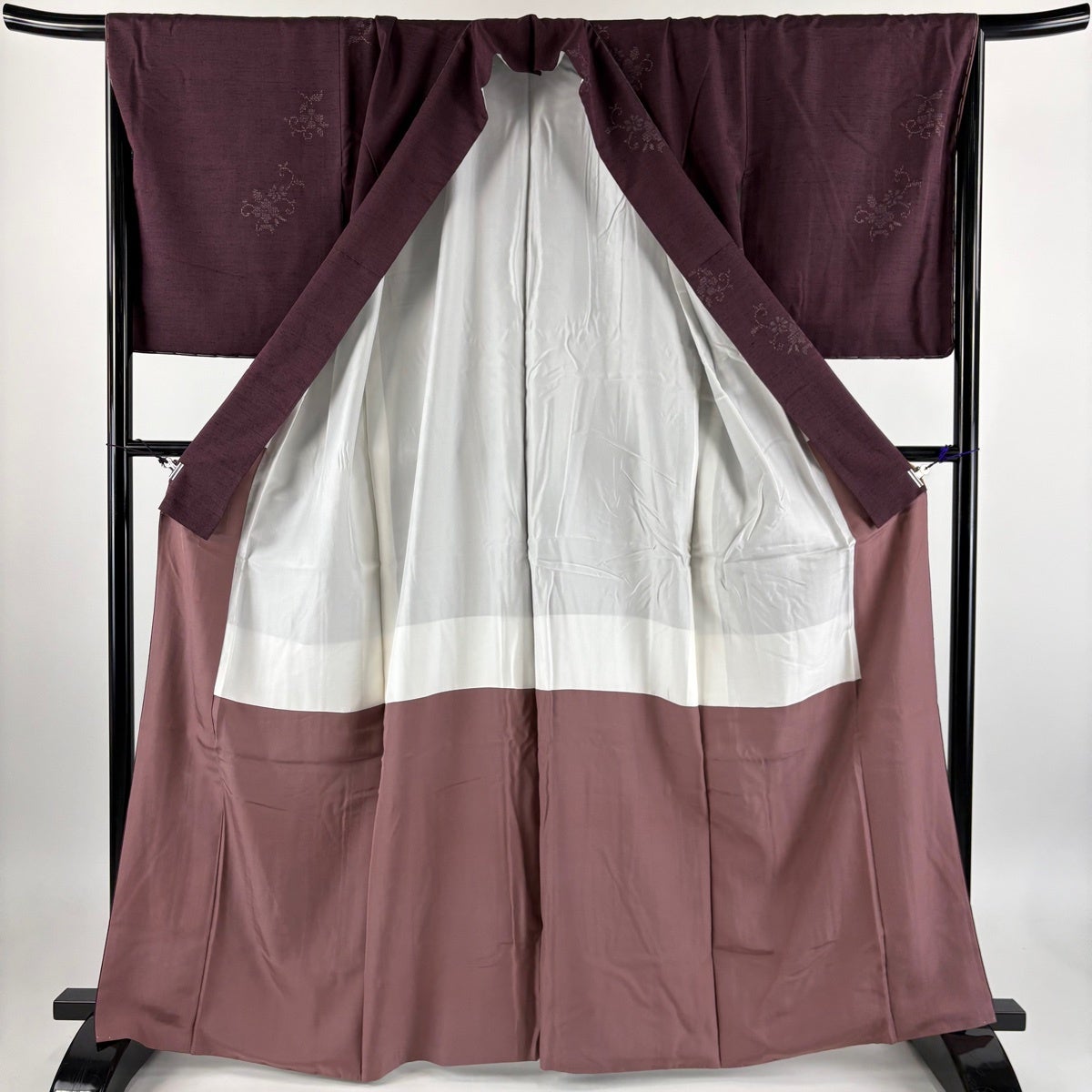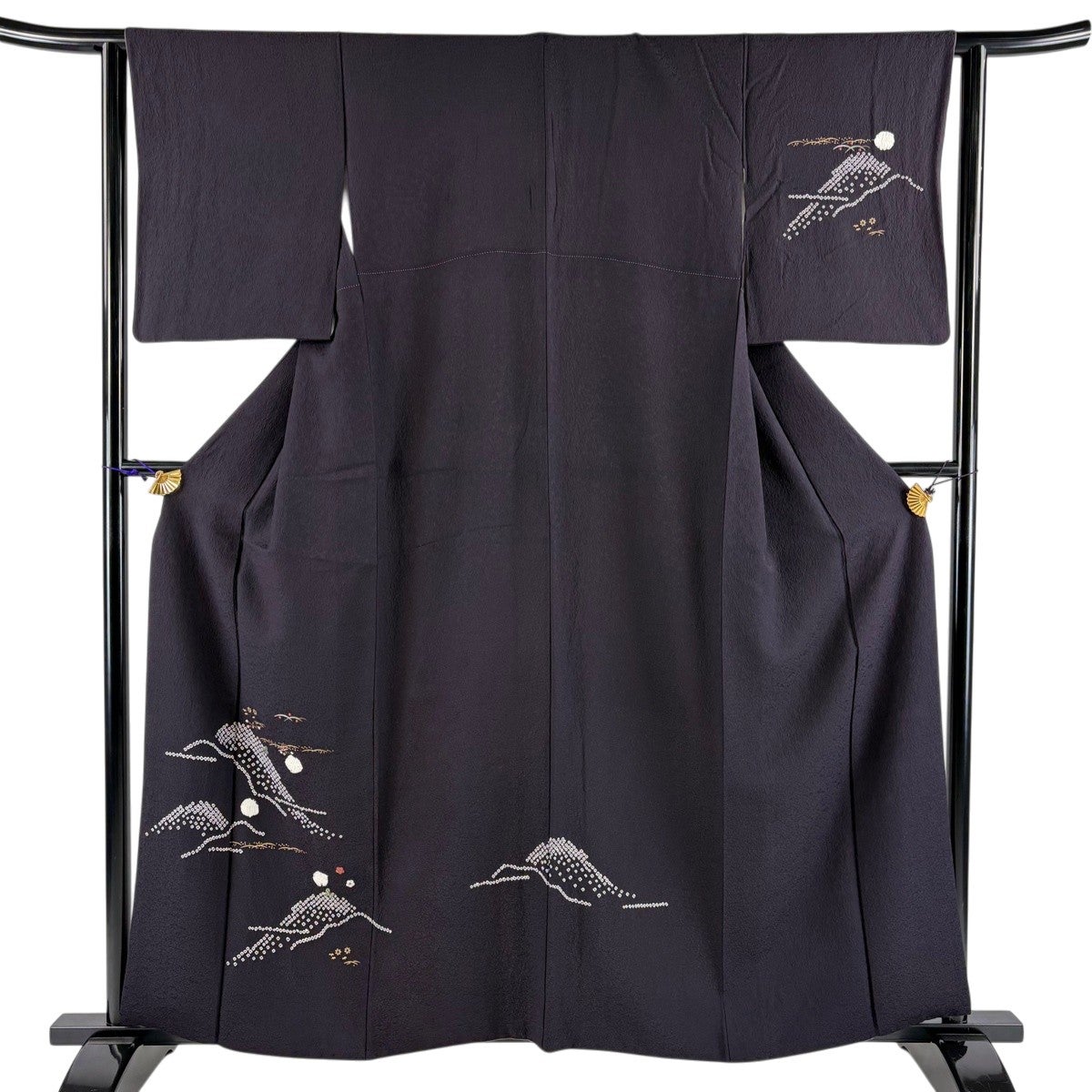 30%OFF 付下げ 身丈159cm 裄丈63.5cm S 袷 草花 山 刺繍 金彩 濃紫 正絹 秀品 K30
