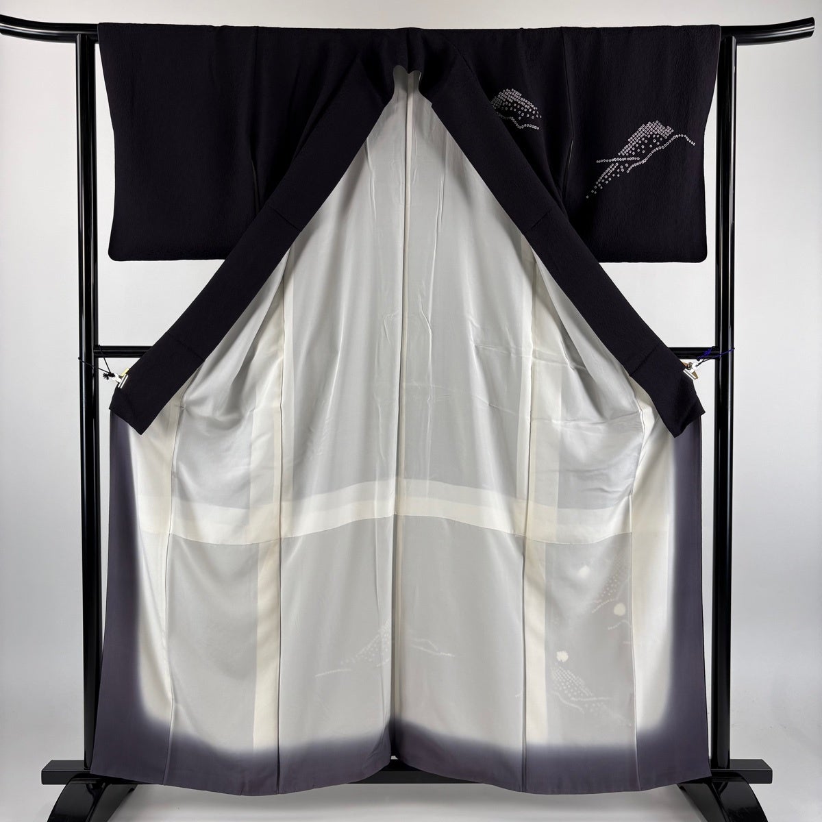 50%OFF 訪問着 身丈164cm 裄丈67.5cm L 袷 霞 銀彩 ぼかし 濃紫 正絹 逸品 K50