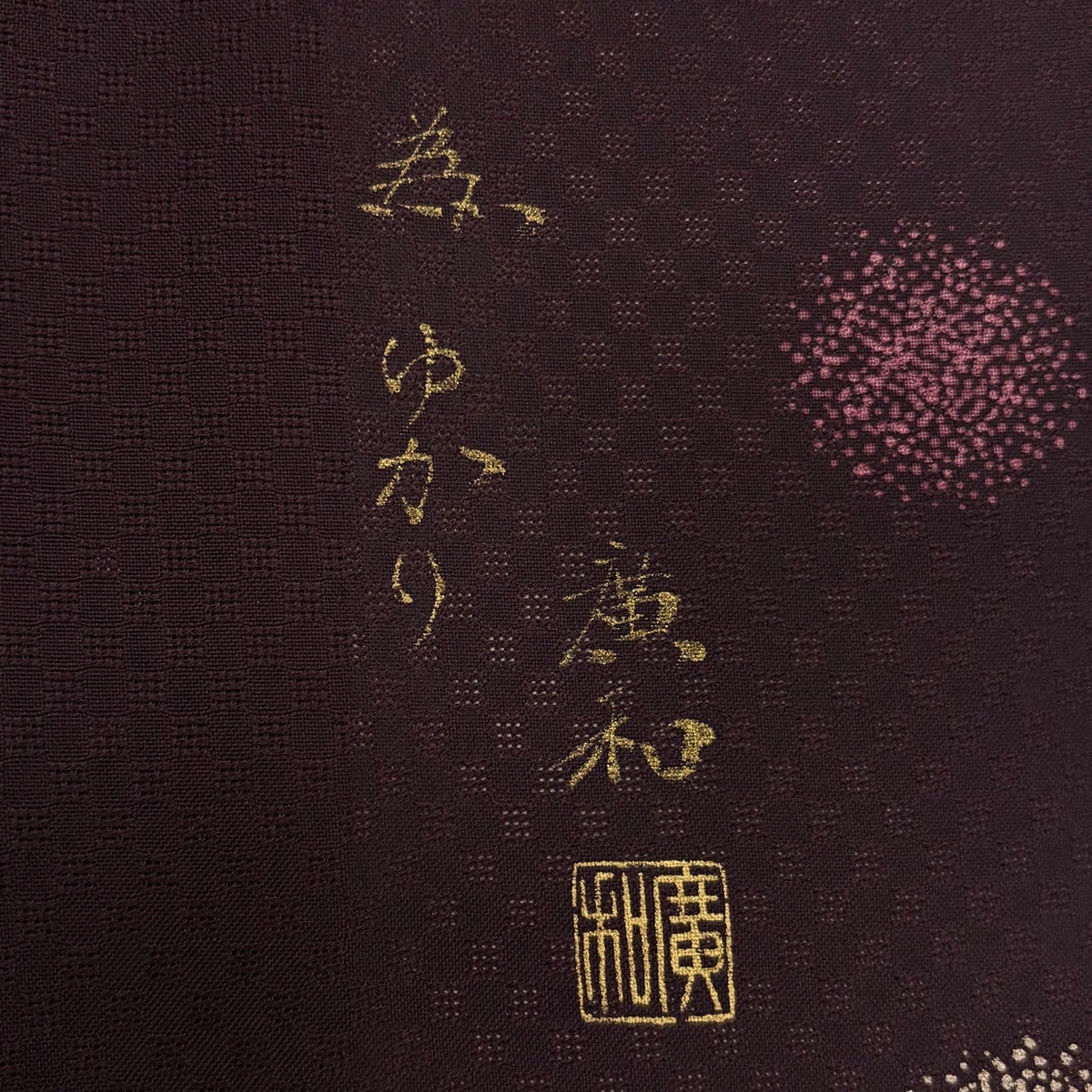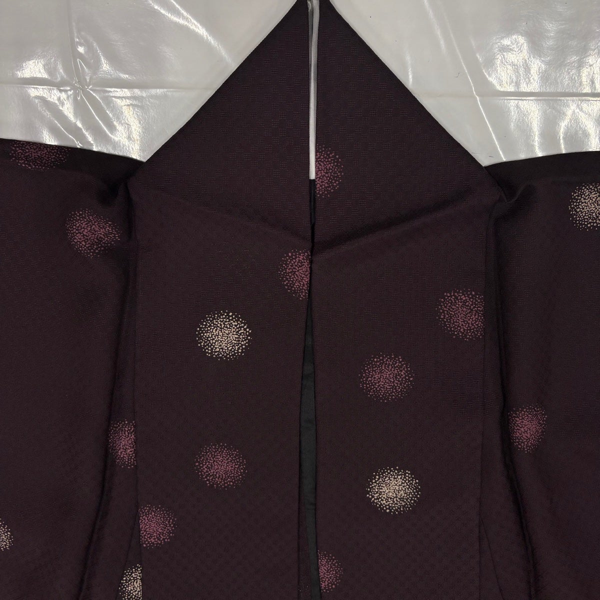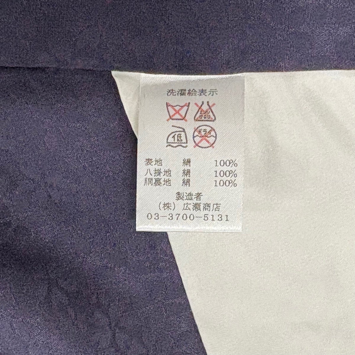 50%OFF 【美品】 紬 身丈159cm 裄丈63.5cm S 袷 文字文 色紙 濃紫 正絹 秀品 K50