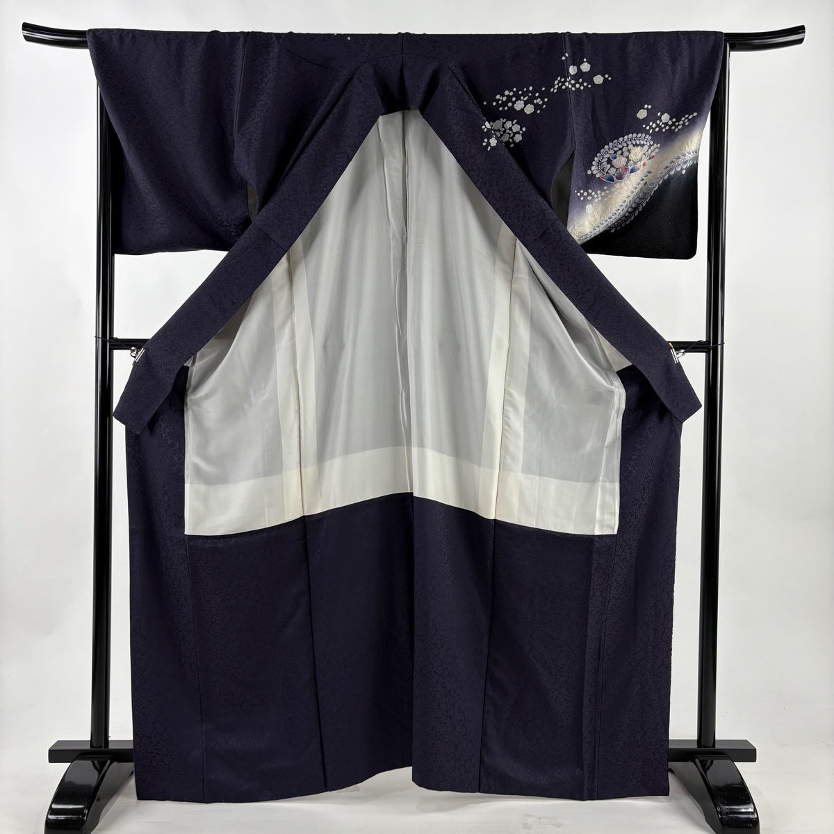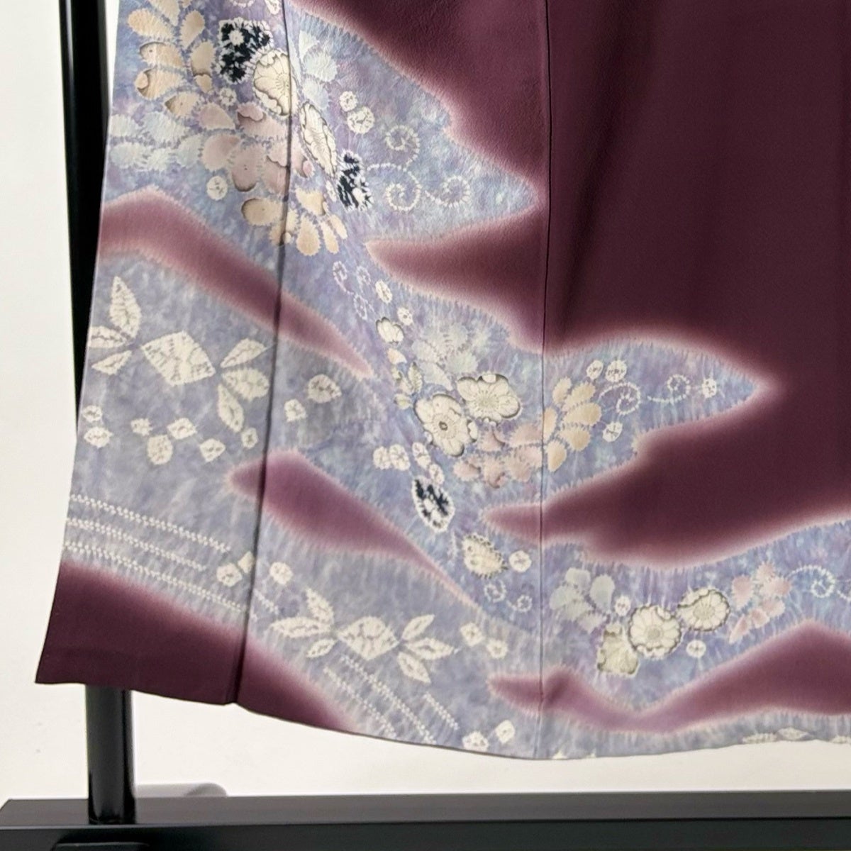 30%OFF 訪問着 身丈161cm 裄丈65cm M 袷 落款あり 枝花 ぼかし 濃紫 正絹 名品 K30