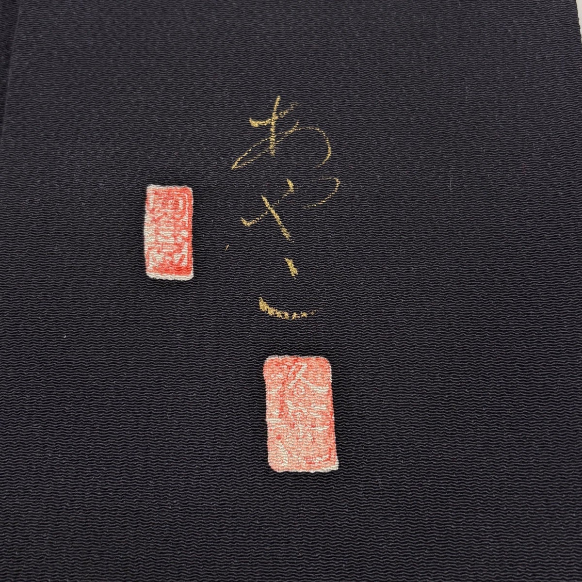 50%OFF 【美品】 袋帯 名品 落款あり コシノヒロコ 波 幾何学模様 箔 濃紫 六通 正絹 K50