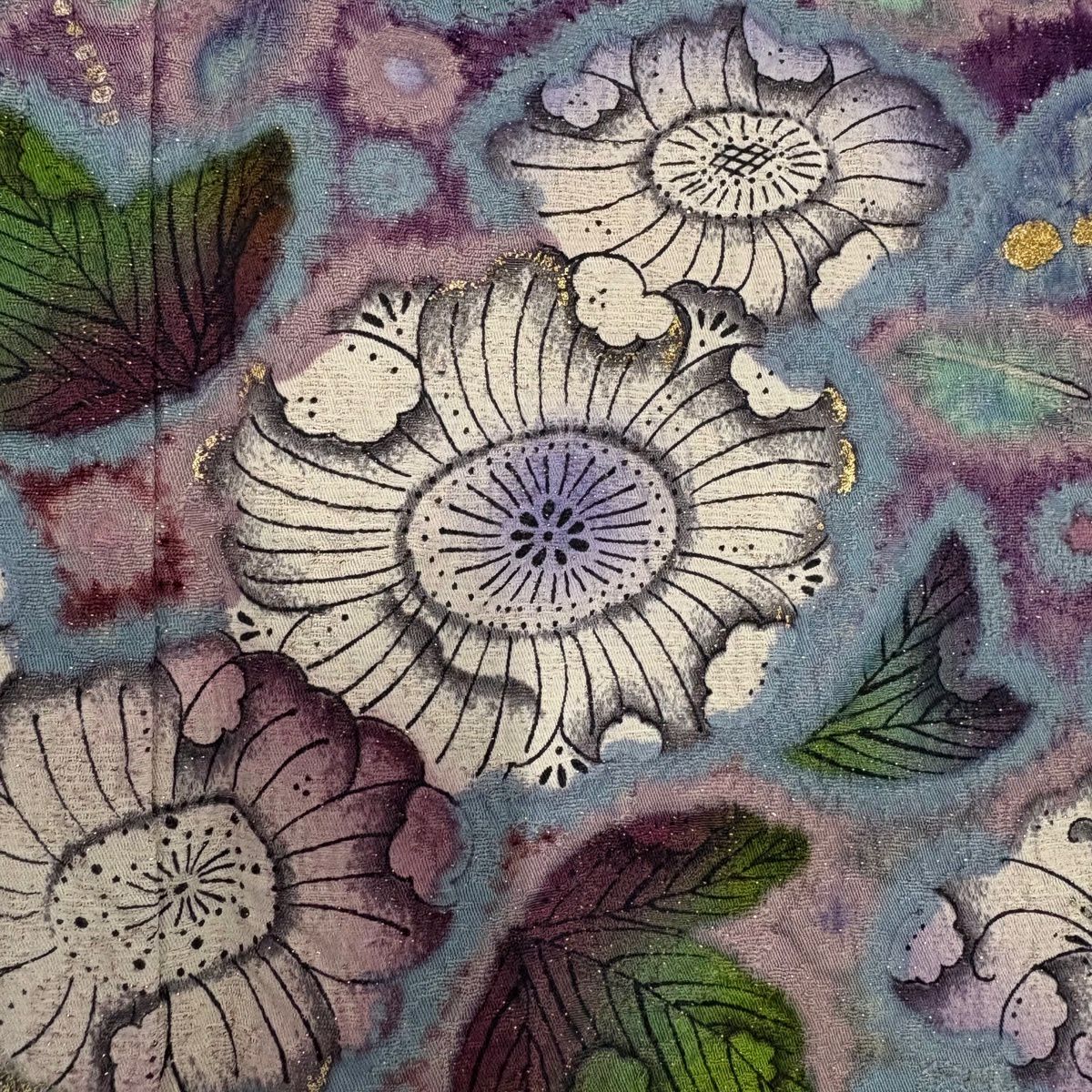 訪問着 身丈150.5cm 裄丈62cm S 袷 滝泰 落款あり 辻が花 霞 ぼかし 濃紫 正絹 名品 一つ紋