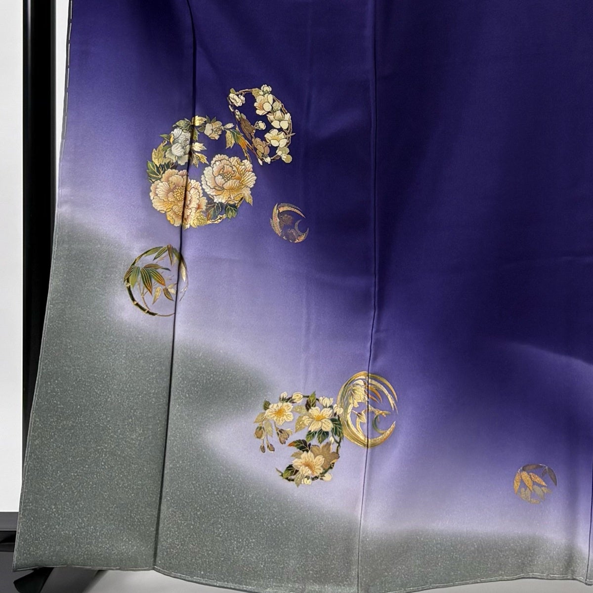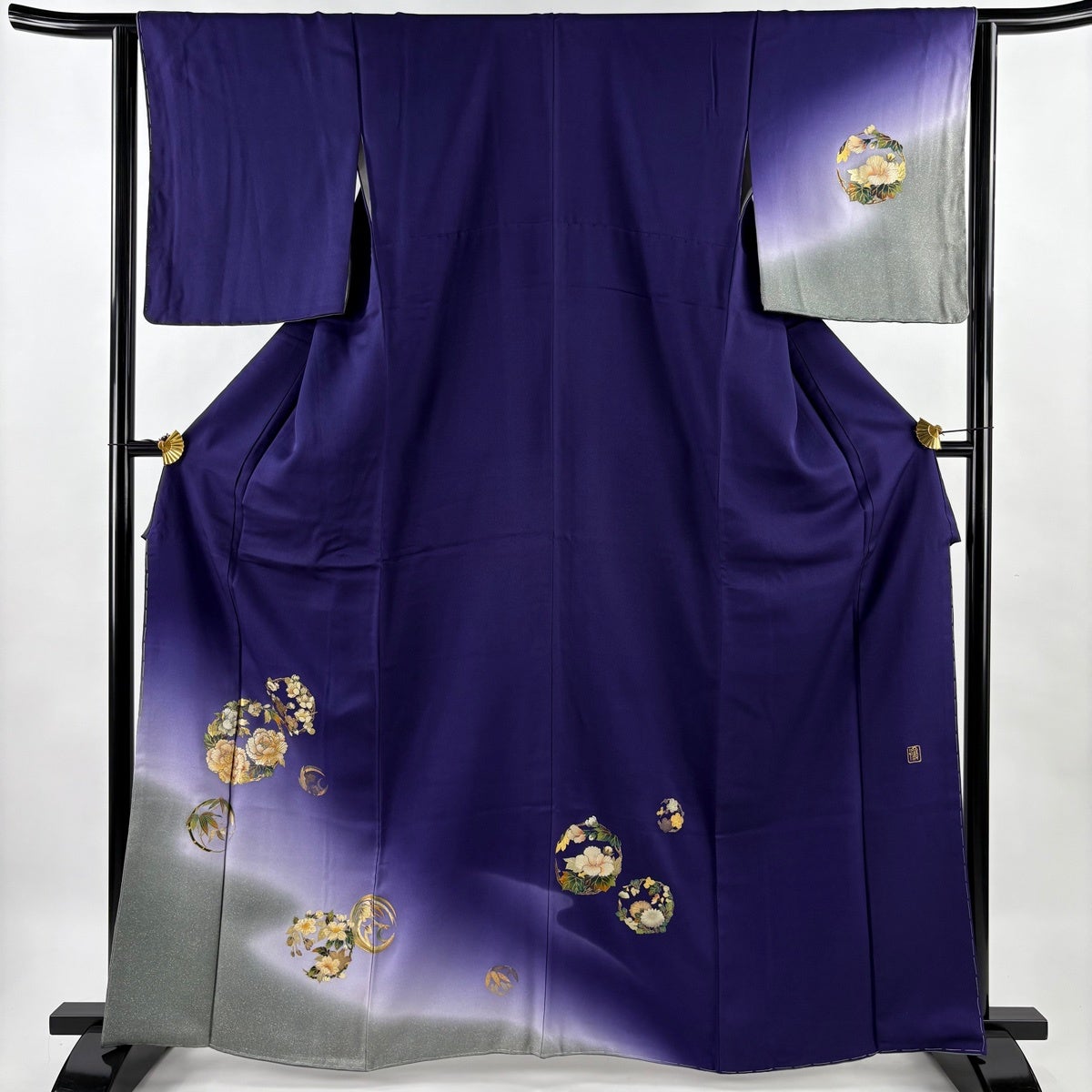 付下げ 身丈156cm 裄丈62cm S 袷 ますいわ屋 雪輪 草花 金彩 ぼかし 濃紫 正絹 秀品 一つ紋
