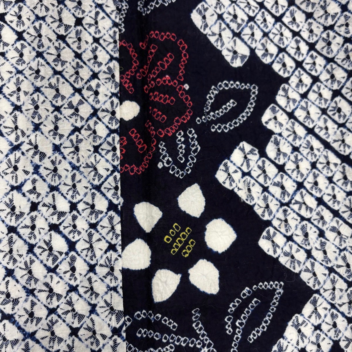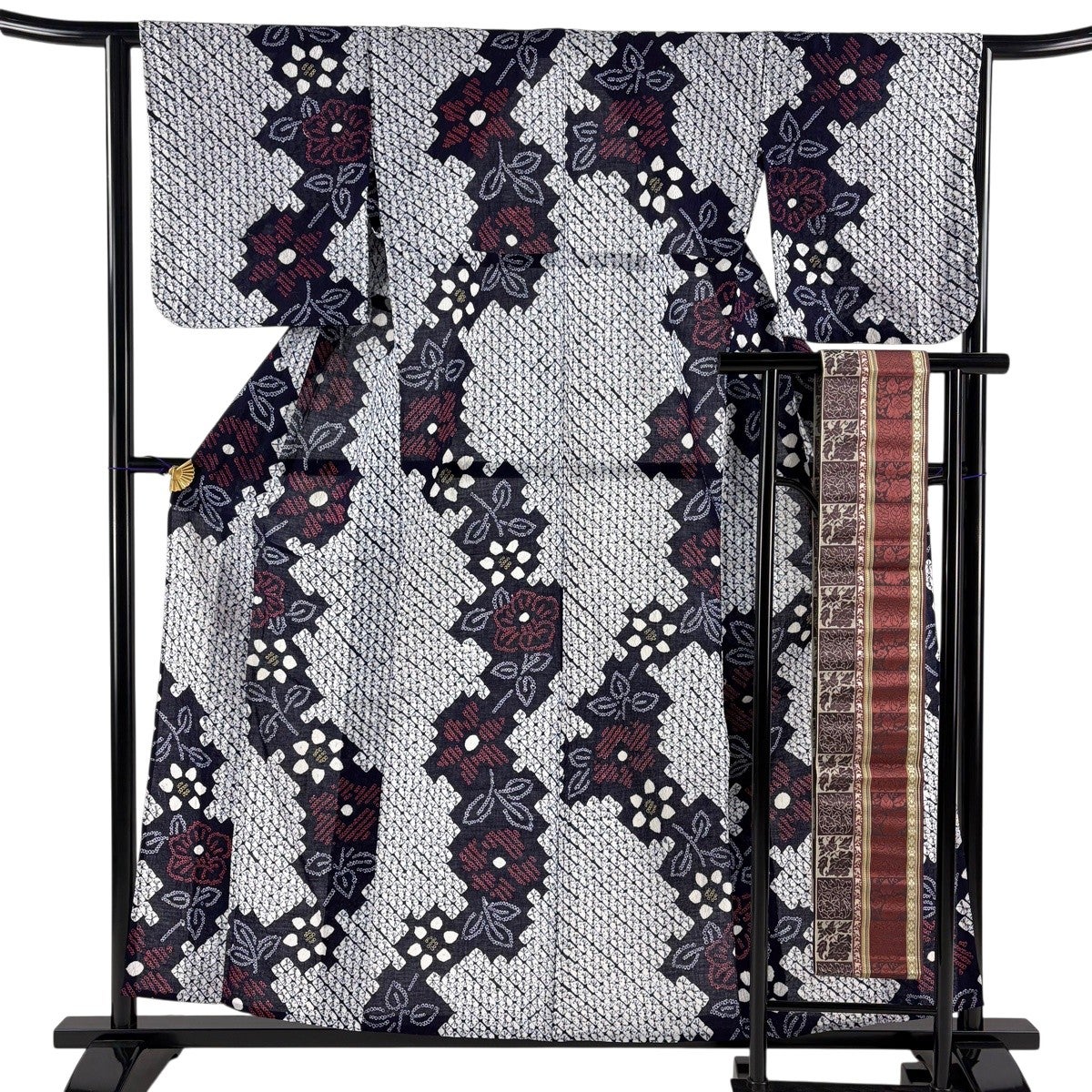 【美品】浴衣 身丈164.5cm 裄丈69cm L 絞り浴衣 半幅帯セット 花 幾何学模様 濃紺 綿 名品