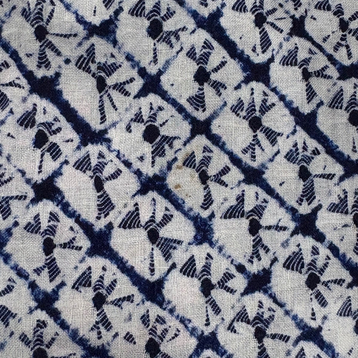 【美品】 小紋 身丈158.5cm 裄丈65.5cm M 袷 背抜き 幾何学模様 藍染 濃紺 正絹 名品