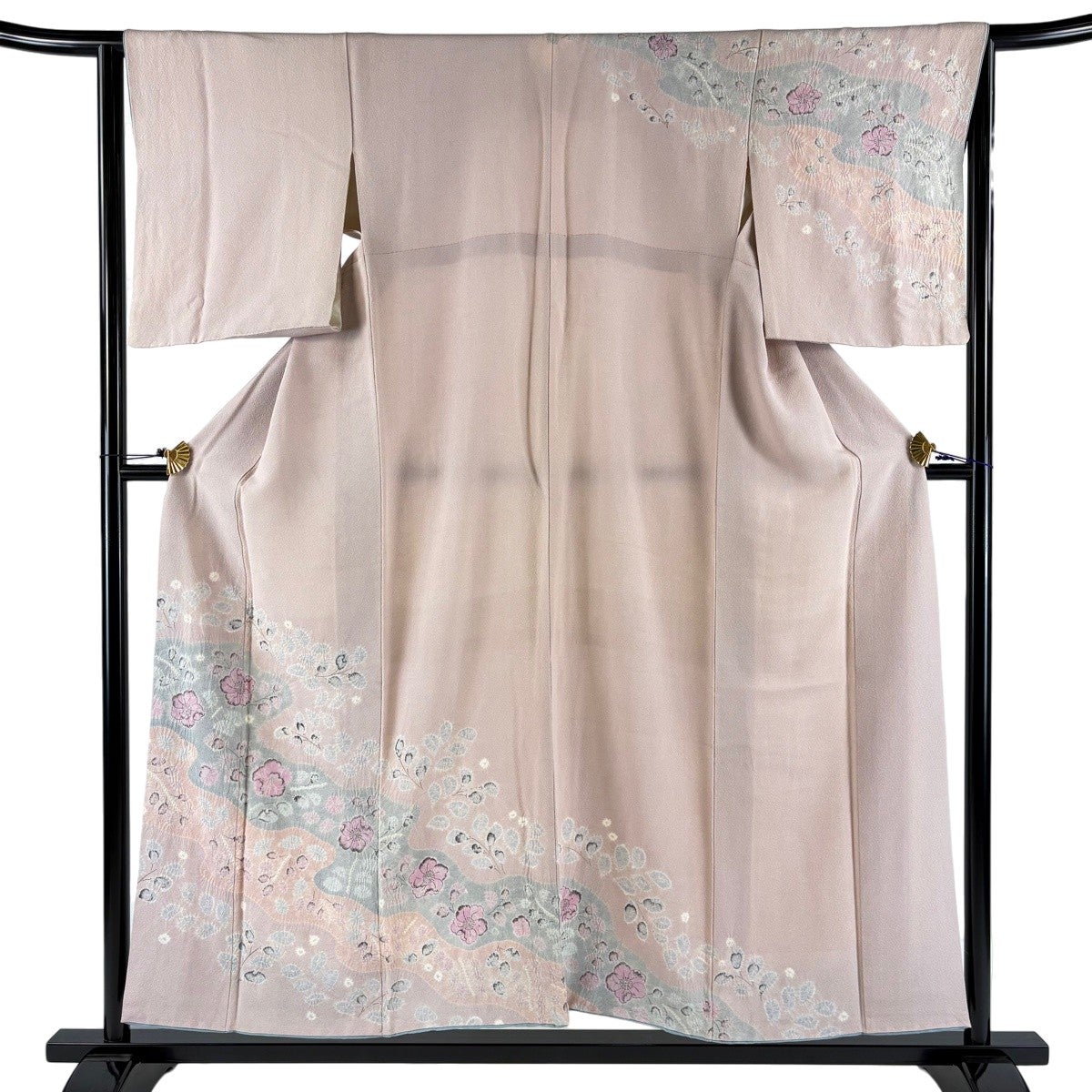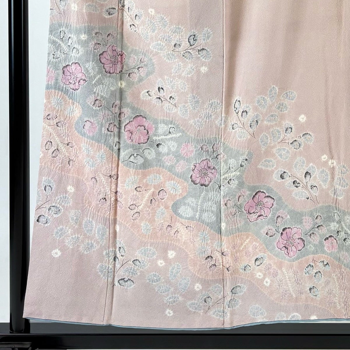 訪問着 身丈153cm 裄丈64.5cm M 袷 草花 霞 絞り 灰桜 正絹 秀品 一つ紋