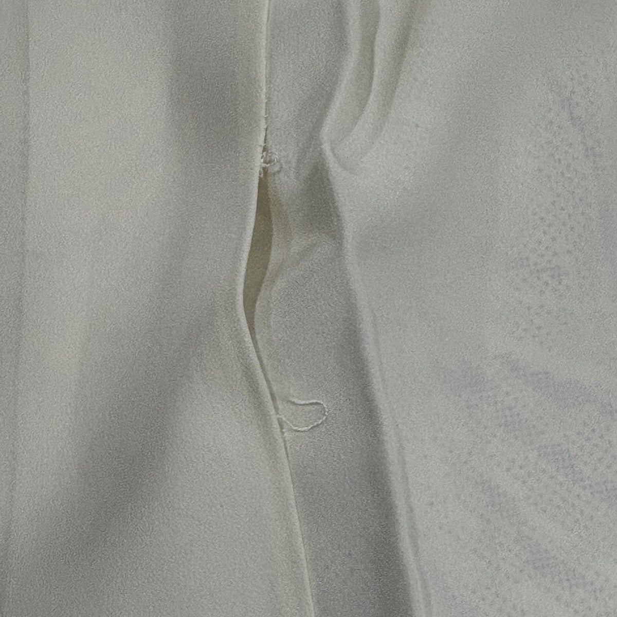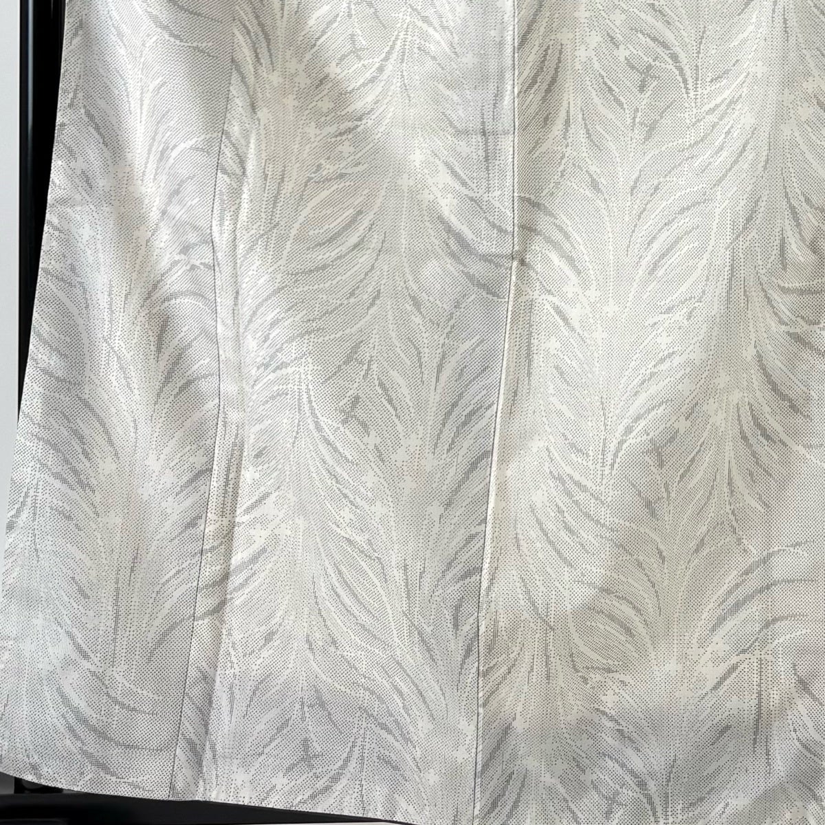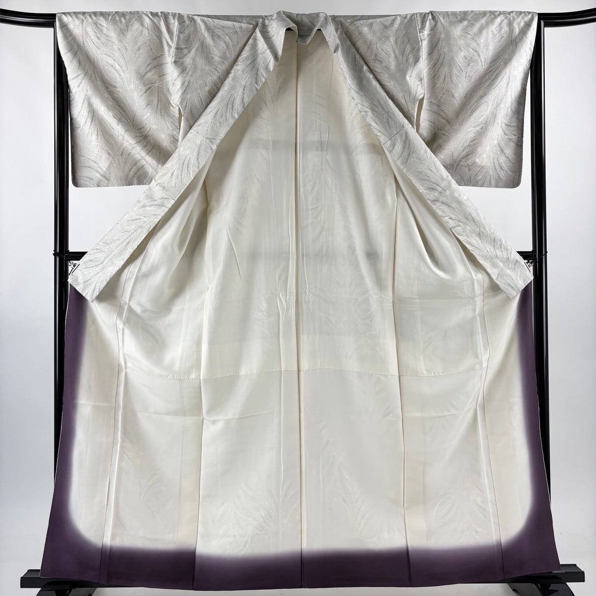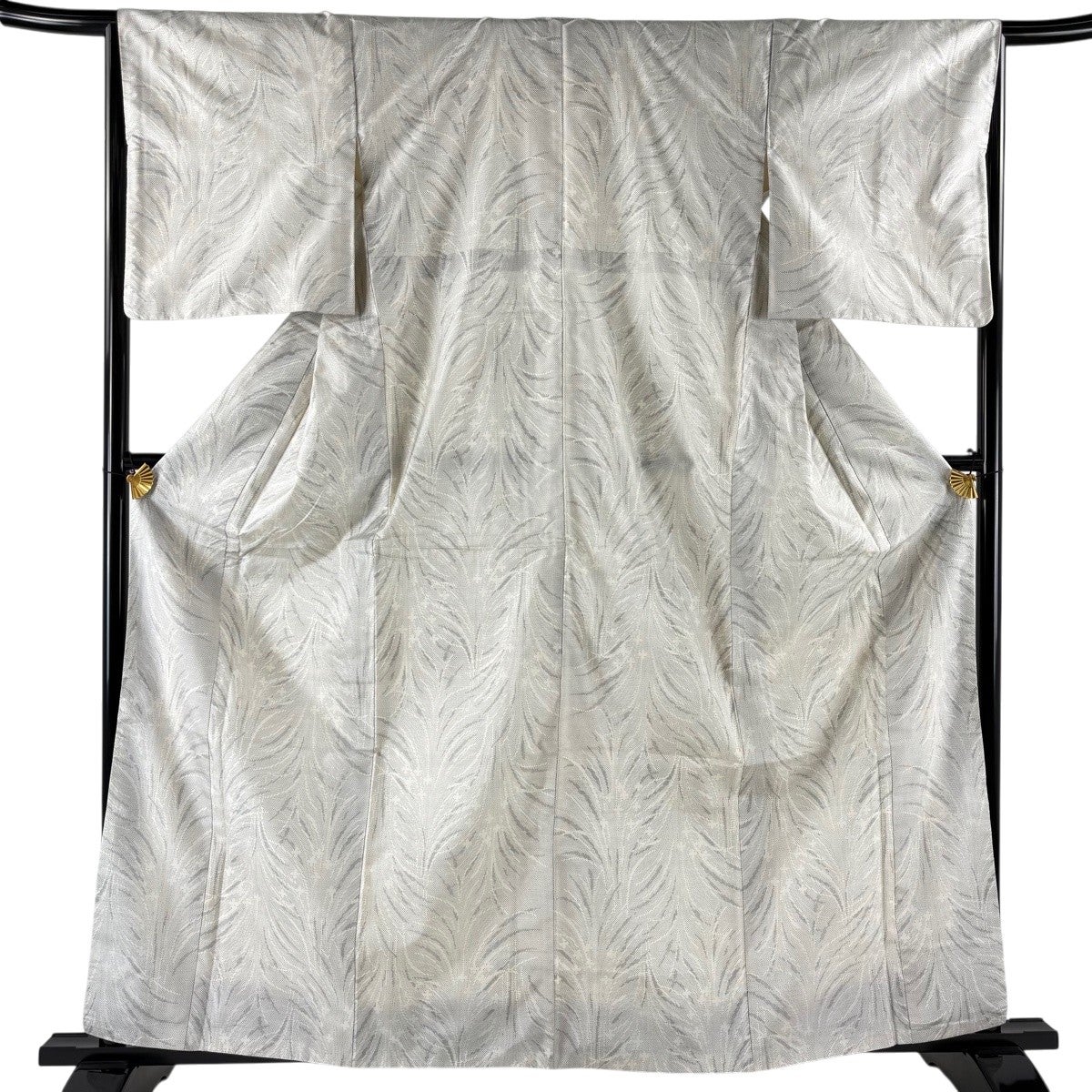 紬 身丈162cm 裄丈65cm M 袷 葉柄 灰白 正絹 秀品