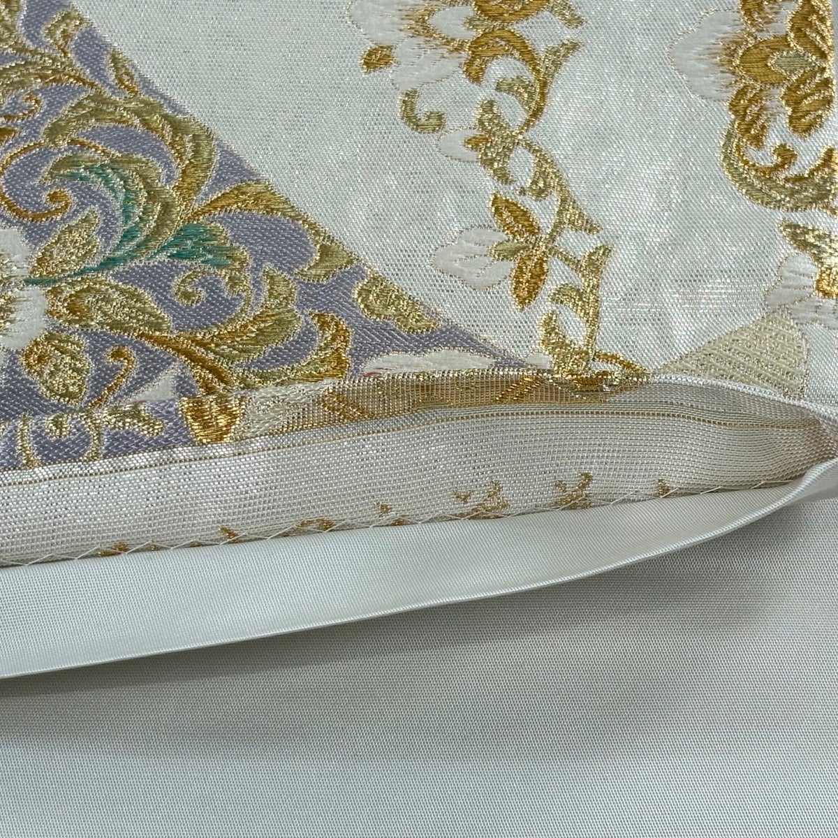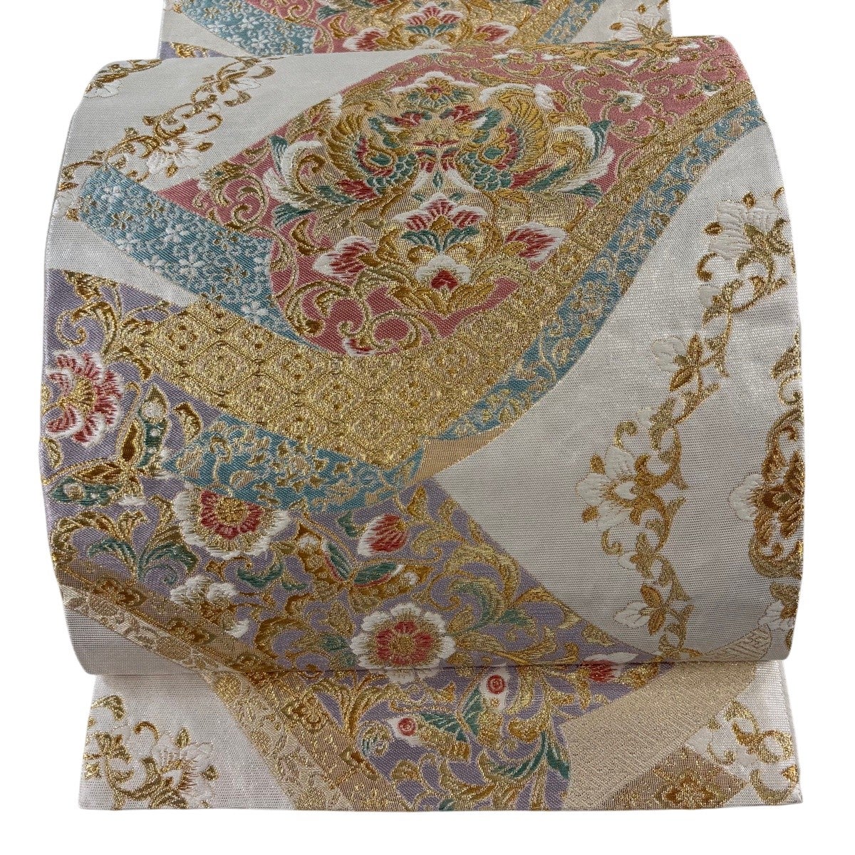 【美品】 袋帯 秀品 草花 金糸 ラメ箔 灰白 六通 正絹