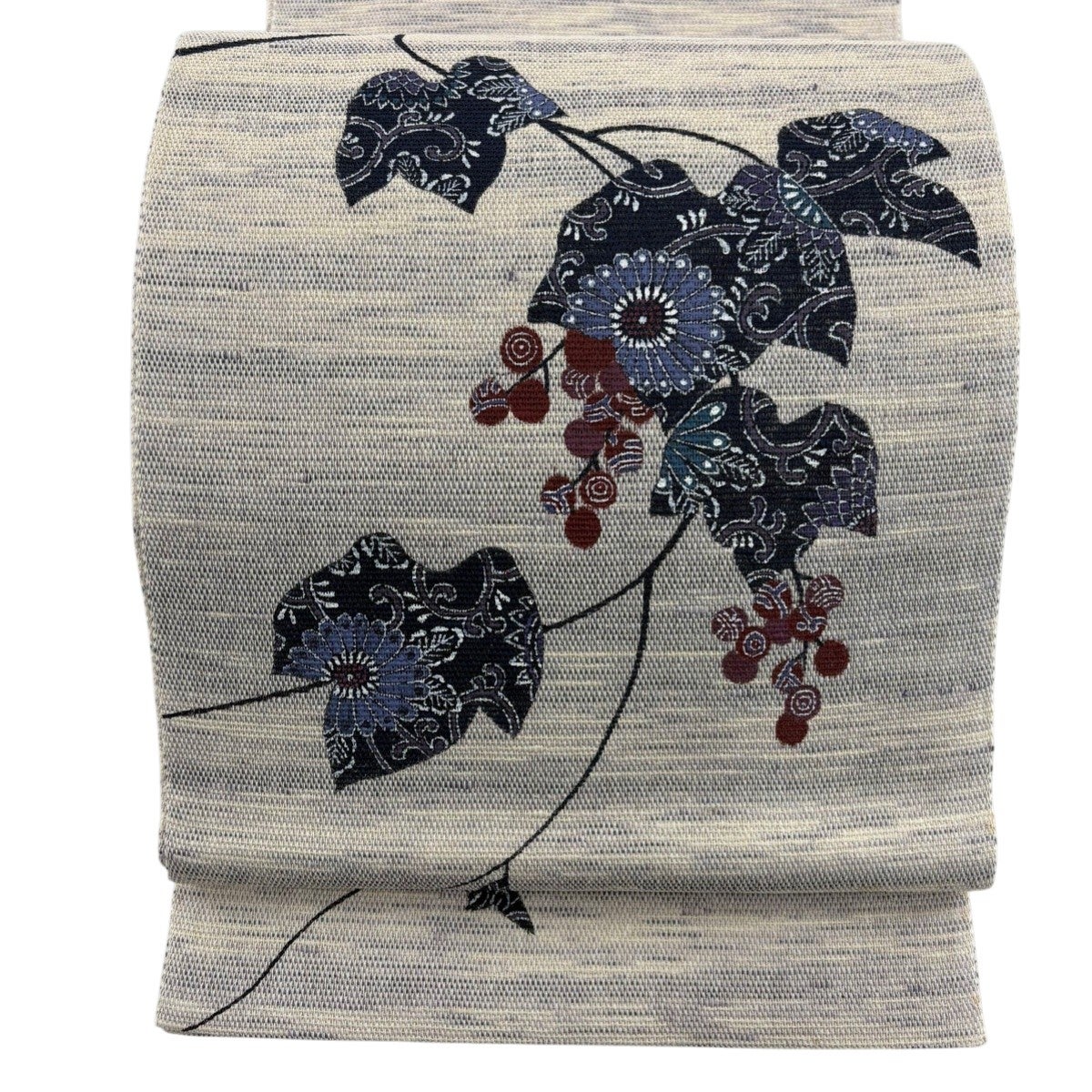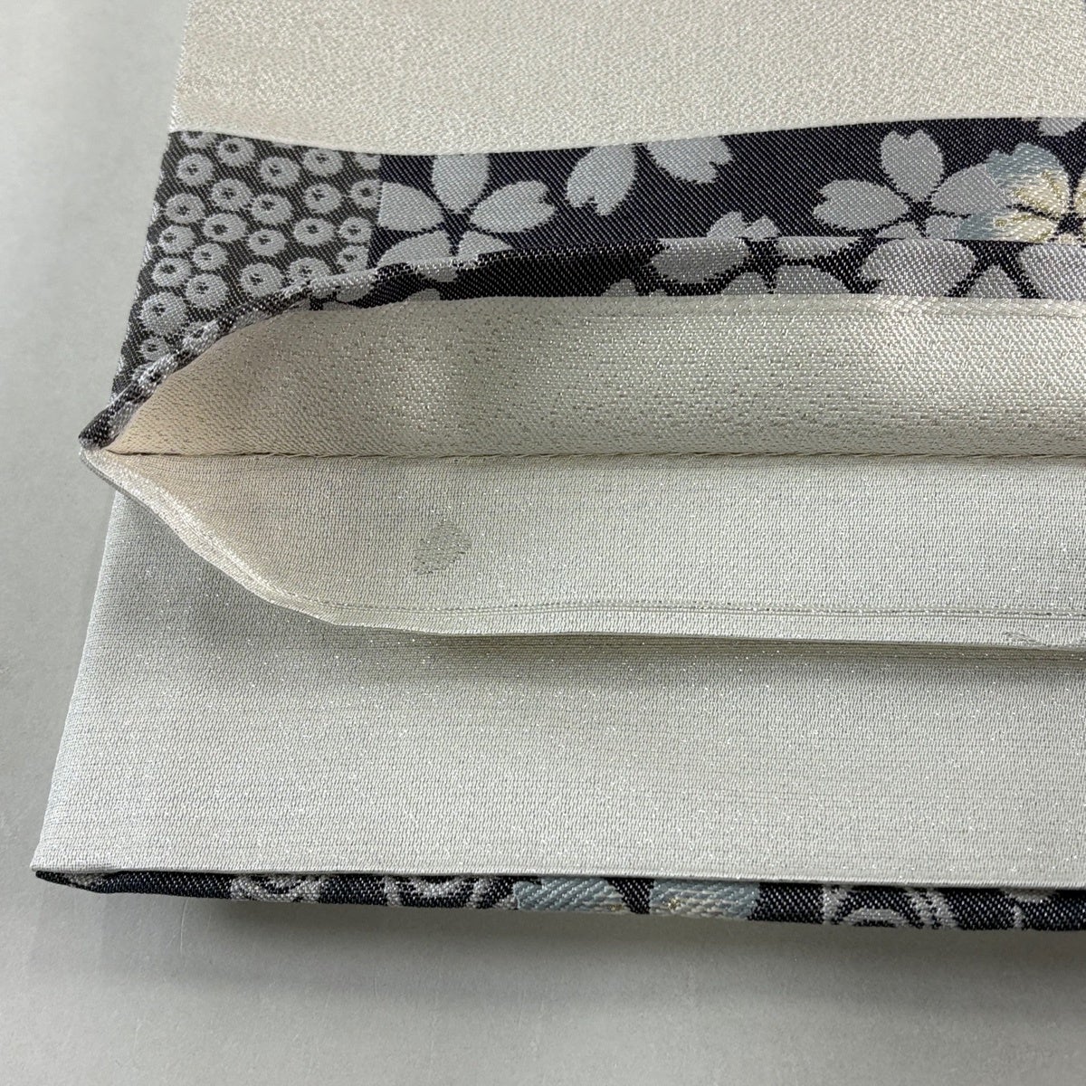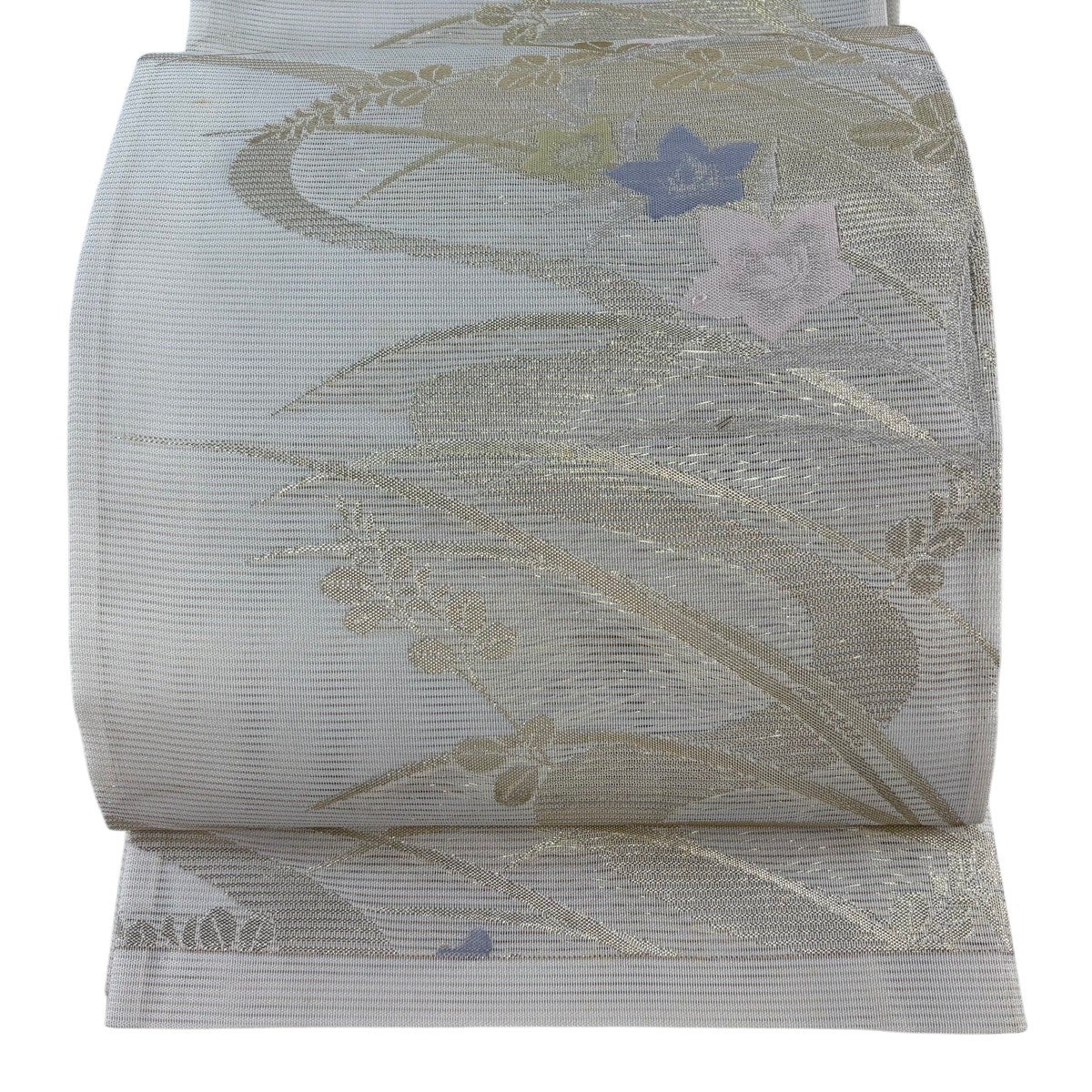 30%OFF 袋帯 秀品 夏帯 枝花 銀糸 箔 灰白 六通 正絹 K30