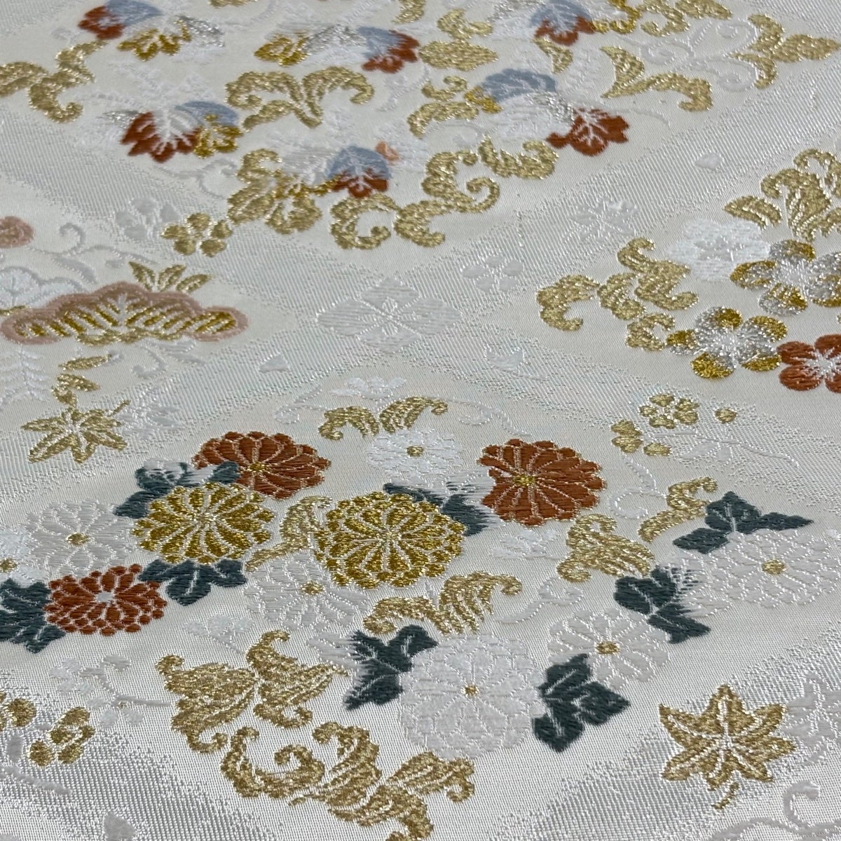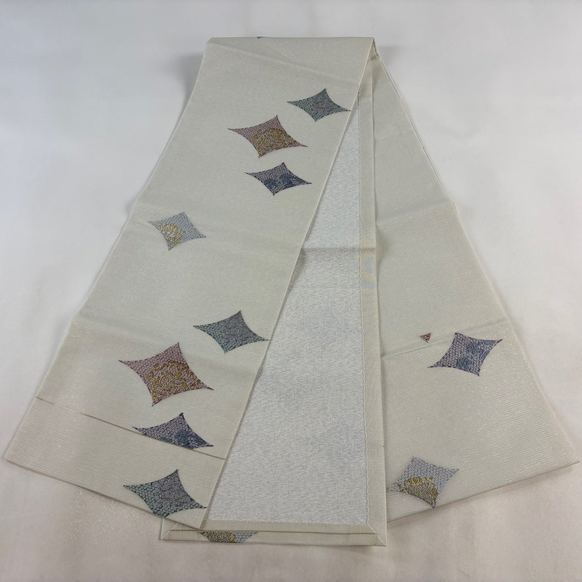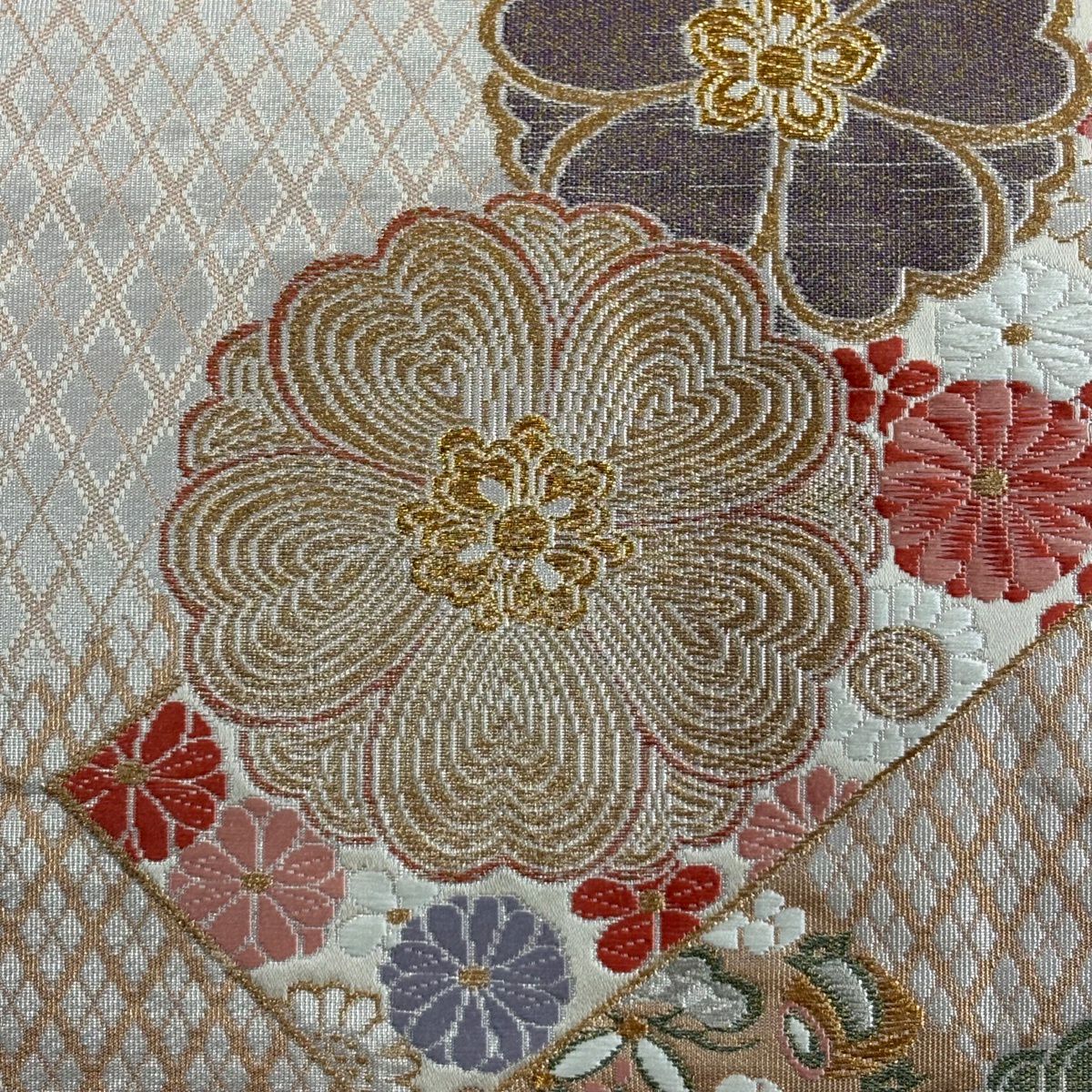 30%OFF 袋帯 秀品 菱 花 金銀糸 箔 灰白 六通 正絹 K30
