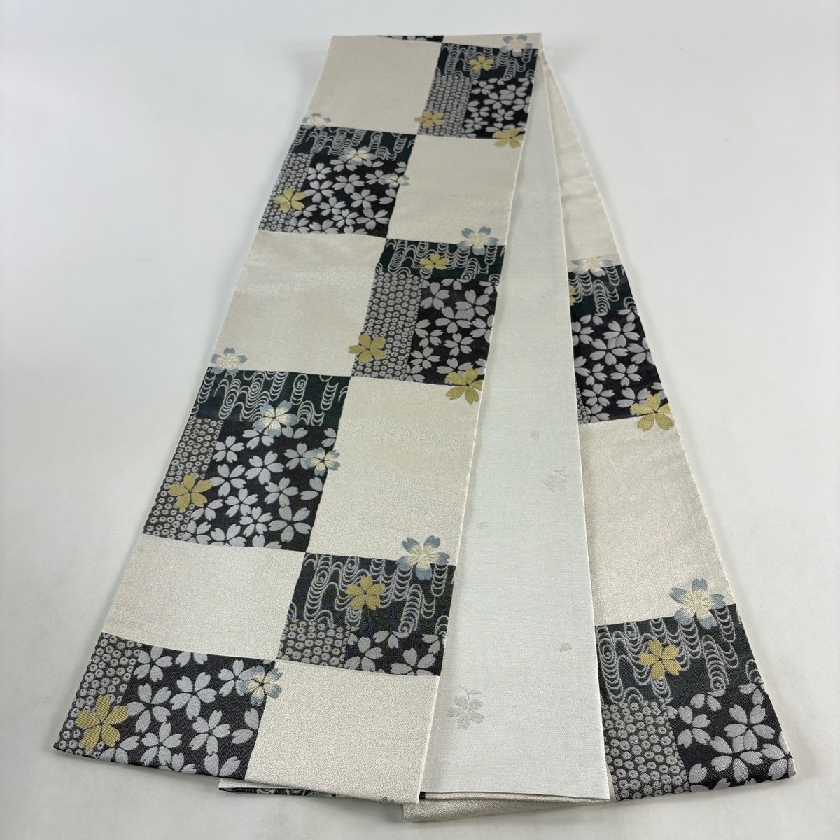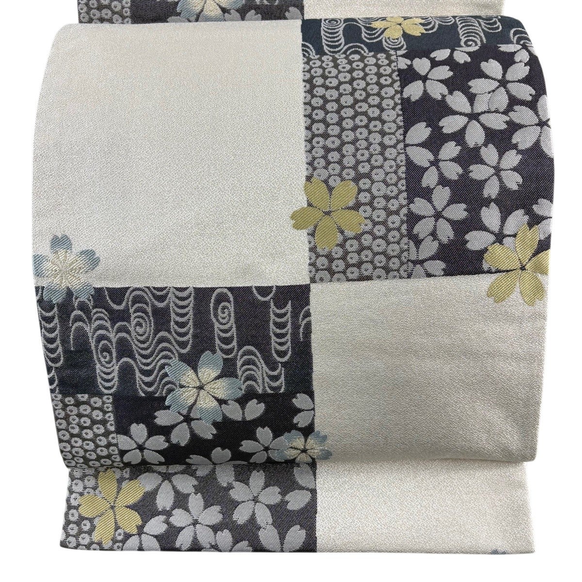 30%OFF 【美品】 袋帯 秀品 幾何学模様 灰白 全通 正絹 K30