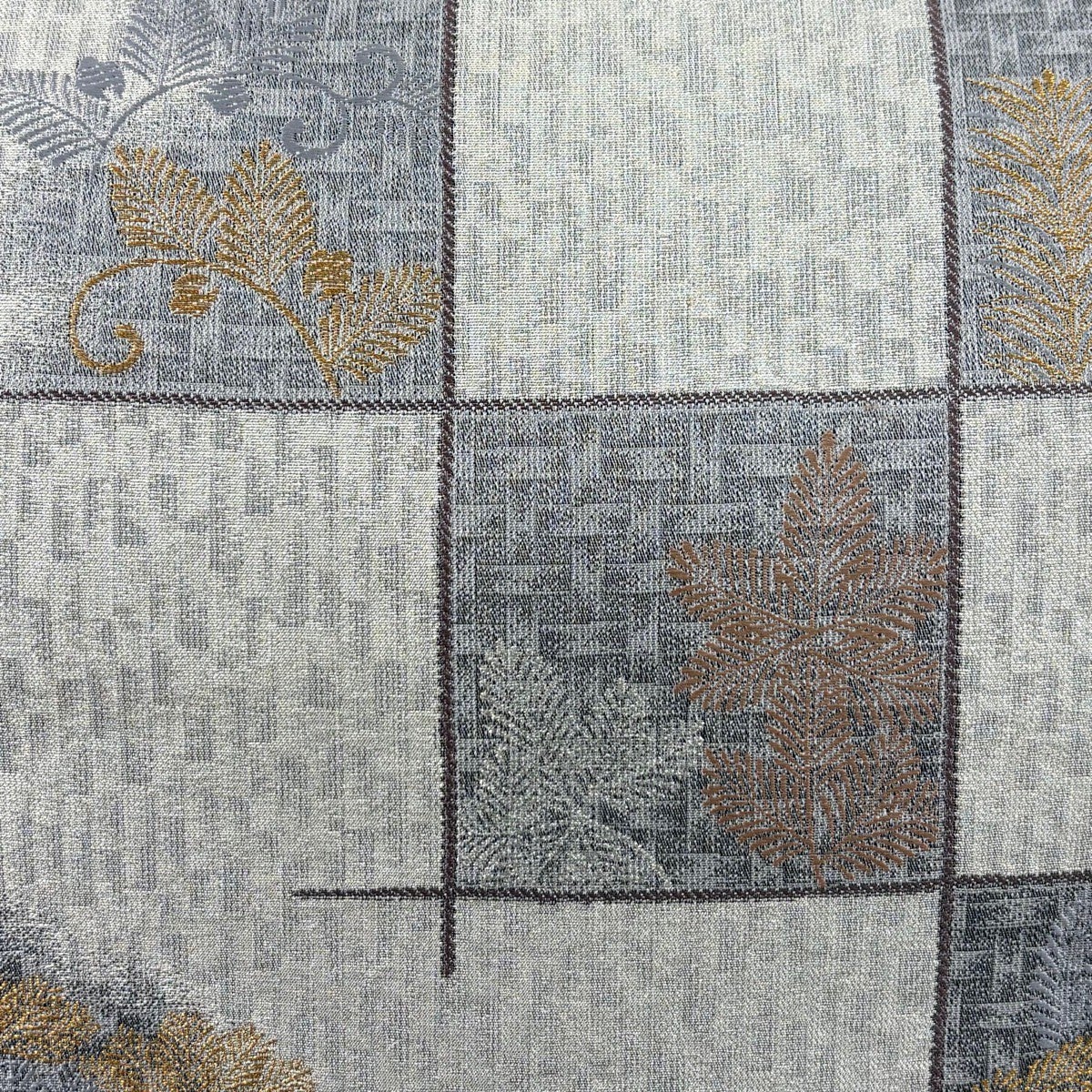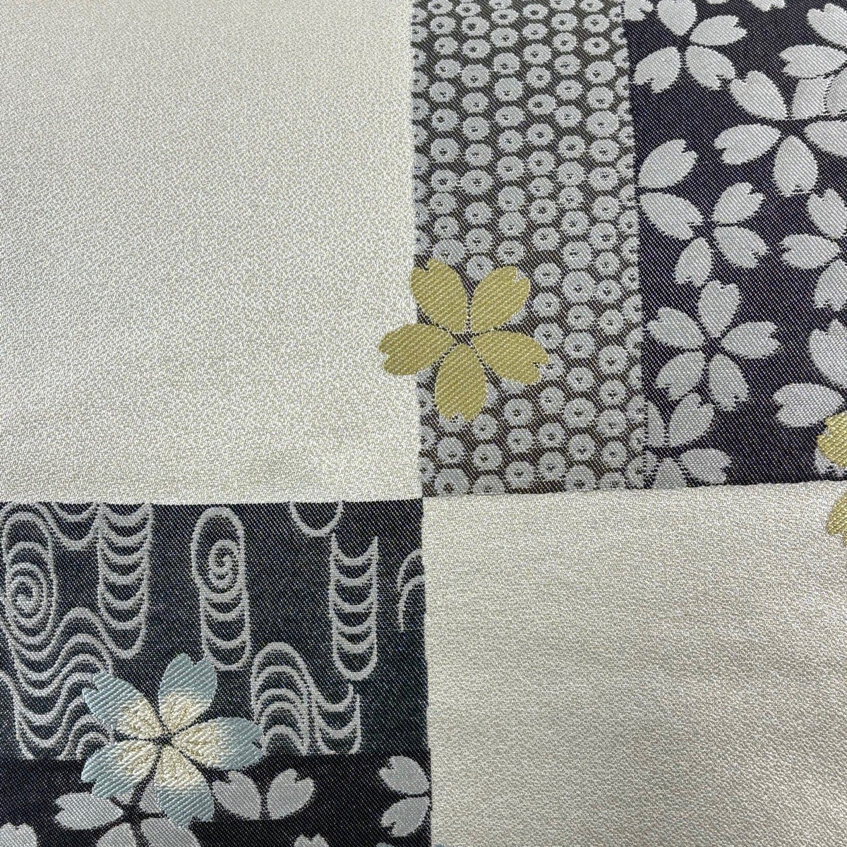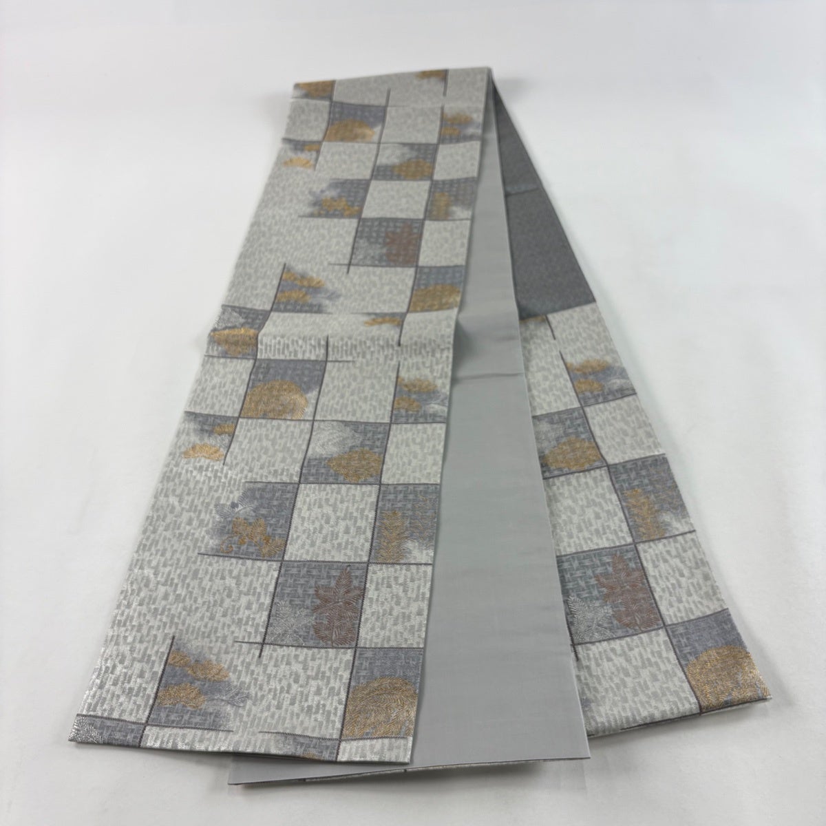 【美品】 袋帯 秀品 落款あり 市松 松 金銀糸 箔 灰白 六通 正絹