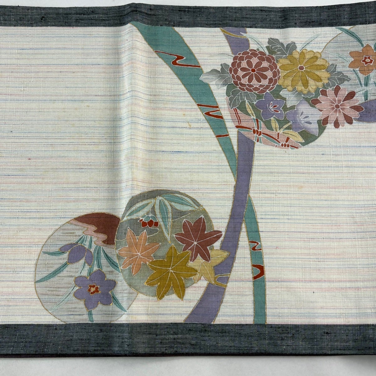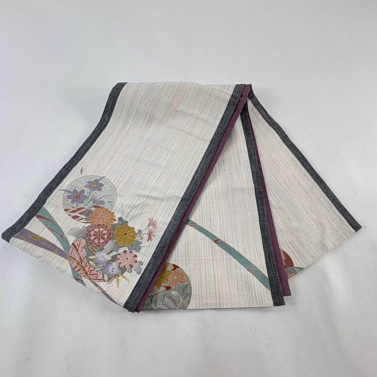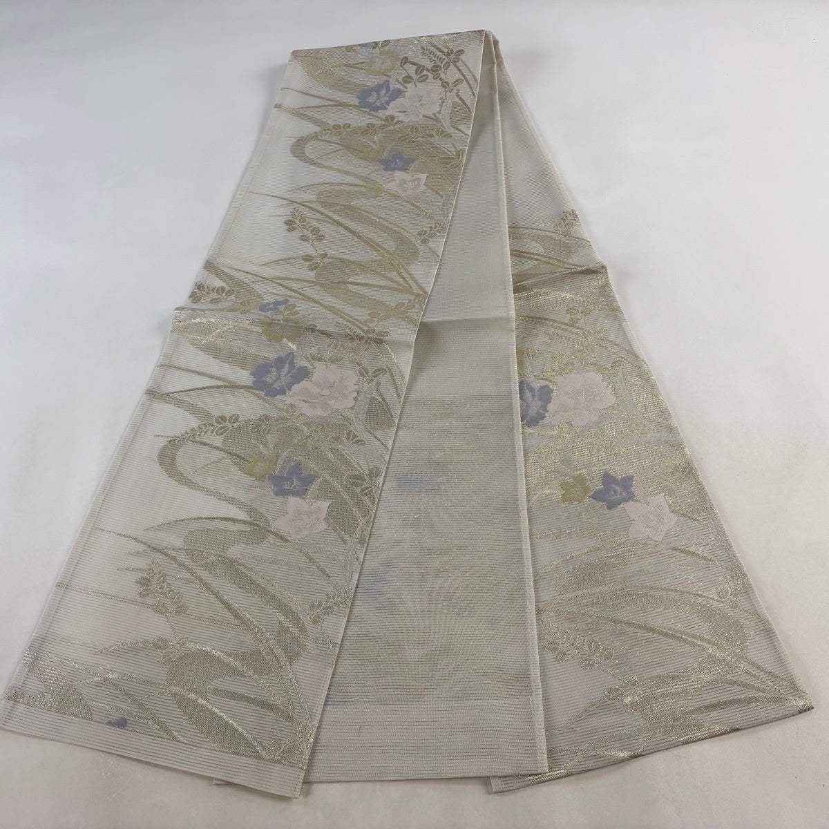 30%OFF 袋帯 秀品 夏帯 絽 秋草 箔 灰白 六通 正絹 K30