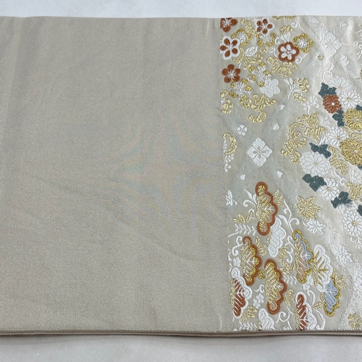 30%OFF 袋帯 秀品 関西仕立て 草花 箔 灰白 六通 正絹 K30