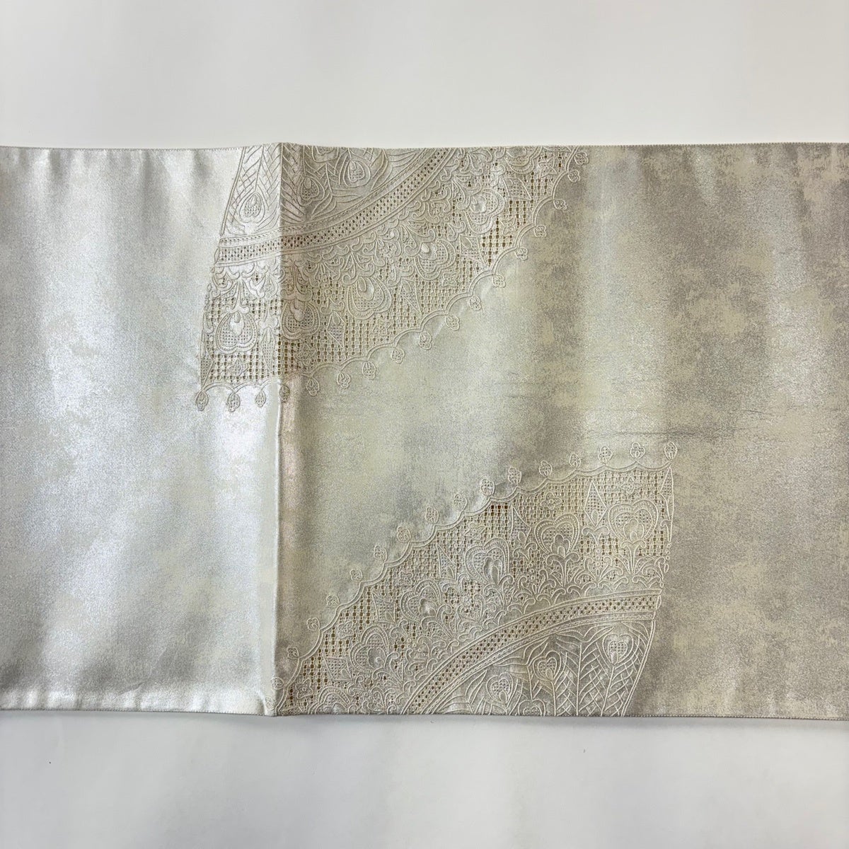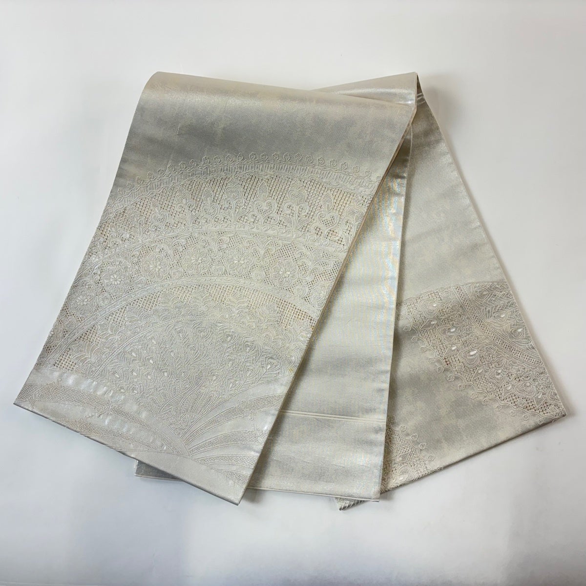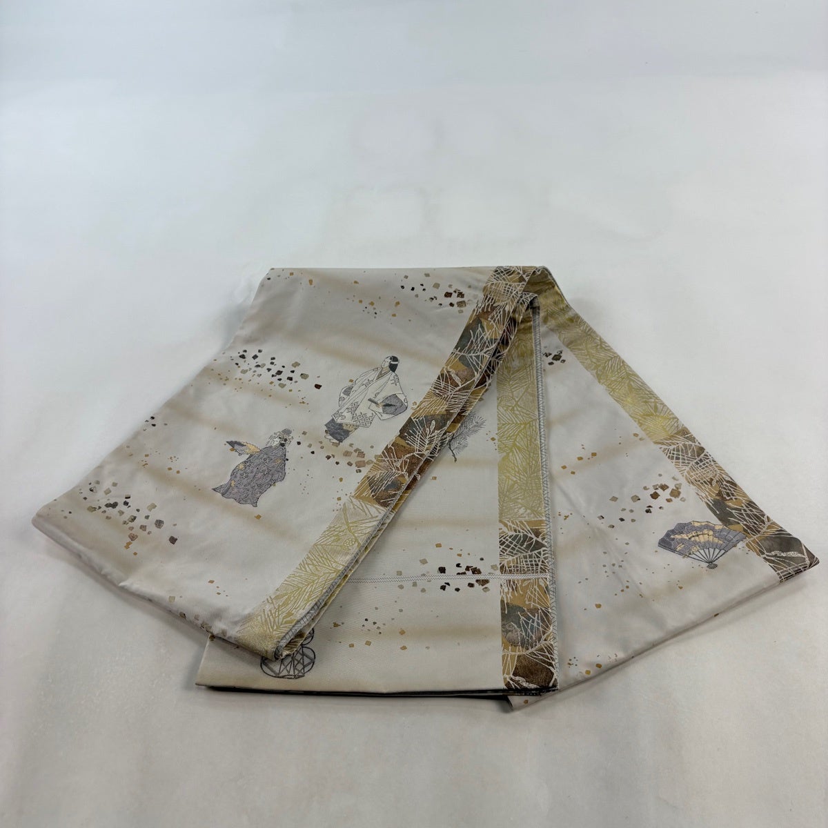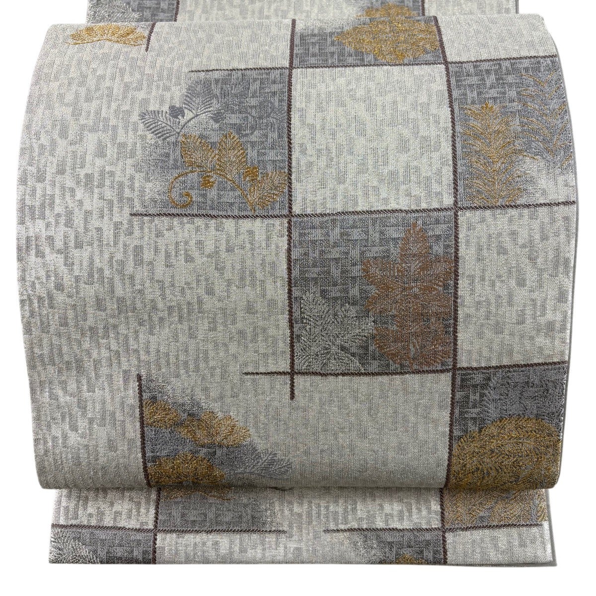 50%OFF 【美品】 袋帯 名品 幾何学 箔 灰白 六通 正絹 K50