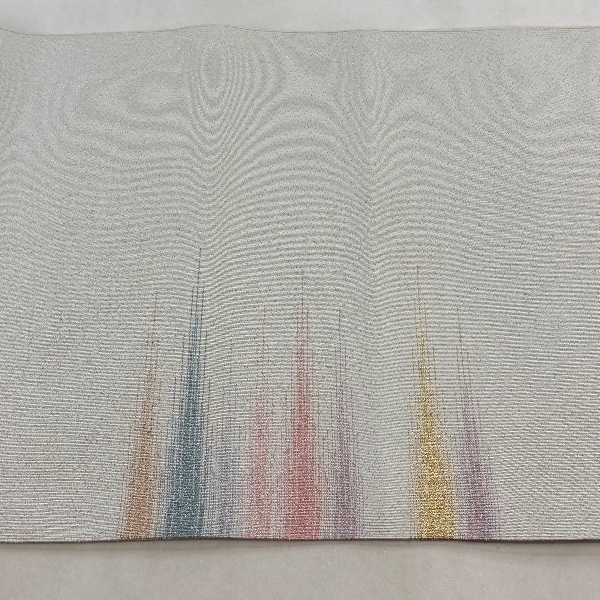 【在庫一掃】 【美品】 袋帯 名品 幾何学模様 金銀糸 灰白 六通 正絹
