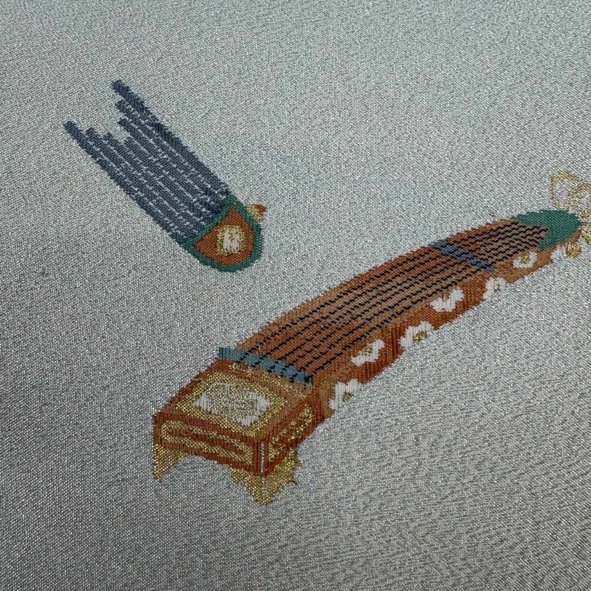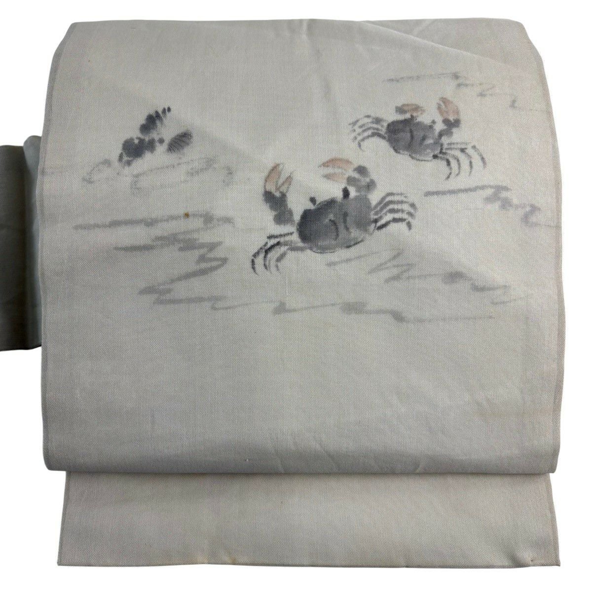 50%OFF 袋帯 秀品 蒔絵寿鶴文 箔 灰白 お太鼓柄 正絹 K50
