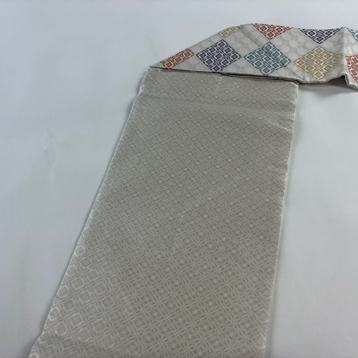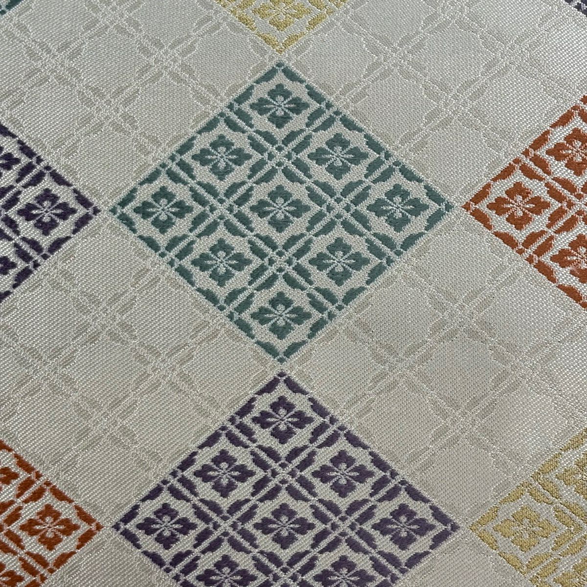 【美品】 名古屋帯 名品 菱 花菱 刺繍 金糸 灰白 正絹