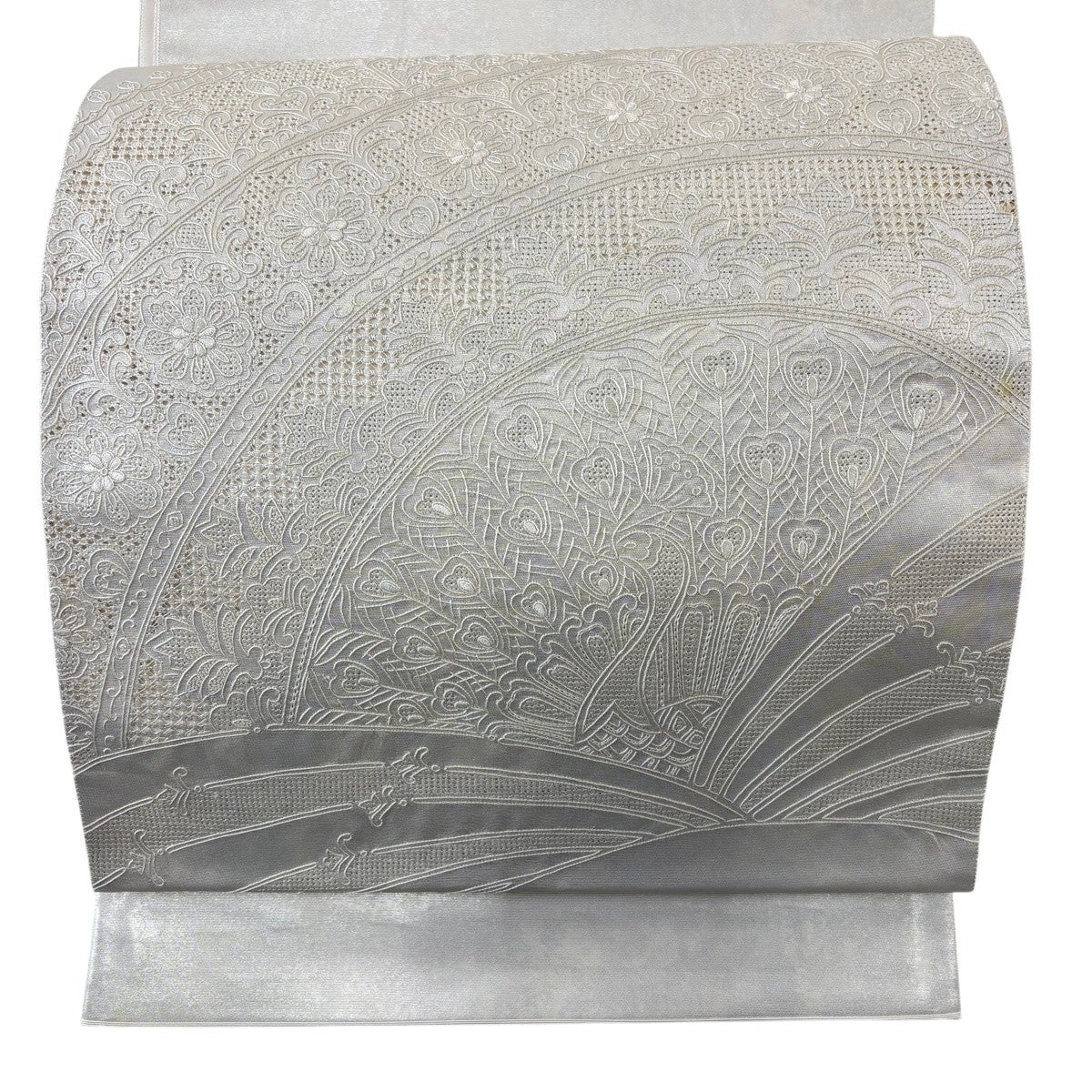 50%OFF 名古屋帯 秀品 牡丹 雲文 金銀彩 箔 灰白 正絹 K50